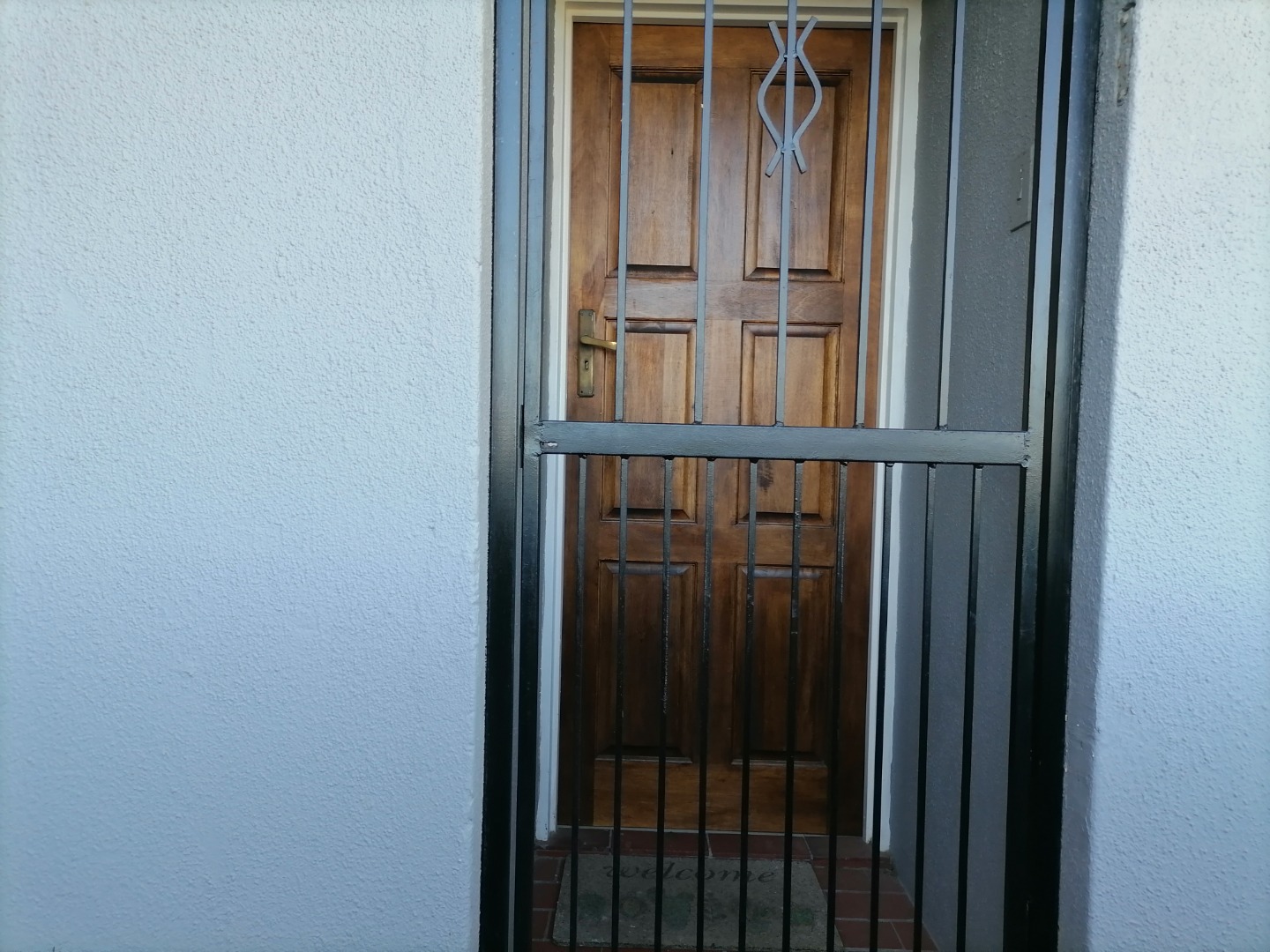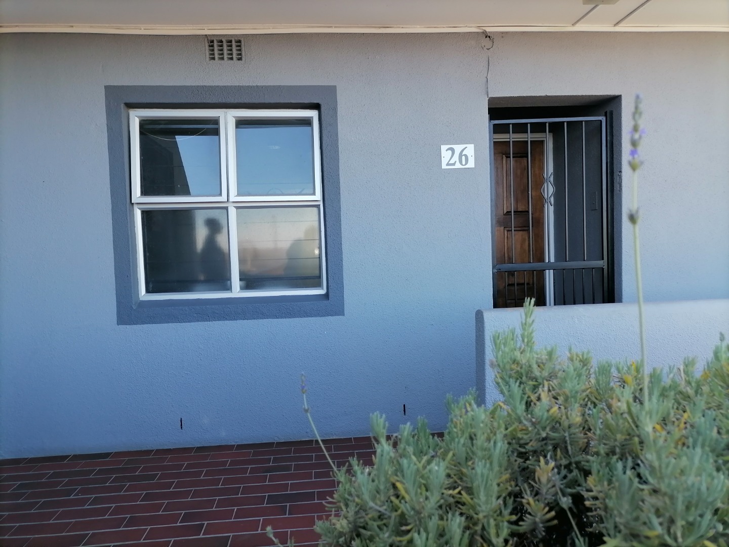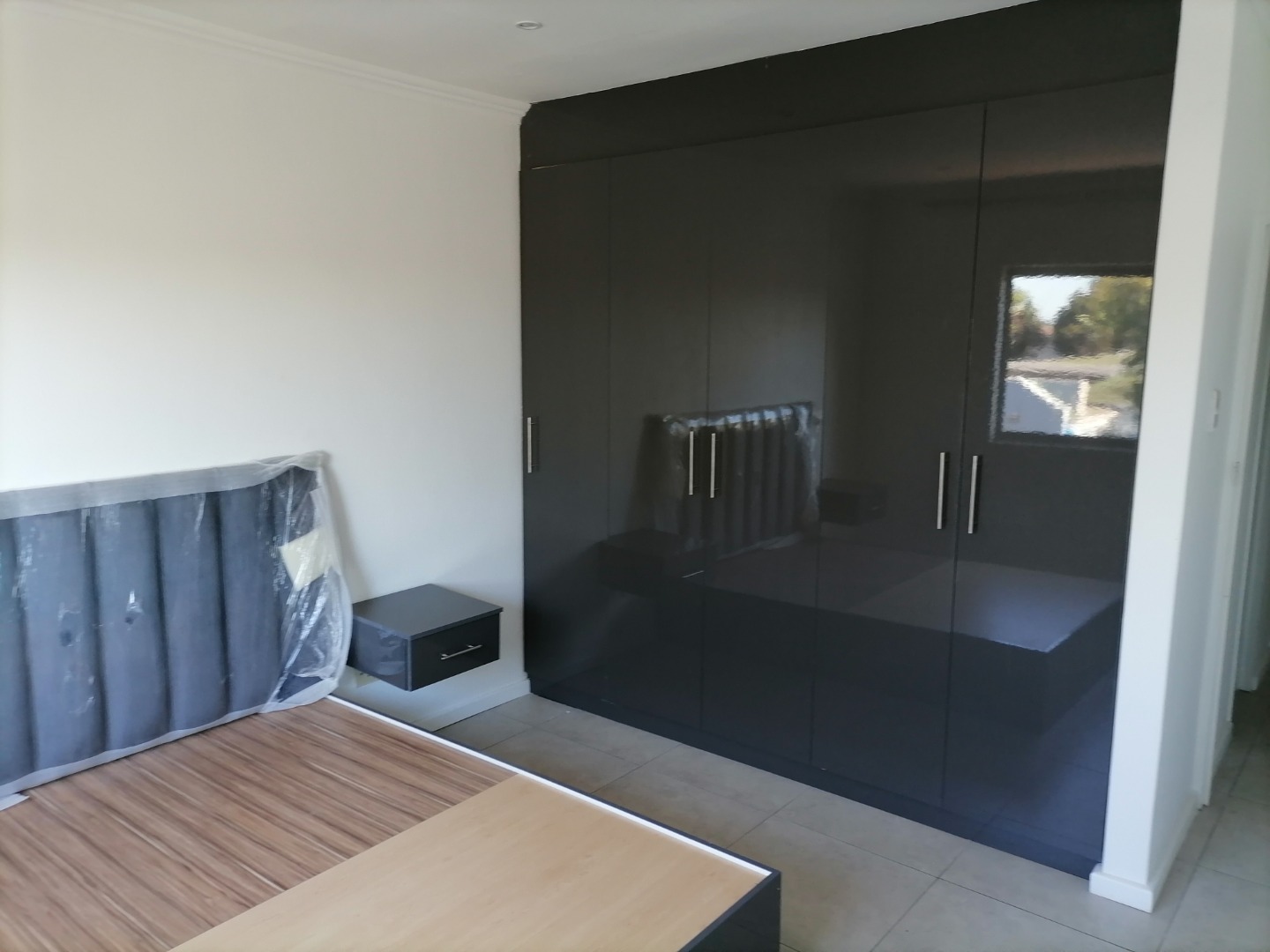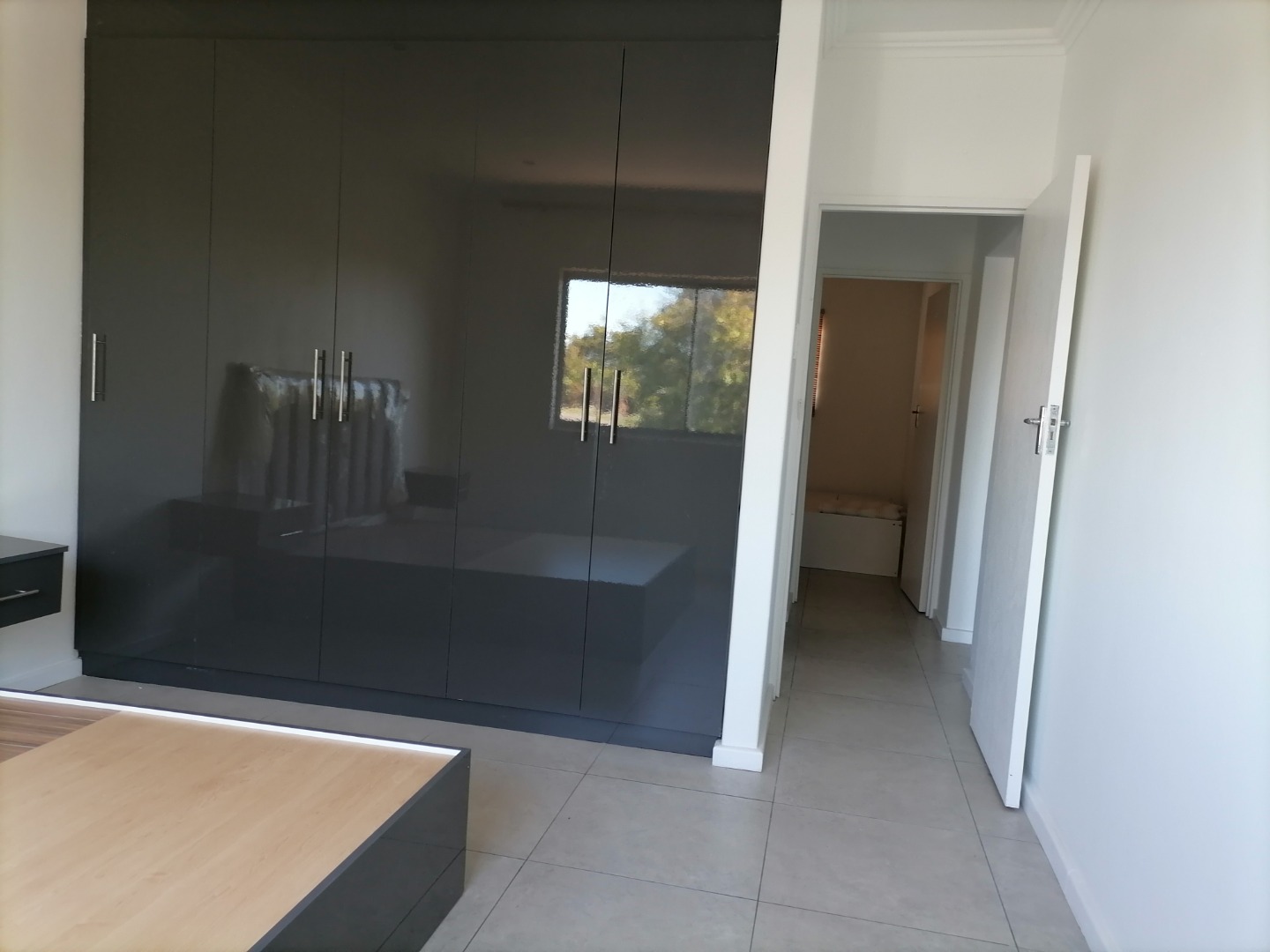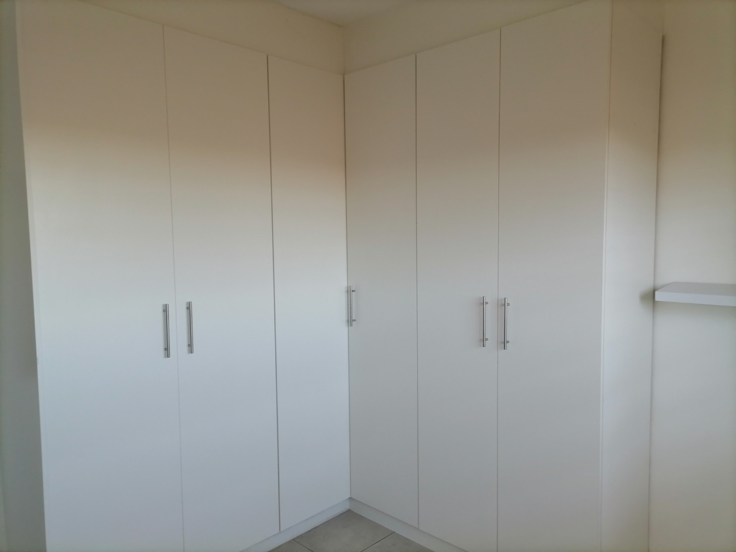 This residence comprises two well-proportioned bedrooms and a single bathroom. Each bedroom is characterized by clean, light-coloured walls, tiled flooring, and large windows that invite ample natural light. Modern floating bedside tables are a practical inclusion, and one bedroom features a substantial, glossy built-in wardrobe, offering considerable storage capacity. The property includes a dedicated parking bay and a private paved patio area at the entrance, ideal for outdoor relaxation. Residing within a secure complex, this unit benefits from enhanced safety measures, including a sturdy security gate at the entrance. Connectivity is facilitated by the presence of a satellite dish.