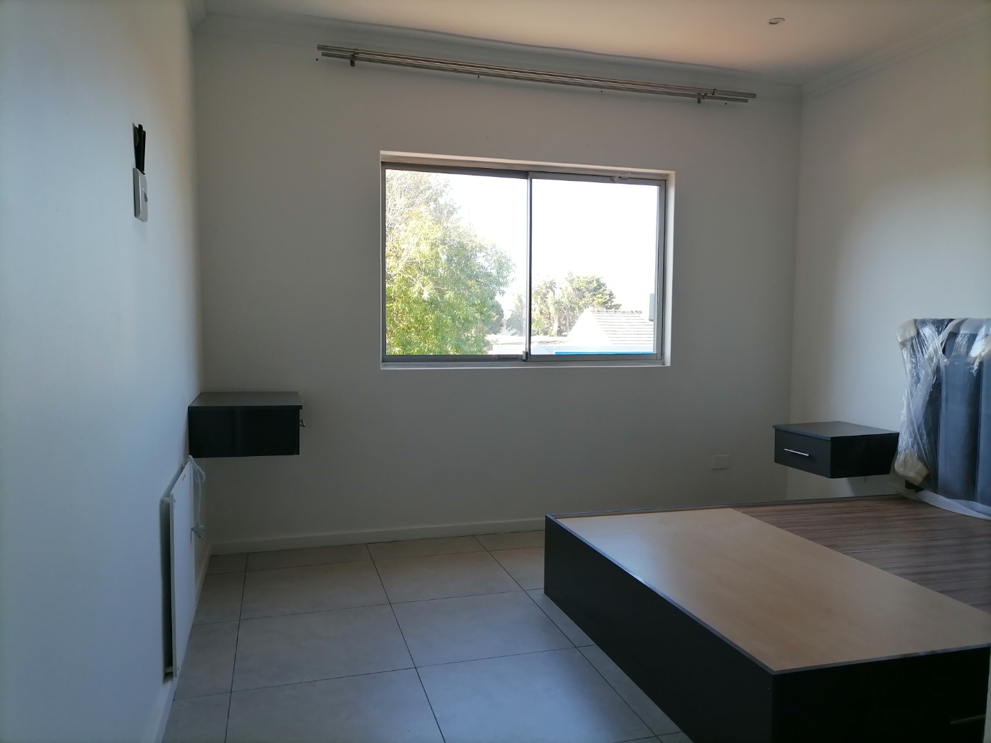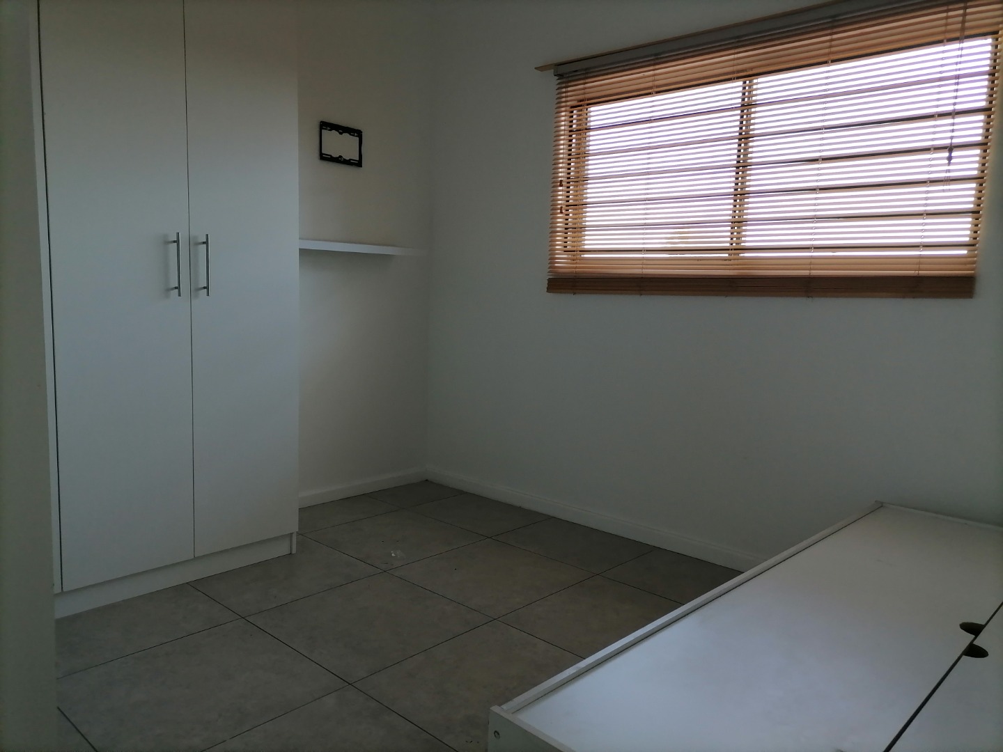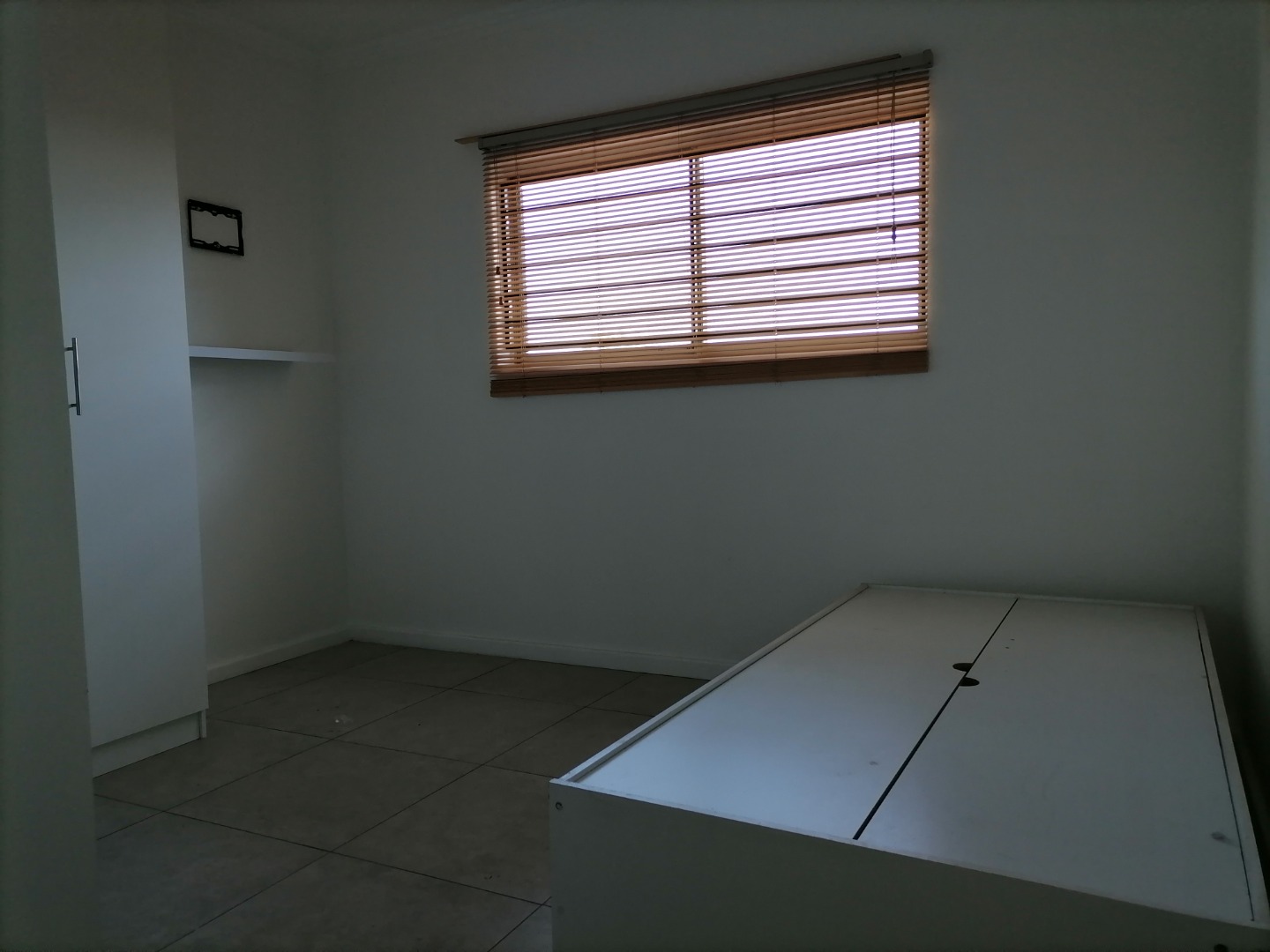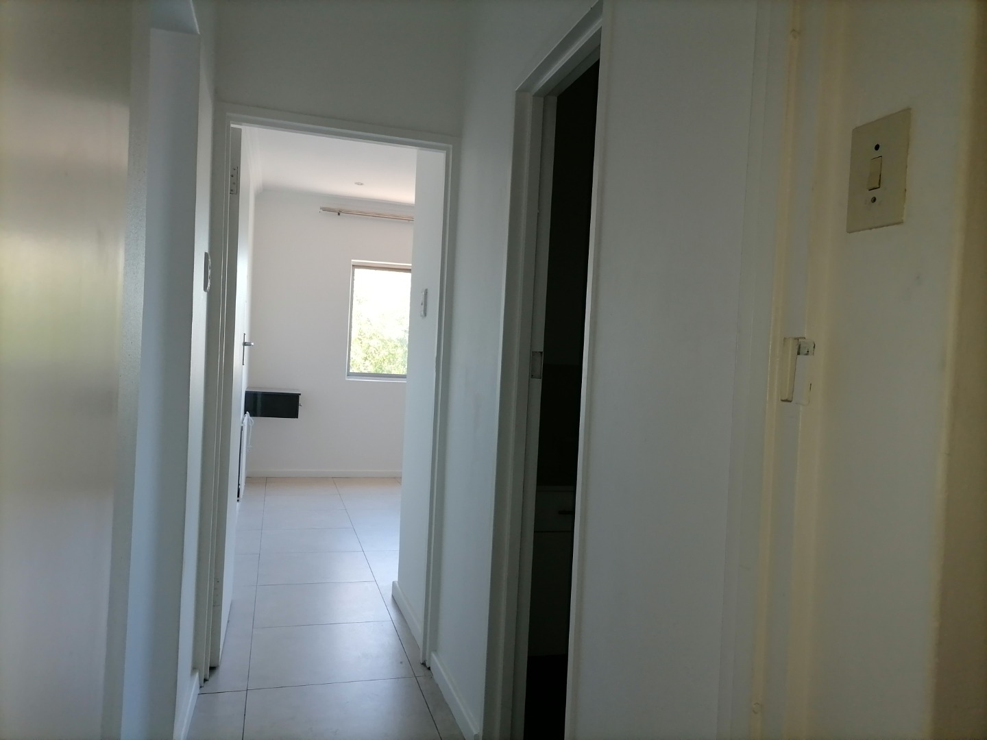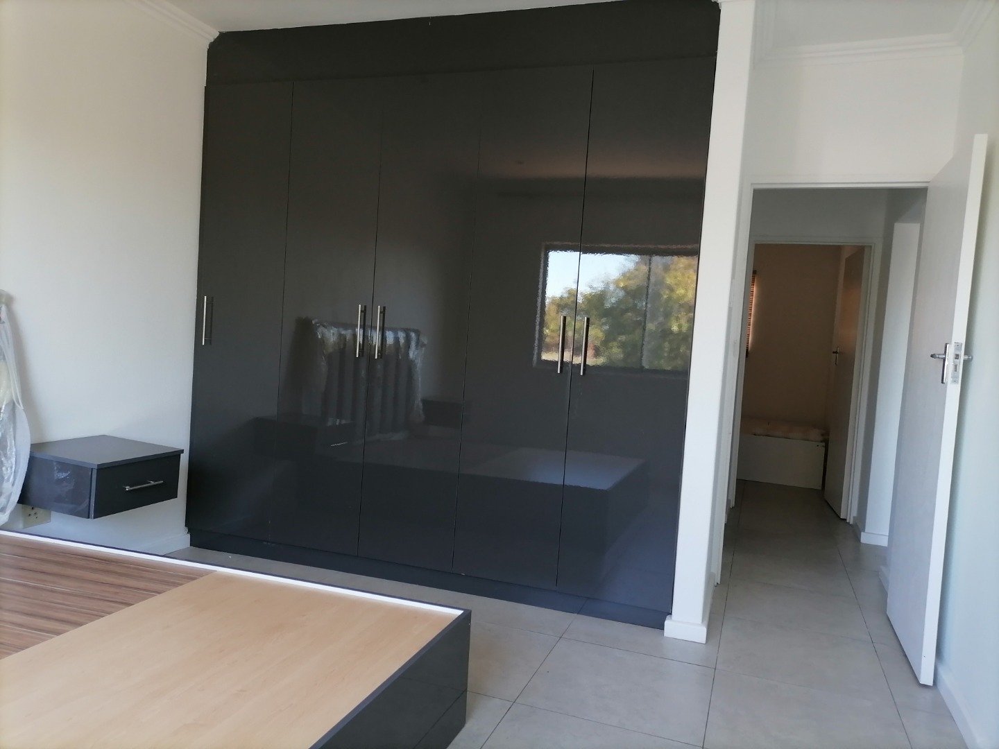 This residence comprises two well-proportioned bedrooms and a single bathroom. Each bedroom is characterized by clean, light-coloured walls, tiled flooring, and large windows that invite ample natural light. Modern floating bedside tables are a practical inclusion, and one bedroom features a substantial, glossy built-in wardrobe, offering considerable storage capacity. The property includes a dedicated parking bay and a private paved patio area at the entrance, ideal for outdoor relaxation. Residing within a secure complex, this unit benefits from enhanced safety measures, including a sturdy security gate at the entrance. Connectivity is facilitated by the presence of a satellite dish.