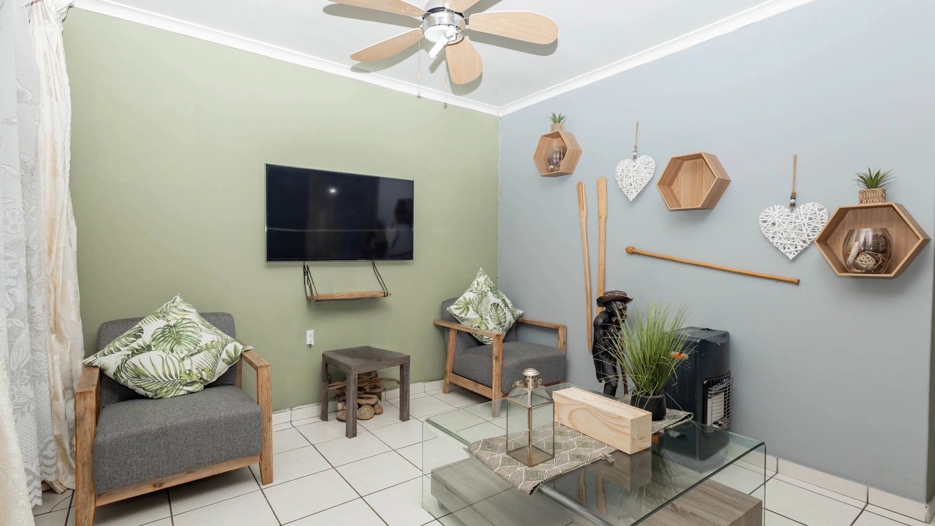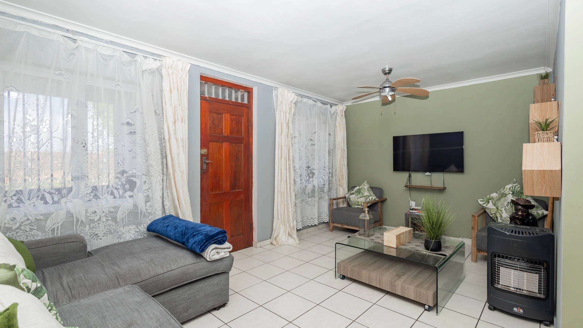 Discover this inviting residential property located in the established suburb of Belhar, Cape Town, offering a comfortable and functional living space ideal for families. This home spans a generous 130 sqm floor size on a 200 sqm erf, providing ample room for daily life and outdoor activities. The interior features a bright, open-plan lounge and dining area, designed for both relaxation and entertaining. This versatile space benefits from abundant natural light streaming through large windows and is fitted with durable, easy-to-clean tiled flooring throughout. Ceiling fans are installed to ensure a comfortable climate year-round. The living areas showcase a modern aesthetic with two-tone walls, offering a pleasant and adaptable backdrop for your personal style. The functional kitchen is well-equipped with extensive wooden cabinetry, providing ample storage for all your culinary needs. It includes a practical double sink, a tiled backsplash, and dedicated space for a washing machine, enhancing convenience. While offering a solid foundation, this kitchen presents an opportunity for future modern updates to truly make it your own. The property comprises three well-proportioned bedrooms, each offering a private sanctuary. One bedroom features warm wooden flooring and neutral white walls, ready for your personal touch. A single, well-appointed bathroom serves the household, designed for everyday practicality. Externally, the property provides excellent parking solutions with a single garage and additional open parking for three vehicles, ensuring ample space for residents and visitors. Enhanced security features, including security bars on windows, contribute to a secure living environment. This Belhar home represents a superb opportunity for those seeking a well-located property with potential to grow. Key Features: * Three Bedrooms, One Bathroom * Open-Plan Lounge and Dining Room * Functional Kitchen with Ample Cabinetry * Tiled Flooring and Ceiling Fans in Living Areas * Single Garage plus Three Additional Parking Spaces * 200 sqm Erf Size, 130 sqm Floor Size * Abundant Natural Light * Security Bars on Windows