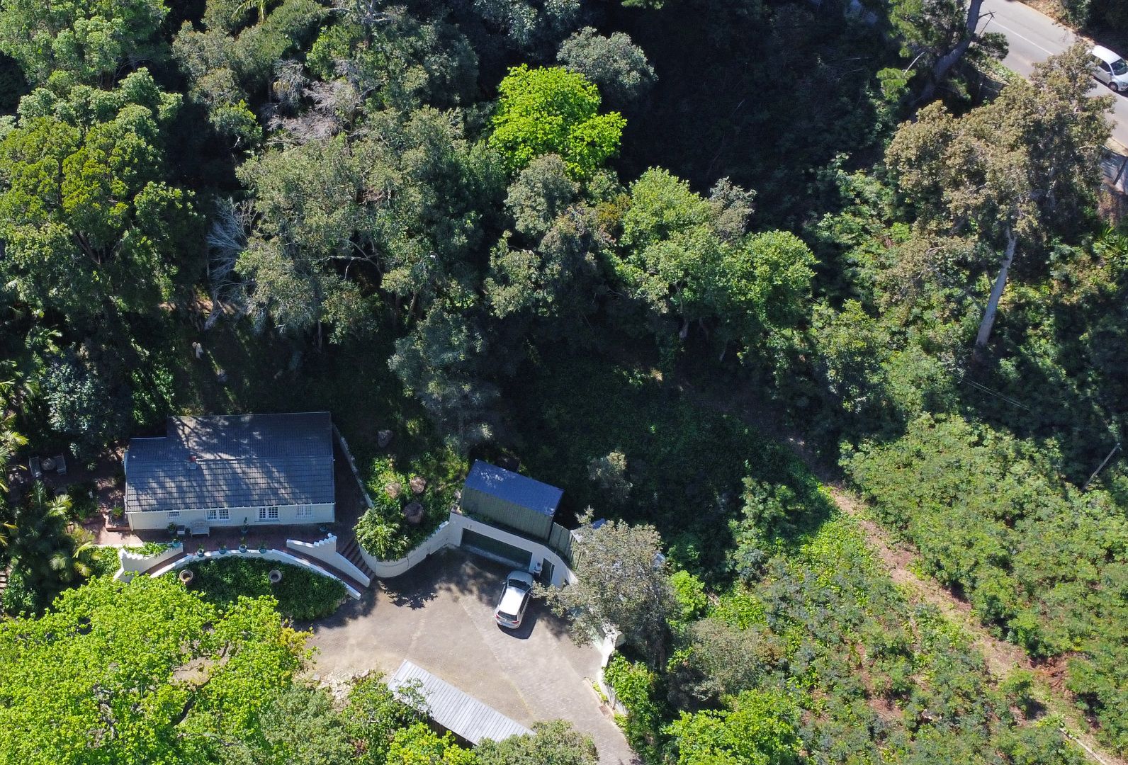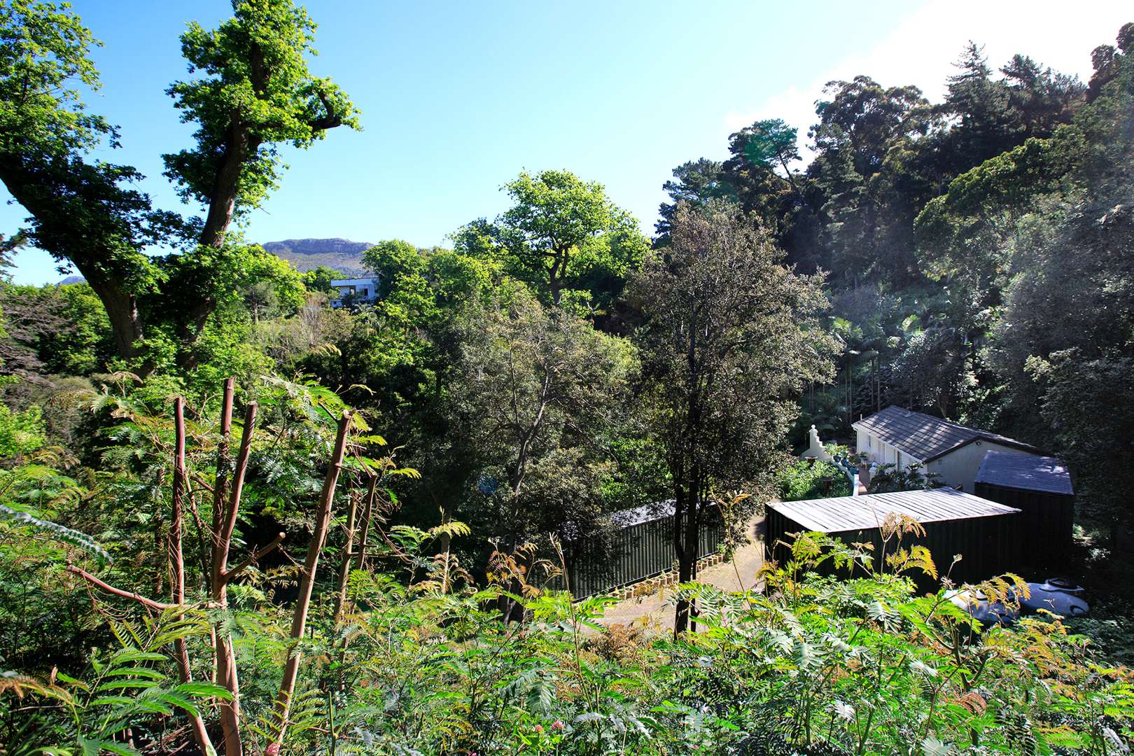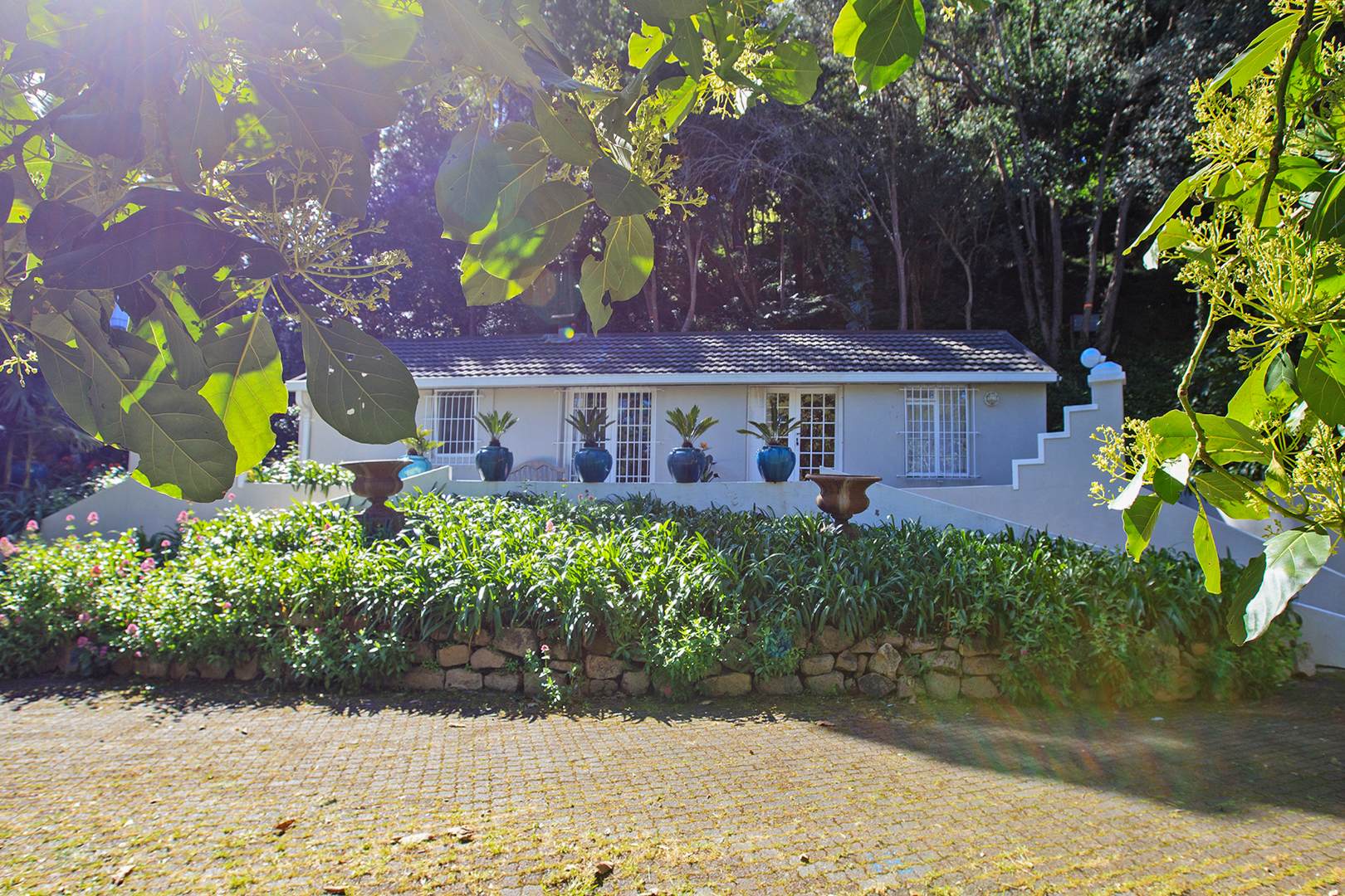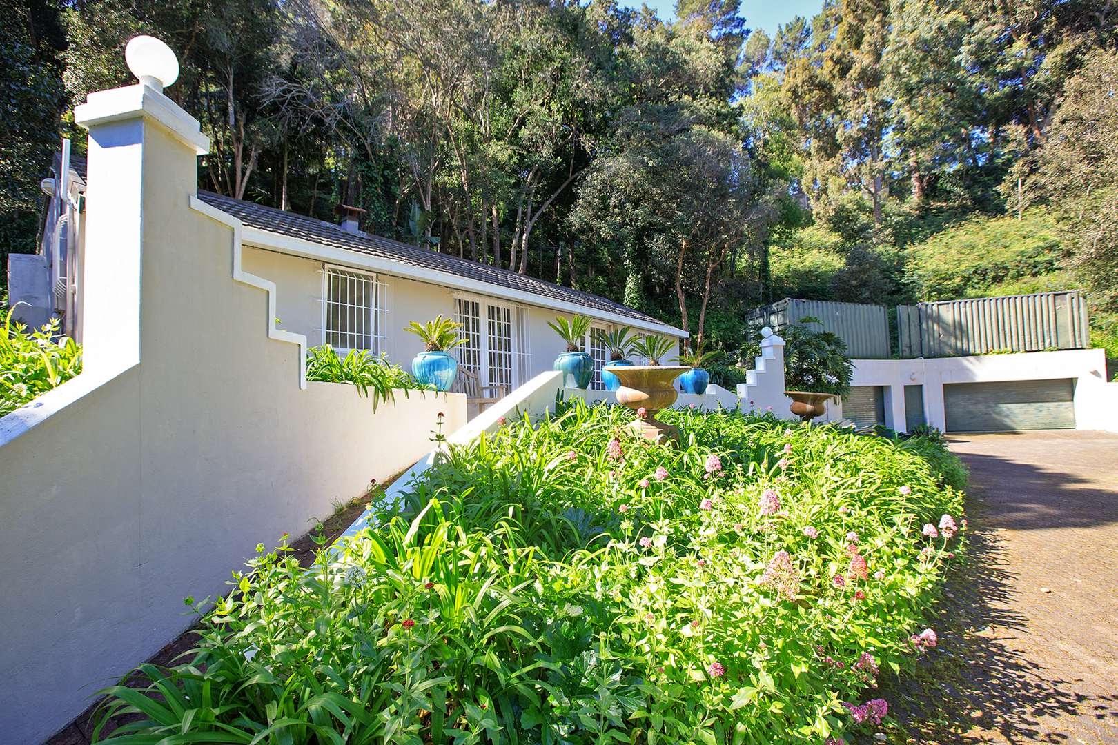 REMAX UNLIMITED TEAM THE UPPERS IS PROUD TO PRESENT - Nestled within the verdant landscapes of Constantia, Cape Town, this charming residential property offers a truly secluded and private retreat. The home presents an inviting kerb appeal, integrated seamlessly into its natural surroundings with mature trees and lush, terraced gardens that create a tranquil ambiance. A paved driveway leads to ample parking, accommodating up to three vehicles, ensuring convenience for residents and guests.