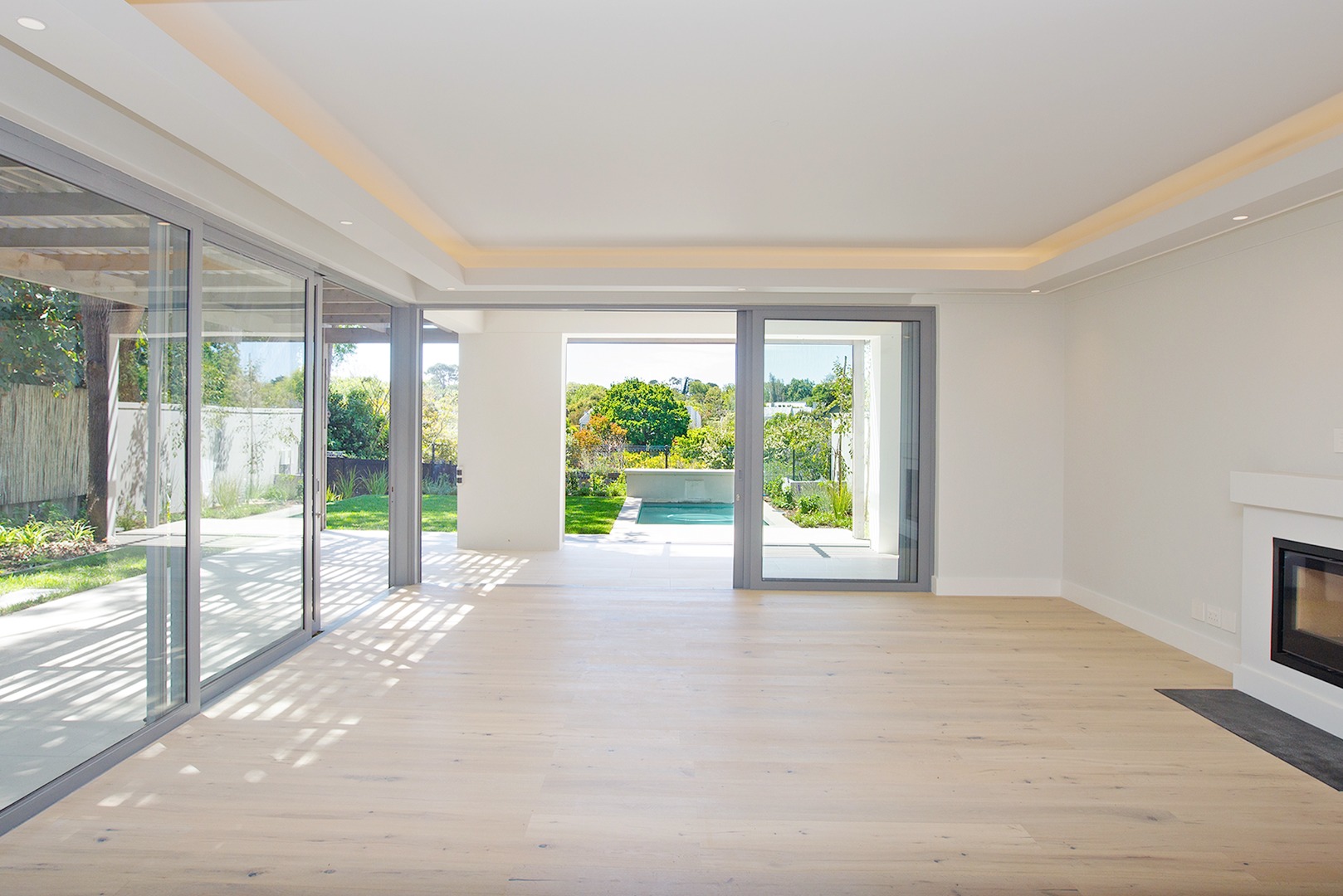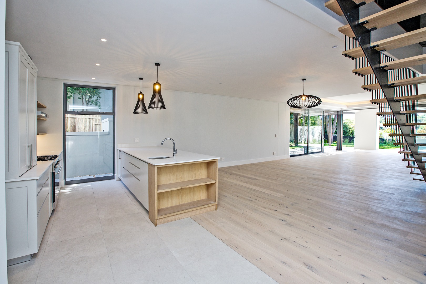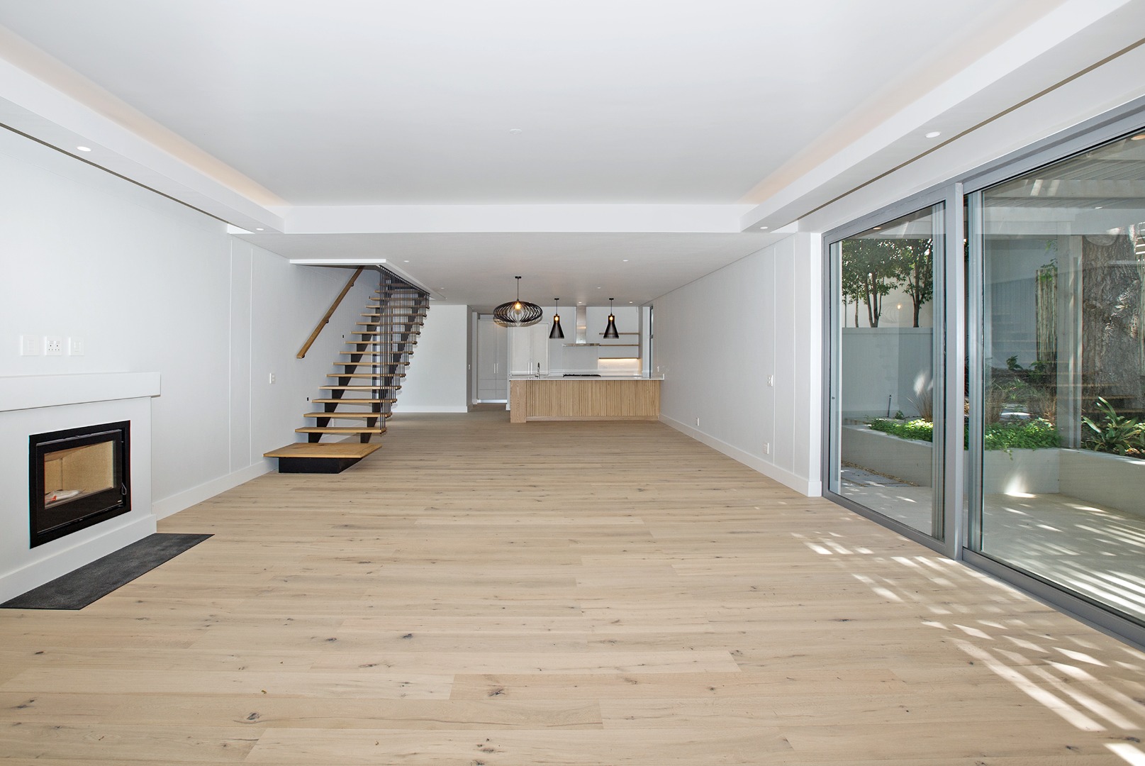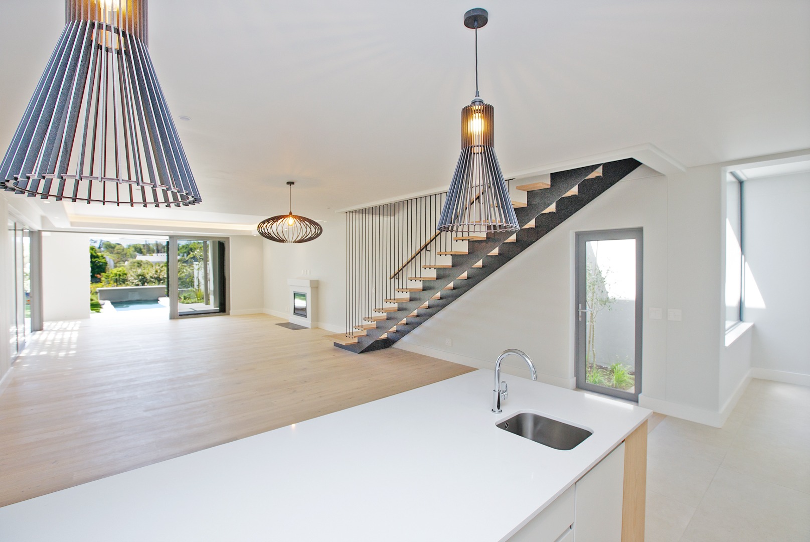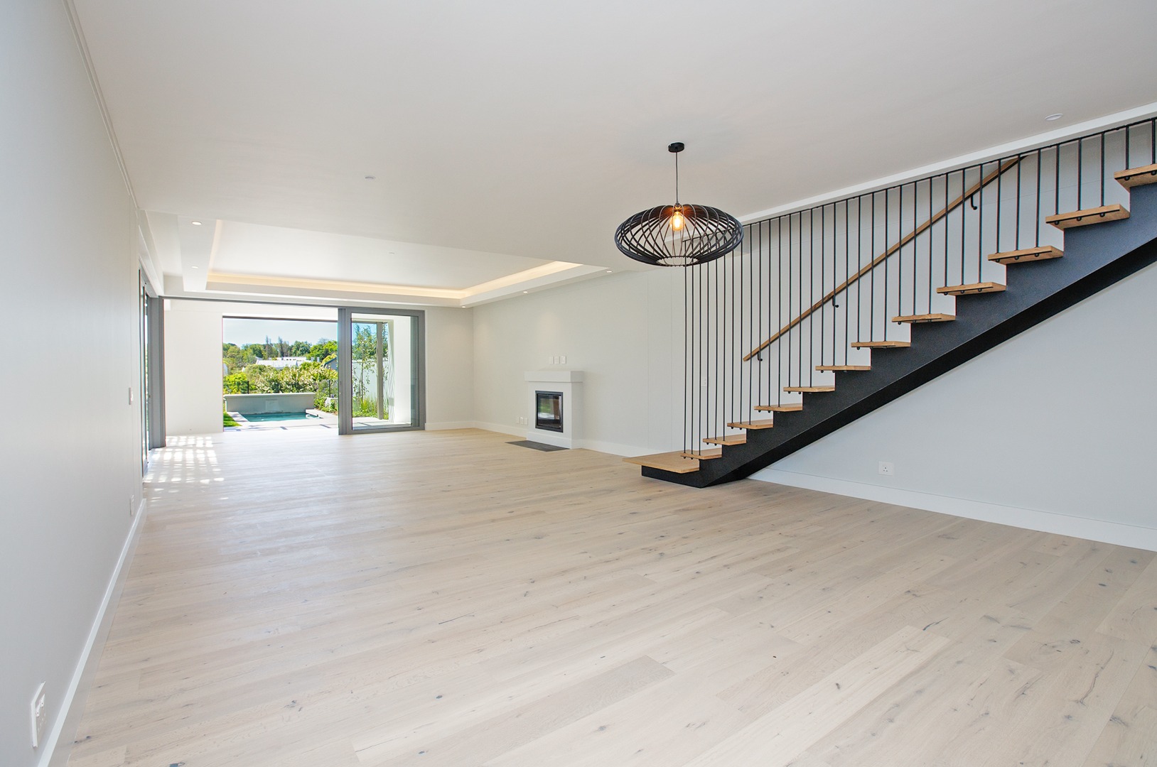 Step inside to an expansive 438 sqm of meticulously designed living space. The open-plan layout features light wood flooring, high ceilings, and abundant natural light streaming through large sliding glass doors, creating a seamless indoor-outdoor flow. The sleek kitchen island, complemented by a modern fireplace and a striking floating staircase, forms the heart of the home, ideal for both daily living and entertaining. The property includes a dedicated lounge and a dining room, offering versatile spaces for relaxation and gatherings.