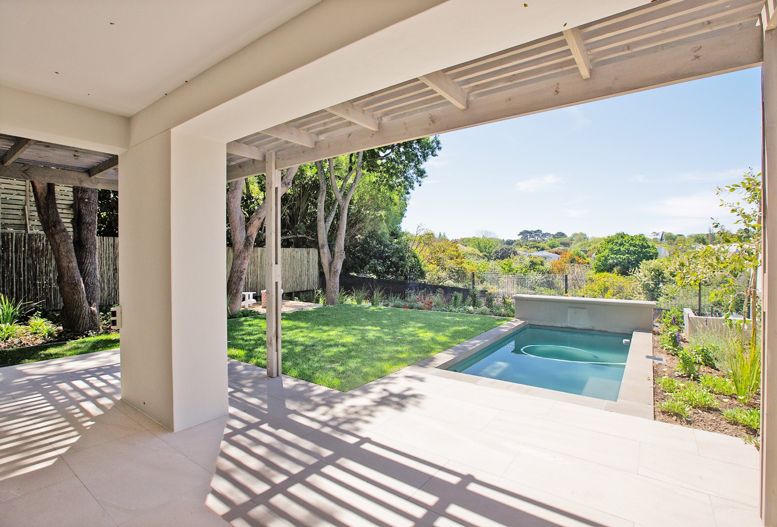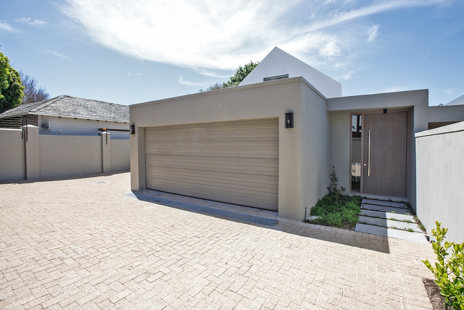 TEAM THE UPPERS IS PROUD TO PRESENT - Discover this exquisite modern residence, perfectly situated in the sought-after suburb of Constantia, Cape Town. Boasting striking white architecture with elegant gabled roofs, this property immediately impresses with its contemporary design and inviting kerb appeal. The beautifully landscaped private garden, complete with mature trees, sets a serene backdrop for sophisticated living.