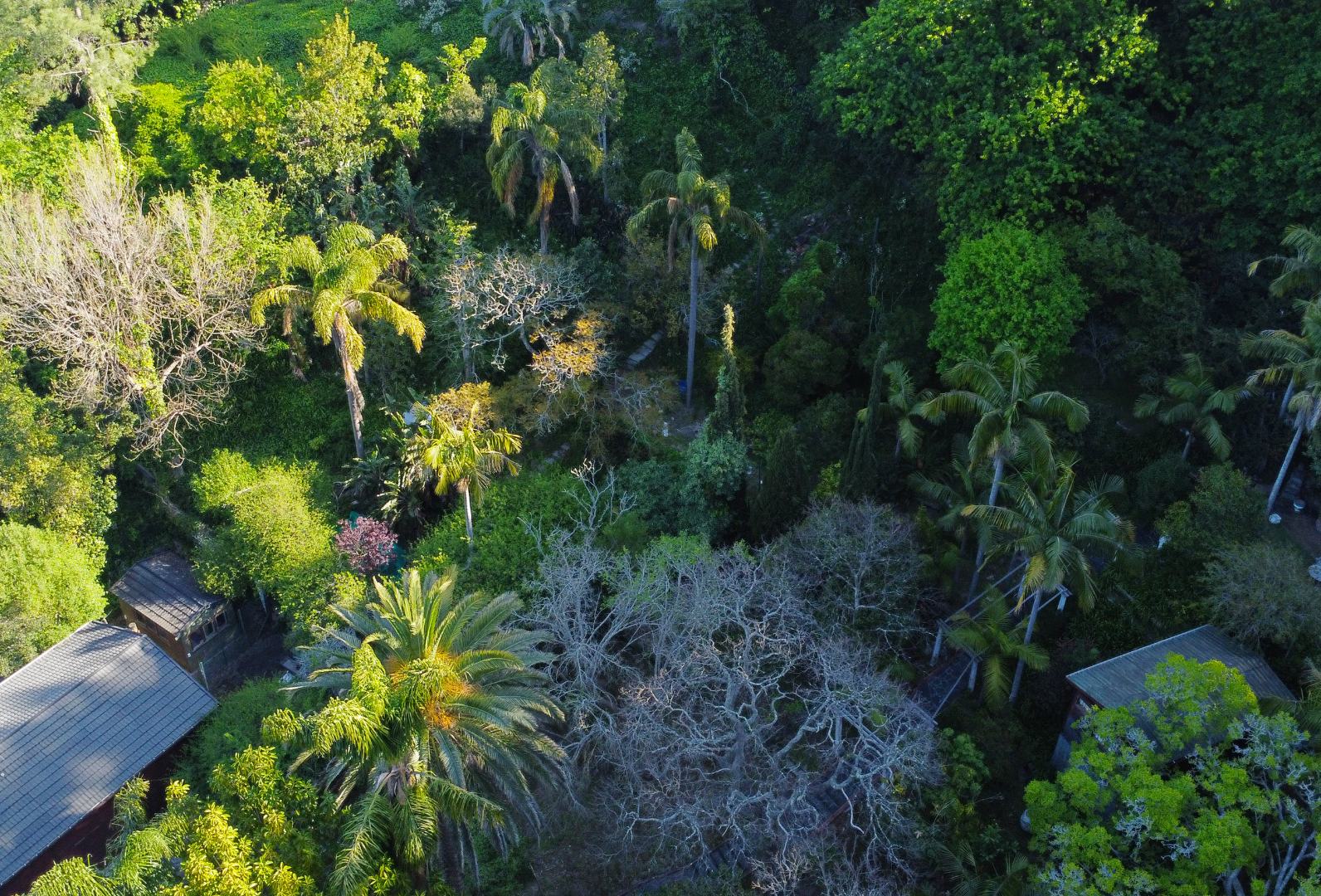 REMAX UNLIMITED TEAM THE UPPERS IS PROUD TO PRESENT - Discover an exceptional opportunity within the prestigious Constantia suburb of Cape Town. This expansive 8000 sqm erf offers a truly private and secluded natural environment, nestled amidst a heavily wooded, sloped mountainside. The property boasts stunning natural mountain views and a lush, mature garden with abundant trees and tropical foliage, creating a tranquil retreat from city life. Visible charming rustic structures are integrated into the landscape, hinting at a unique lifestyle or development potential.