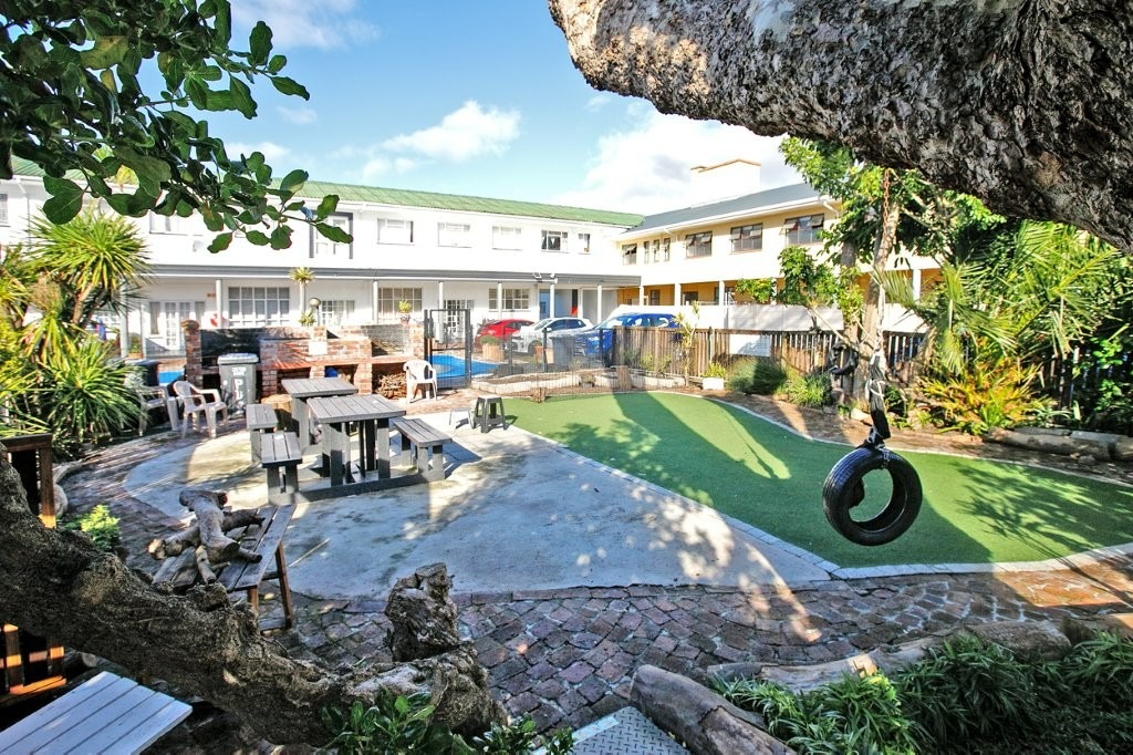 The complex boasts a communal swimming pool, perfect for relaxation during warmer months, surrounded by a paved area and mature trees. Additionally, there are communal garden spaces, and built in braai area, and a tire swing, providing recreational options.