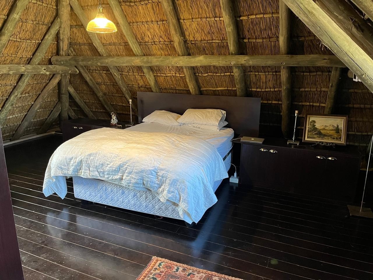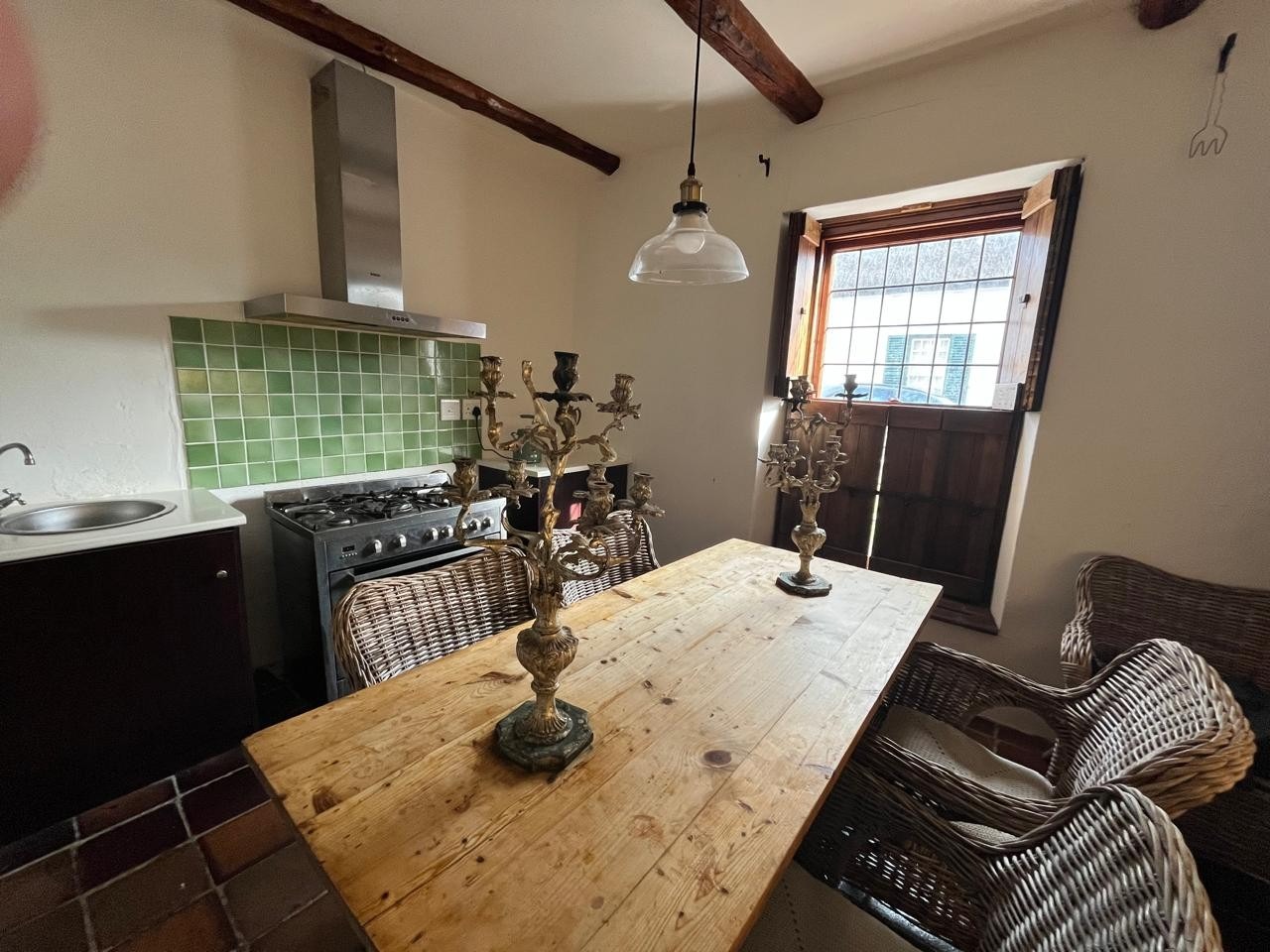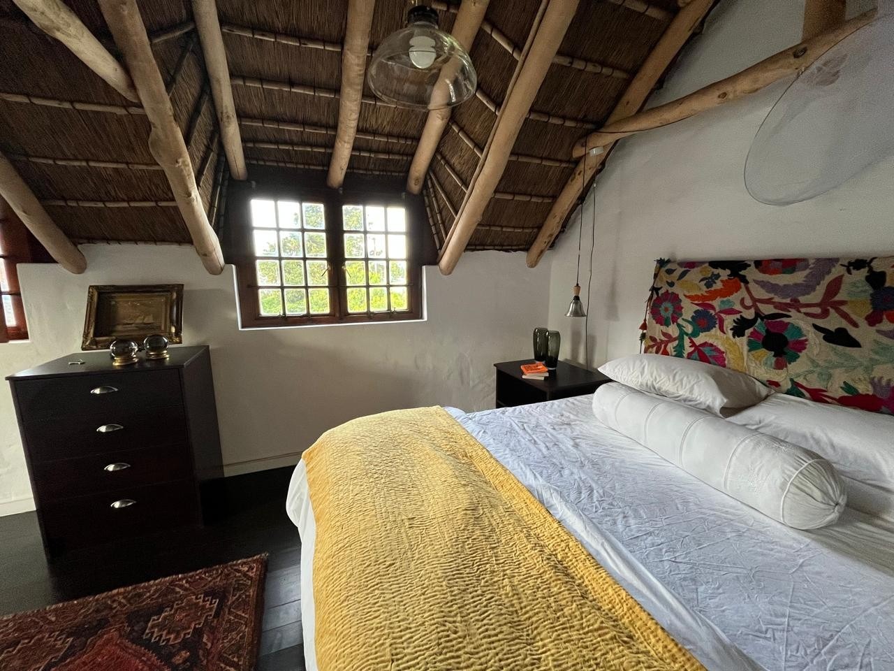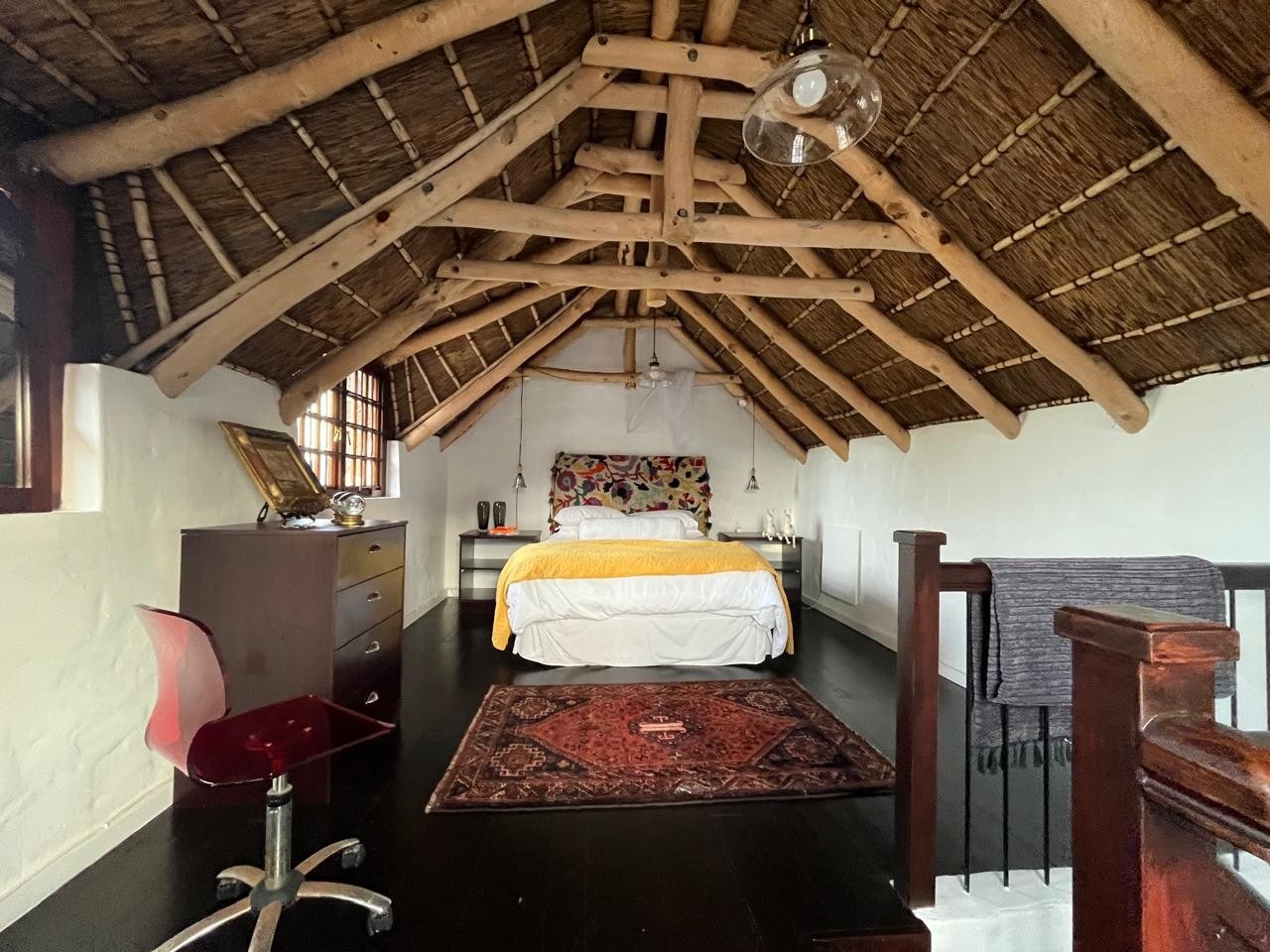 Inside, you’ll find three bedrooms spread across two levels. The main bedroom upstairs features wooden floors, built-in cupboards, and a full en-suite.