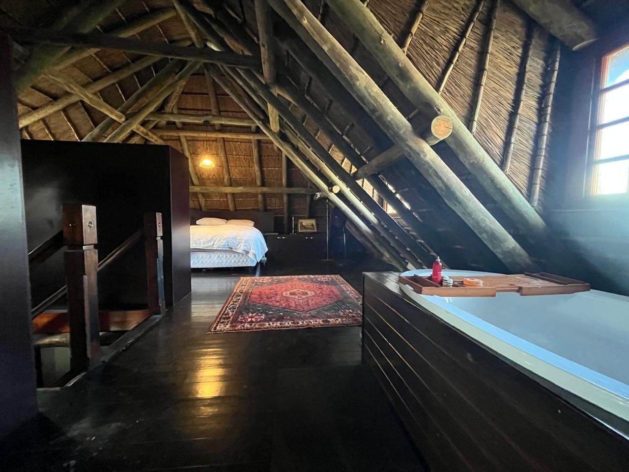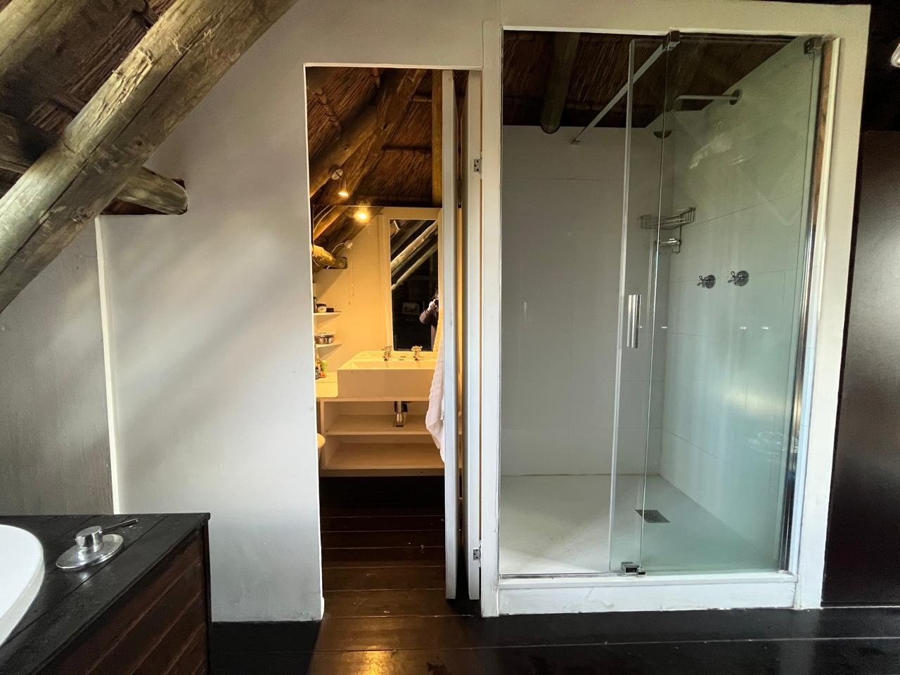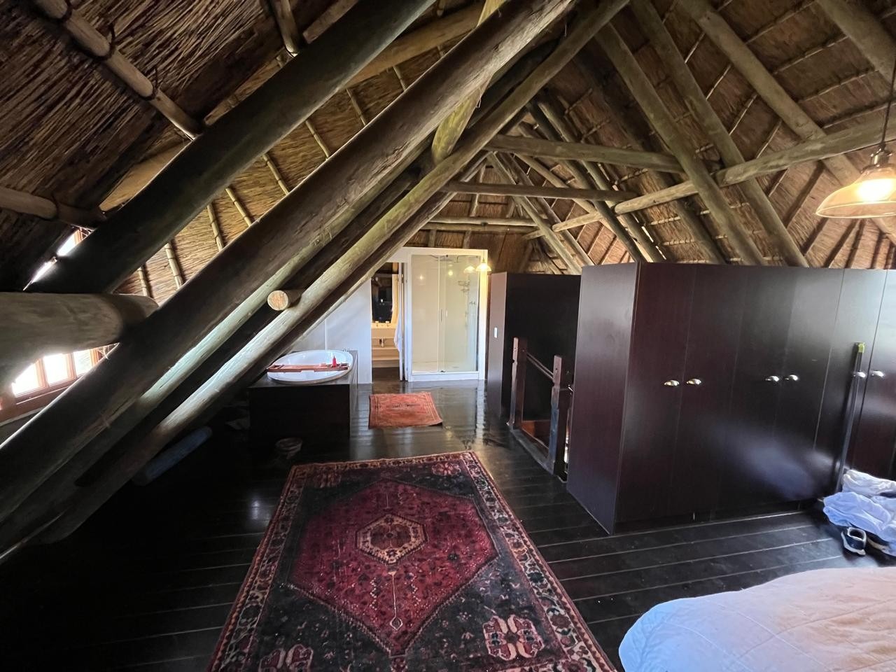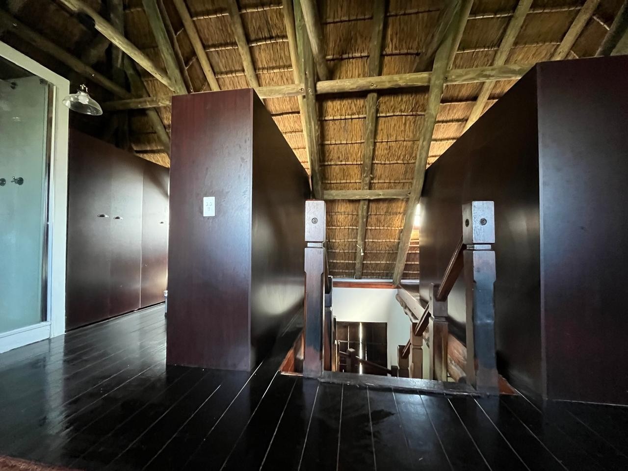 Inside, you’ll find three bedrooms spread across two levels. The main bedroom upstairs features wooden floors, built-in cupboards, and a full en-suite.