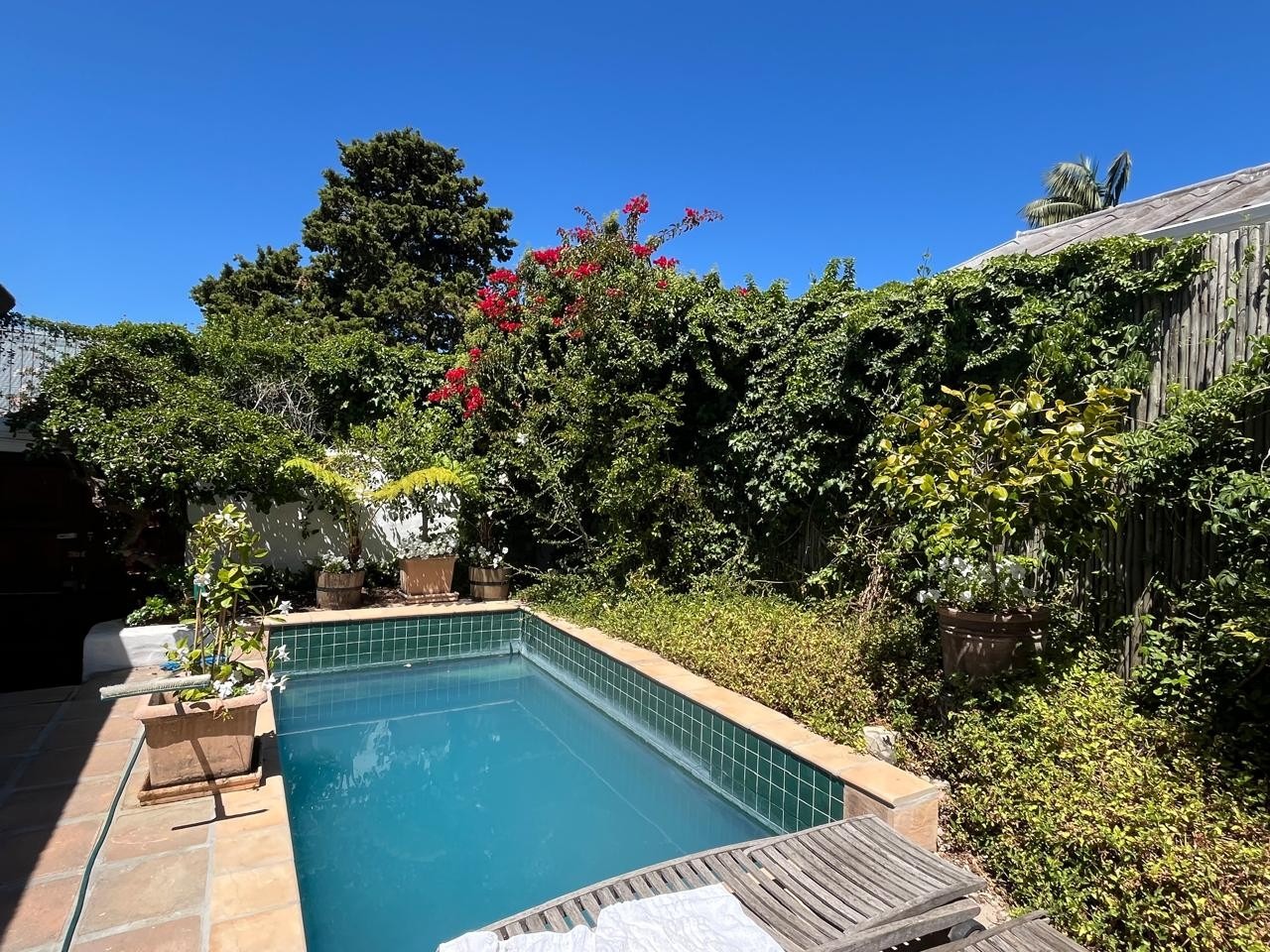 Outside, a compact, low-maintenance garden and pool provide a peaceful retreat.