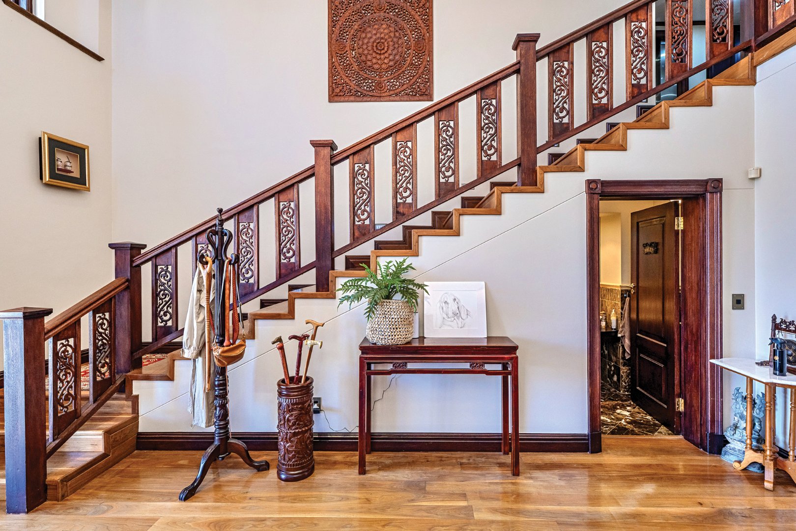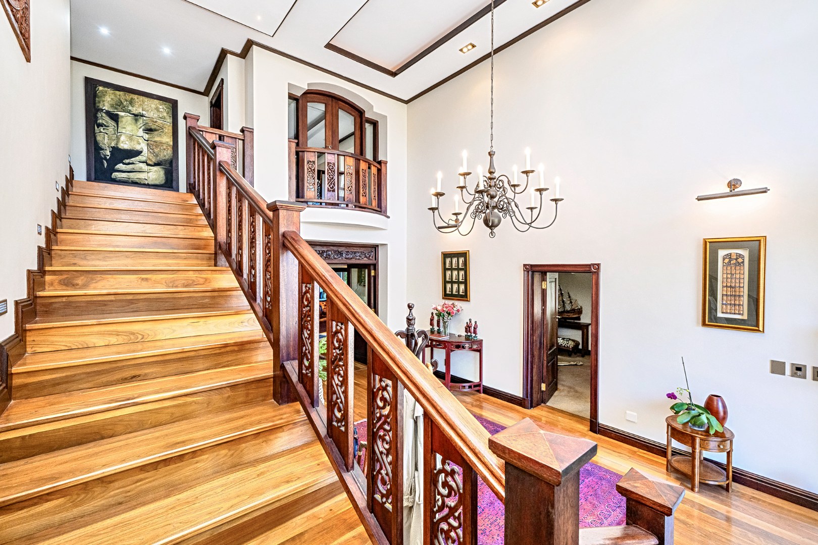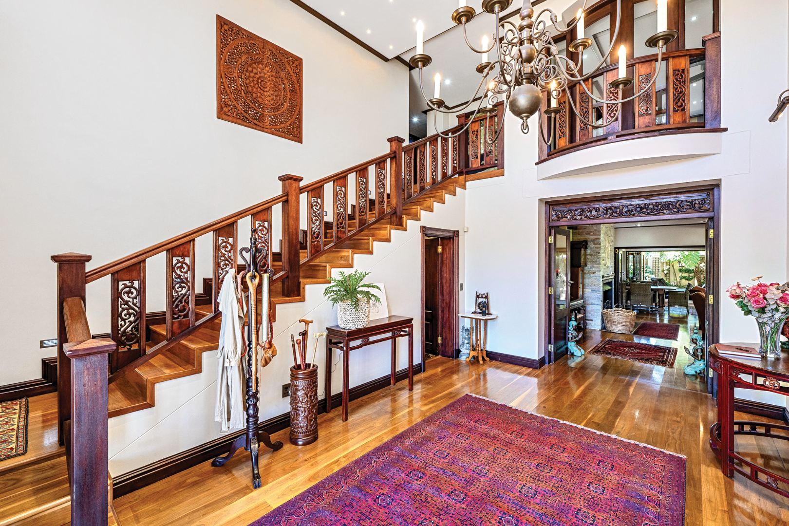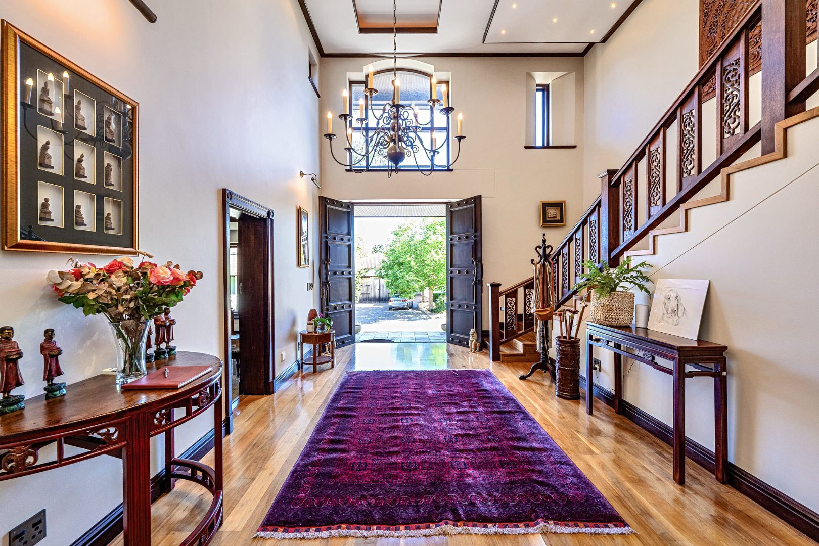 From the moment you enter the double-volume entrance hall, the home captivates with its impressive staircase, ambient natural light, and bespoke finishes that speak to a lifestyle of effortless sophistication. Solid wooden flooring, high ceilings, and expansive stacking doors create a seamless flow between indoor and outdoor living spaces.