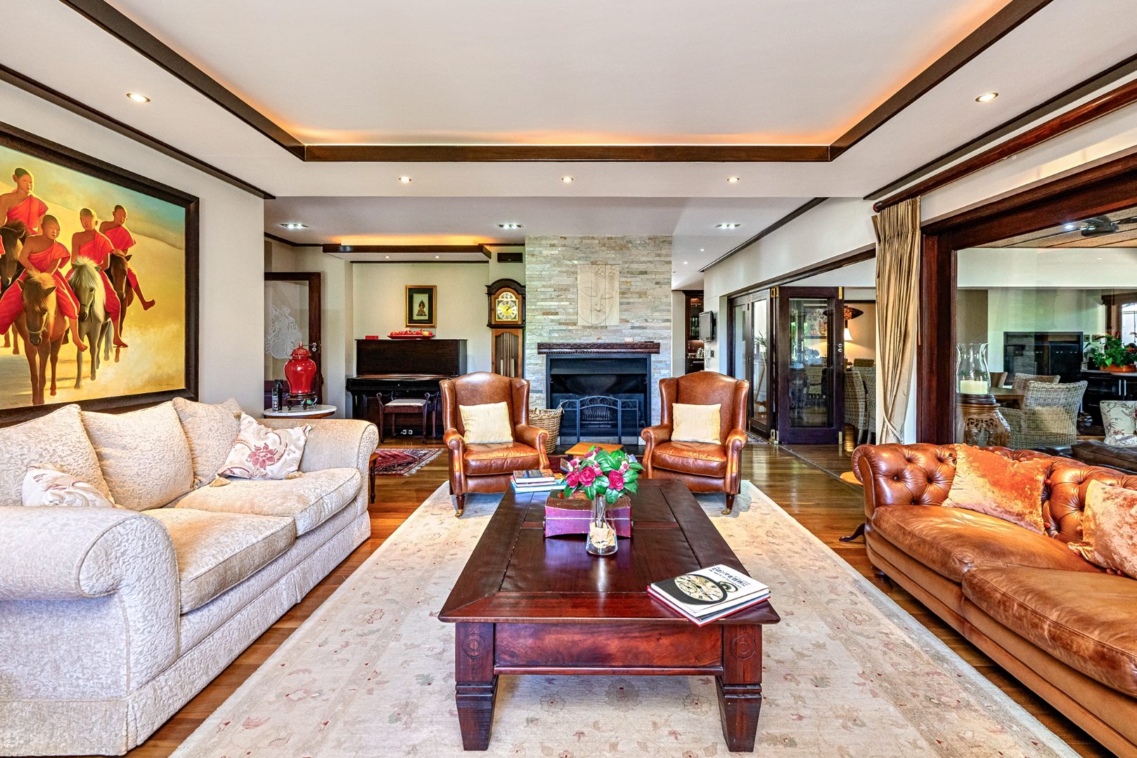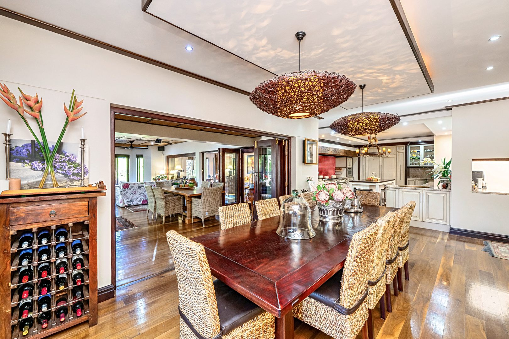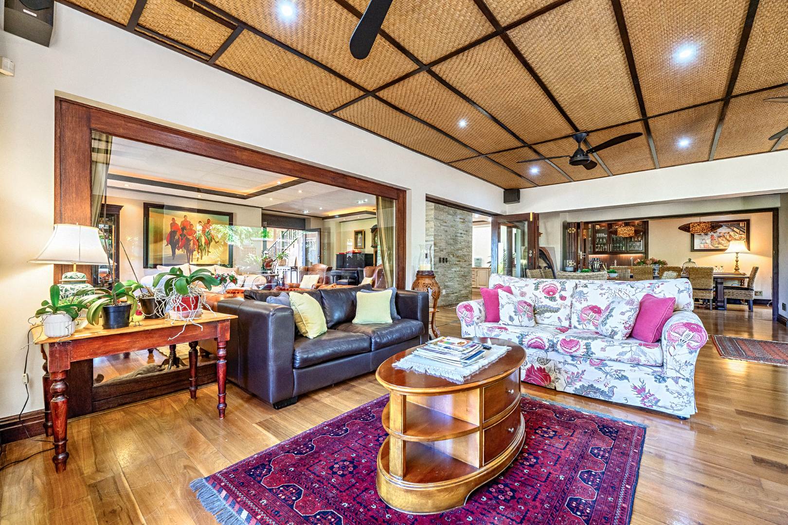 Step into a world of refined elegance and exceptional design with this architecturally striking Indonesian-inspired residence, tucked away in one of Durbanville’s most prestigious and private estates. Offering a harmonious blend of luxury, comfort, and natural beauty, this extraordinary home is framed by panoramic mountain views and a meticulously landscaped tropical garden.