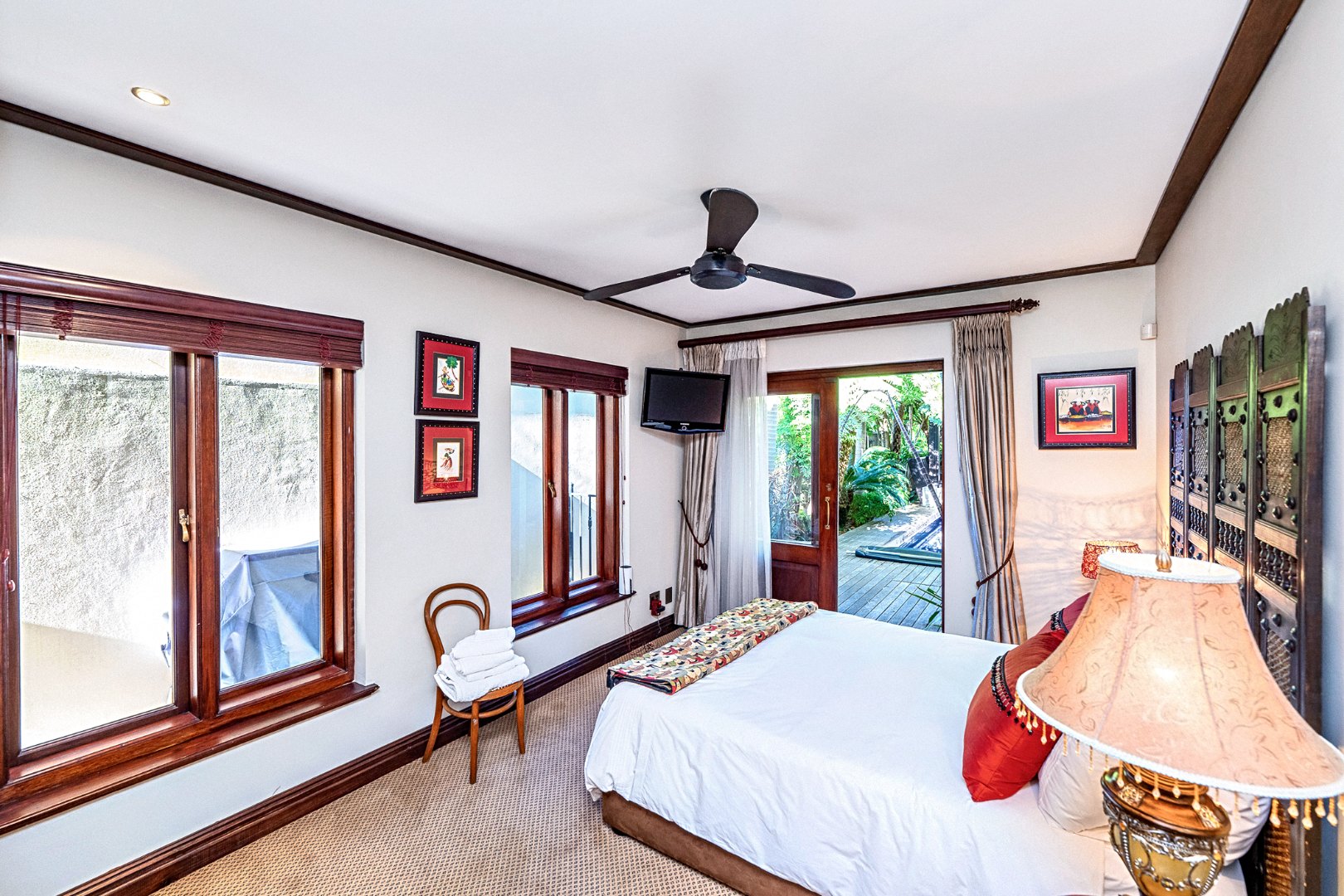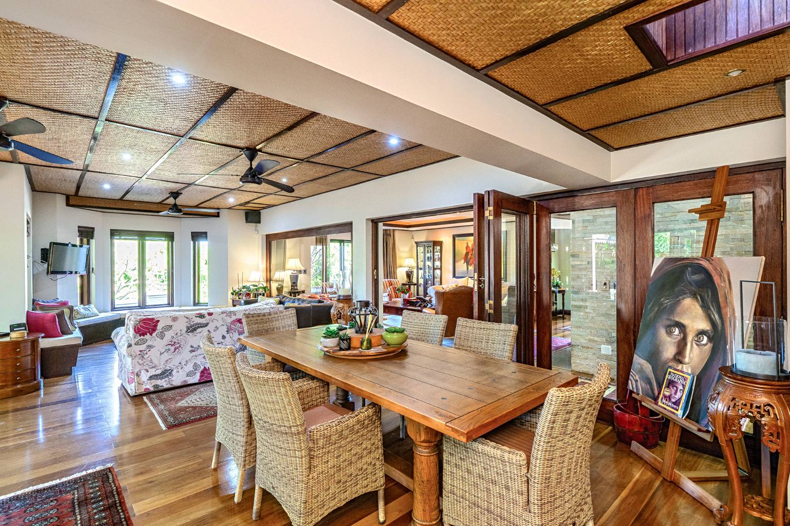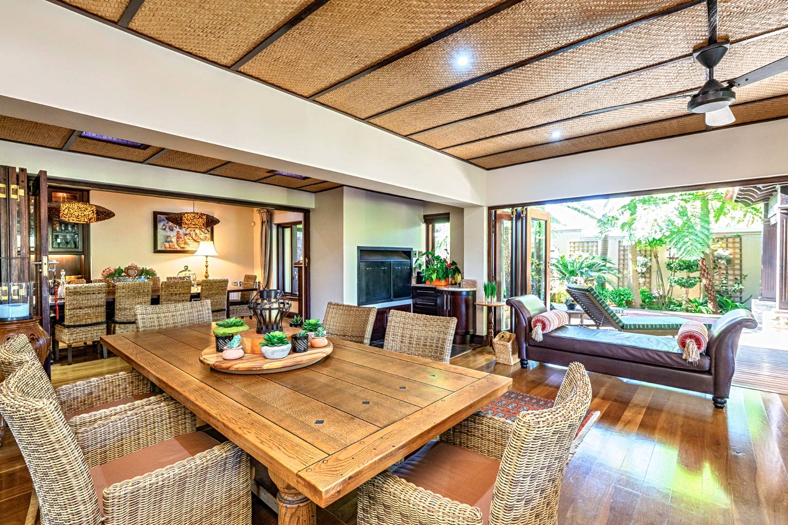 Step into a world of refined elegance and exceptional design with this architecturally striking Indonesian-inspired residence, tucked away in one of Durbanville’s most prestigious and private estates. Offering a harmonious blend of luxury, comfort, and natural beauty, this extraordinary home is framed by panoramic mountain views and a meticulously landscaped tropical garden.