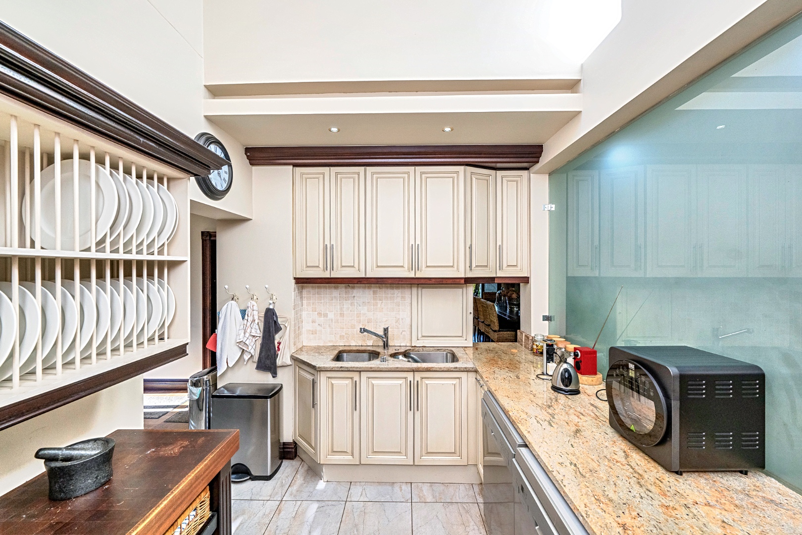 Outdoors, the fully landscaped, pet-friendly garden includes computerised irrigation, water tanks, an artificial lawn, and a secluded wooden deck for serene outdoor lounging. Additional features such as a full backup generator, surround sound system, air conditioning, ceiling fans, and prepaid electricity elevate the everyday living experience.