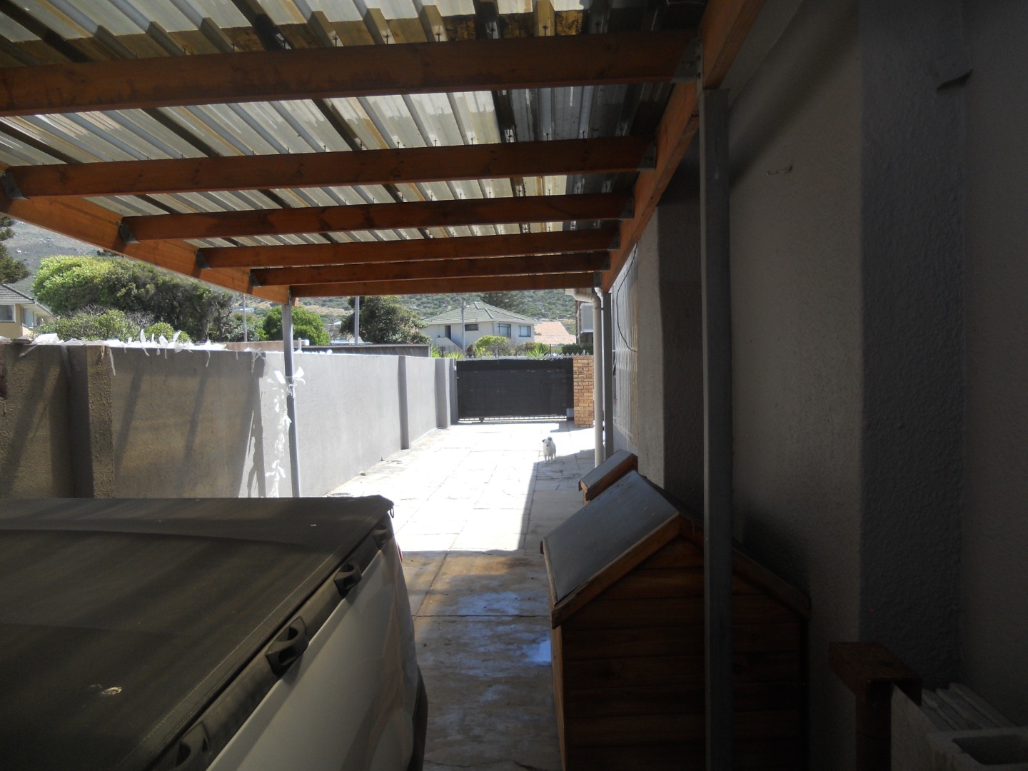 For your peace of mind, the property includes burglar bars on the windows. The exterior has a neat grey stucco finish with practical paved areas and a welcoming awning. This home is nestled in a beautiful suburban setting, offering a fantastic coastal beach lifestyle with stunning mountain views. It’s a wonderful spot to enjoy the best of both worlds.
