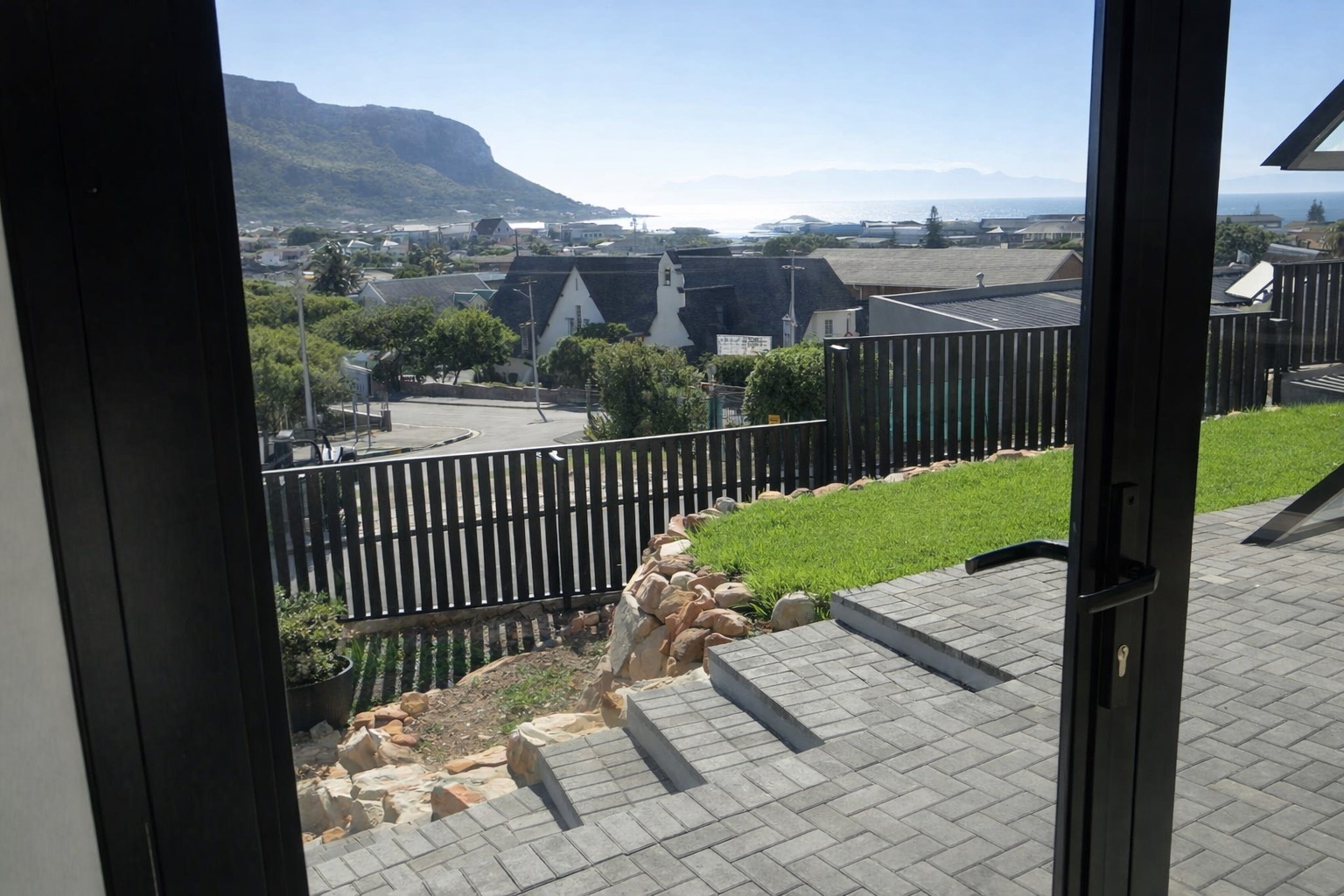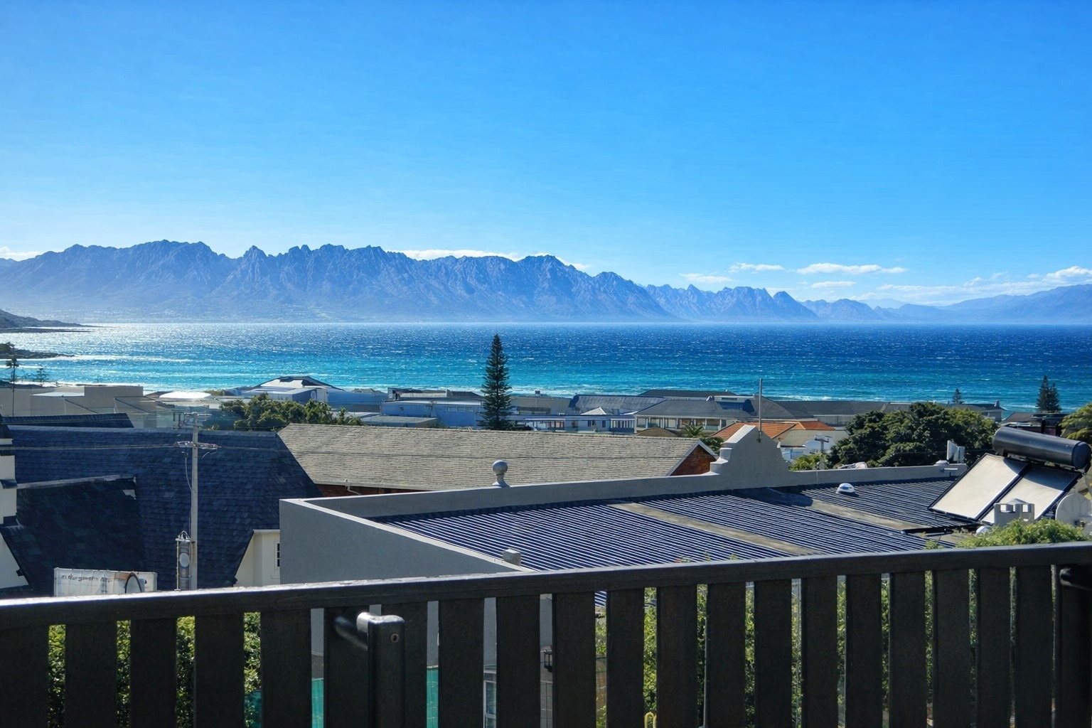 Step out onto the front wooden deck and take in the beauty of False Bay and the Hottentots Holland mountain range spanning the background.