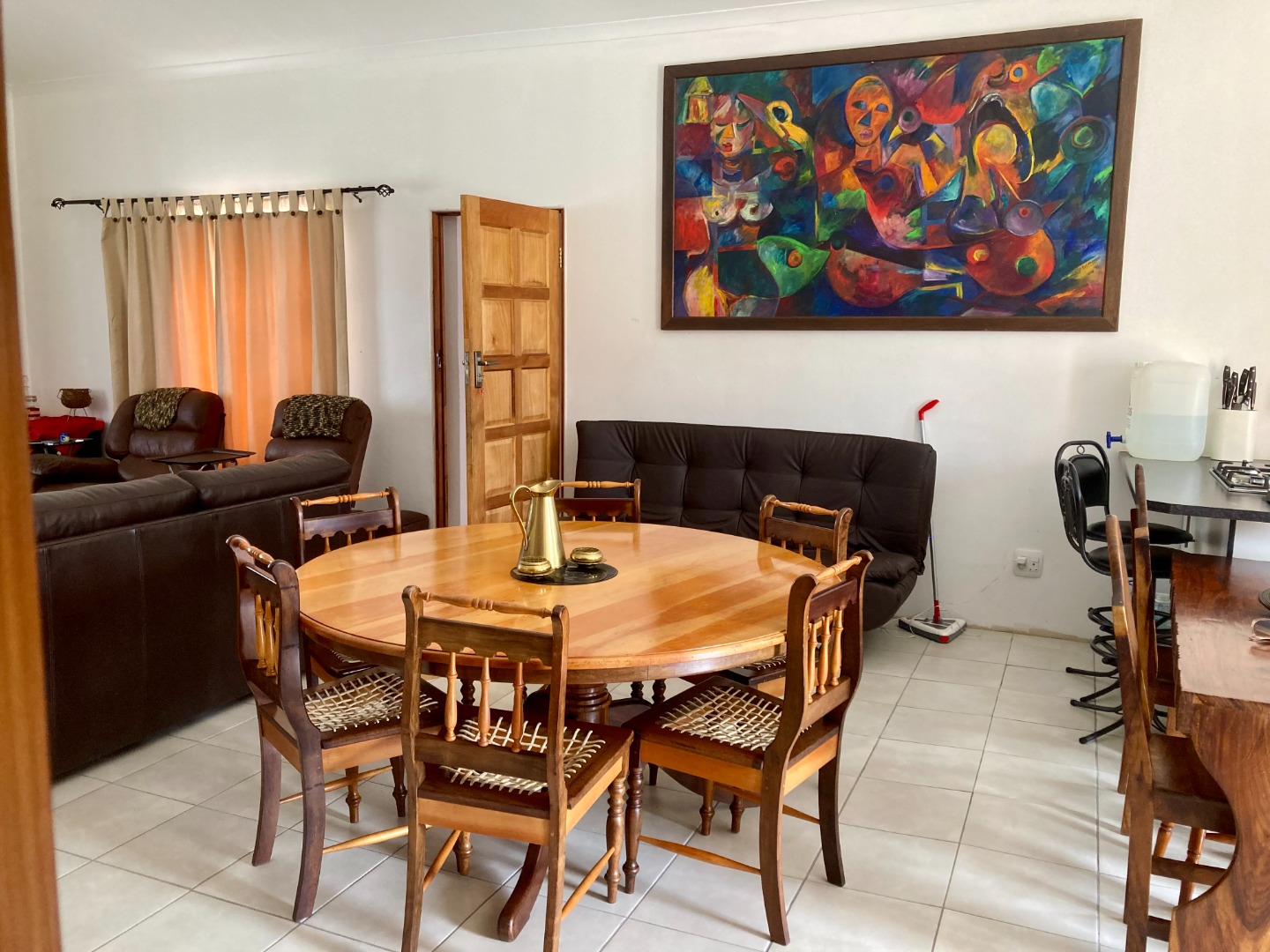 Nestled in the charming coastal town of Franskraal, Gansbaai, this property offers an appealing opportunity for those seeking a holiday home or a tranquil permanent residence. Enjoy the serene coastal beach environment and scenic views that define this desirable South African location. The home's exterior features a distinctive orange siding facade, complemented by a welcoming covered front porch, ideal for enjoying the fresh air. A substantial paved driveway provides generous off-street parking for up to five vehicles, ensuring ample space for residents and visitors alike. The property is set on a 702 sqm erf, featuring a low-maintenance garden and a practical wooden Wendy house for additional storage solutions. The presence of burglar bars enhances the home's security profile. Inside, the residence boasts an inviting open-plan living and dining area, designed for comfortable daily life and entertaining. This bright space benefits from abundant natural light, neutral white walls, and easy-to-maintain tiled flooring throughout. Vaulted ceilings further enhance the sense of spaciousness. The property uniquely features two functional kitchens, offering flexibility and convenience for meal preparation. Accommodation includes three well-proportioned bedrooms, thoughtfully designed to provide comfort. These are serviced by one main bathroom, alongside two private en-suite facilities, ensuring privacy and ease for all occupants. A dedicated braai room provides an excellent space for social gatherings and outdoor cooking, seamlessly extending the living area. Modern connectivity is assured with fibre internet access available. With a generous floor size of 250 sqm, this home combines practical living spaces with the relaxed atmosphere of coastal living. This versatile property is ready to welcome its new owners. Key Features: * 3 Bedrooms, 1 Bathroom, 2 Ensuites * Open-plan living and dining area * Two functional kitchens * Paved driveway with 5 parking spaces * Covered front porch * Braai room * Wendy house for storage * Fibre internet ready * Burglar bars for security * Coastal beach holiday home classification * Scenic view