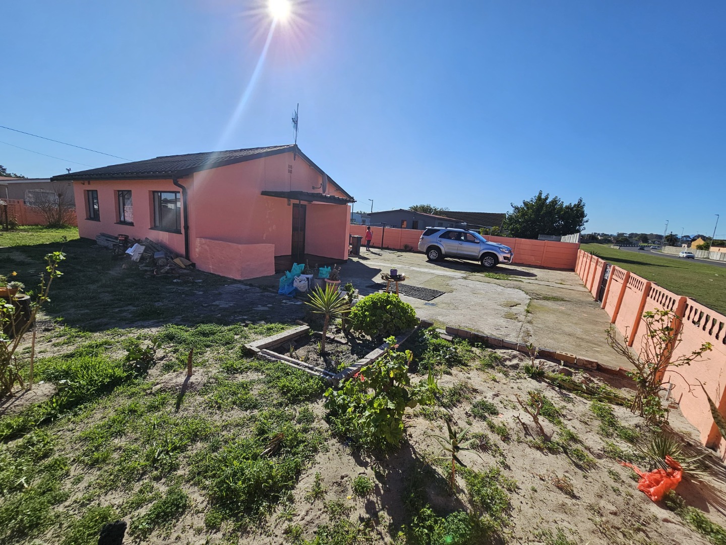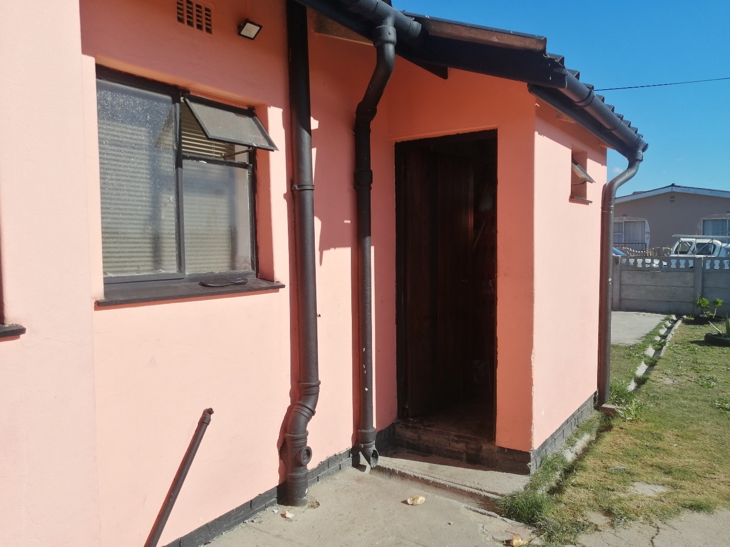 This charming 3-bedroom house is ready for it's next chapter! You'll love the fresh salmon-pink paint and black roof, giving it a fantastic look.
