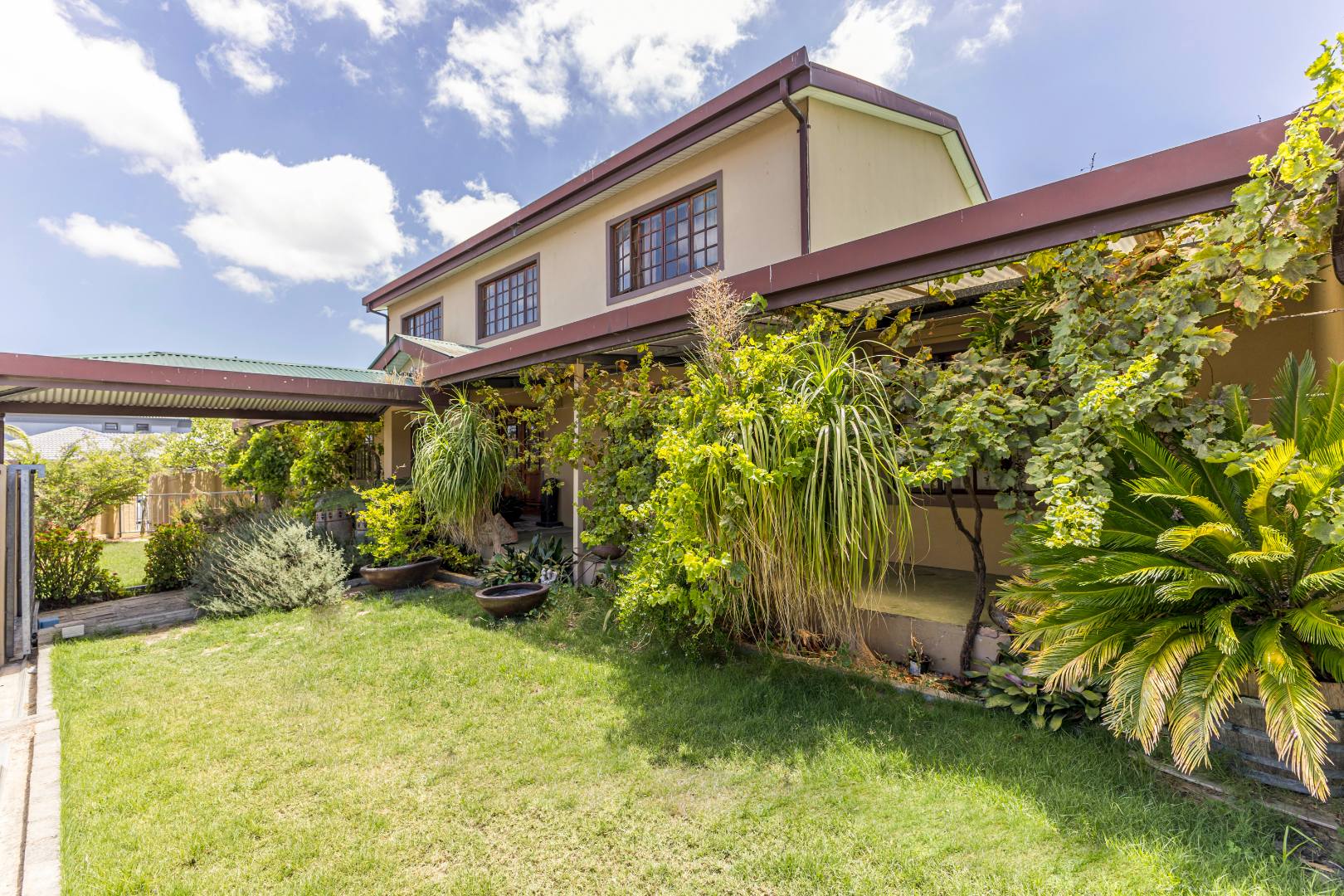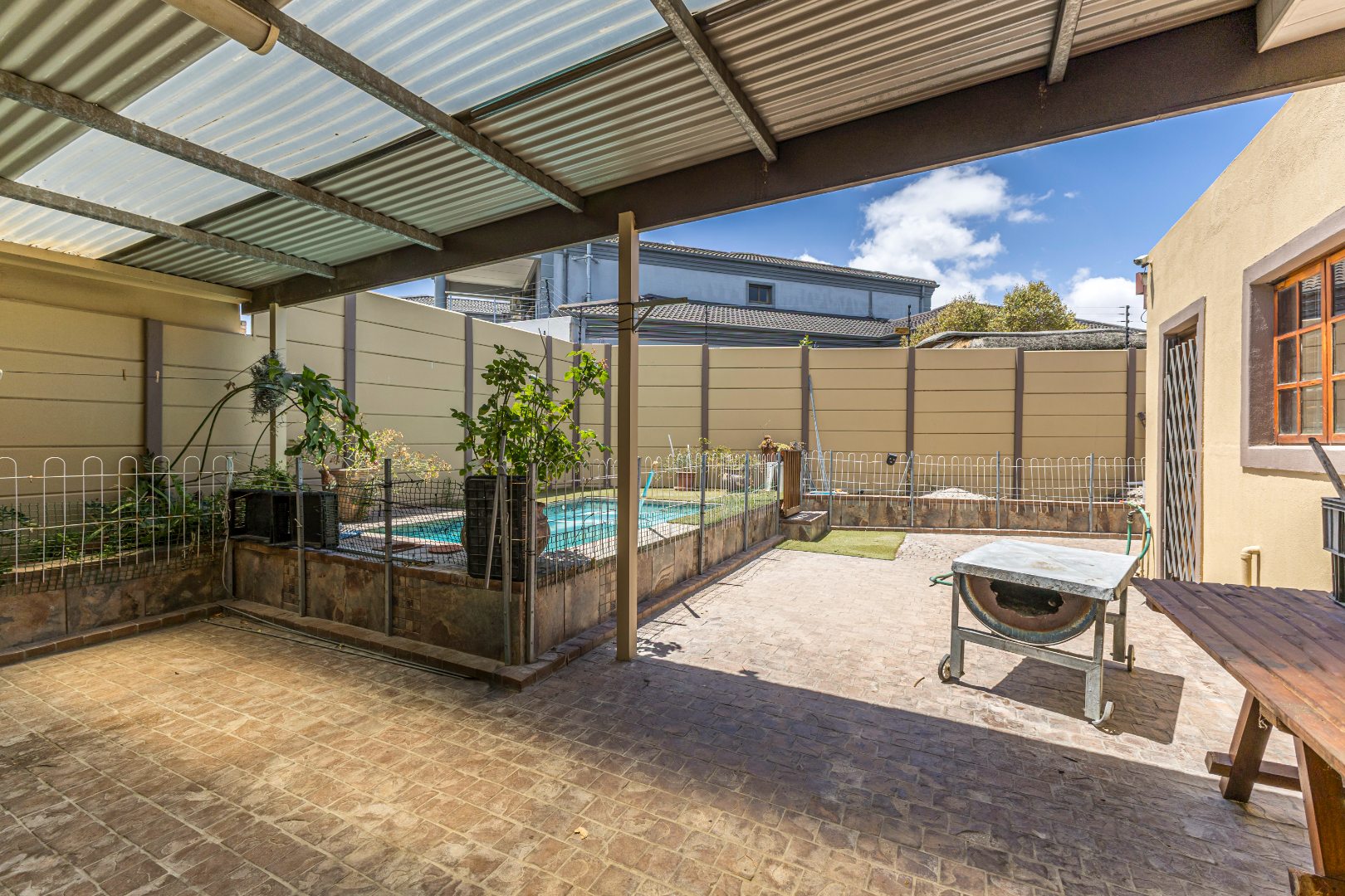 Outdoor Entertainment Area: A spacious backyard with carport that serves as a place of family gatherings, children playground and your good all-round braai with the outside braai area. The splash pool is for those hot summer days and also surrounded by a fence for the little ones.