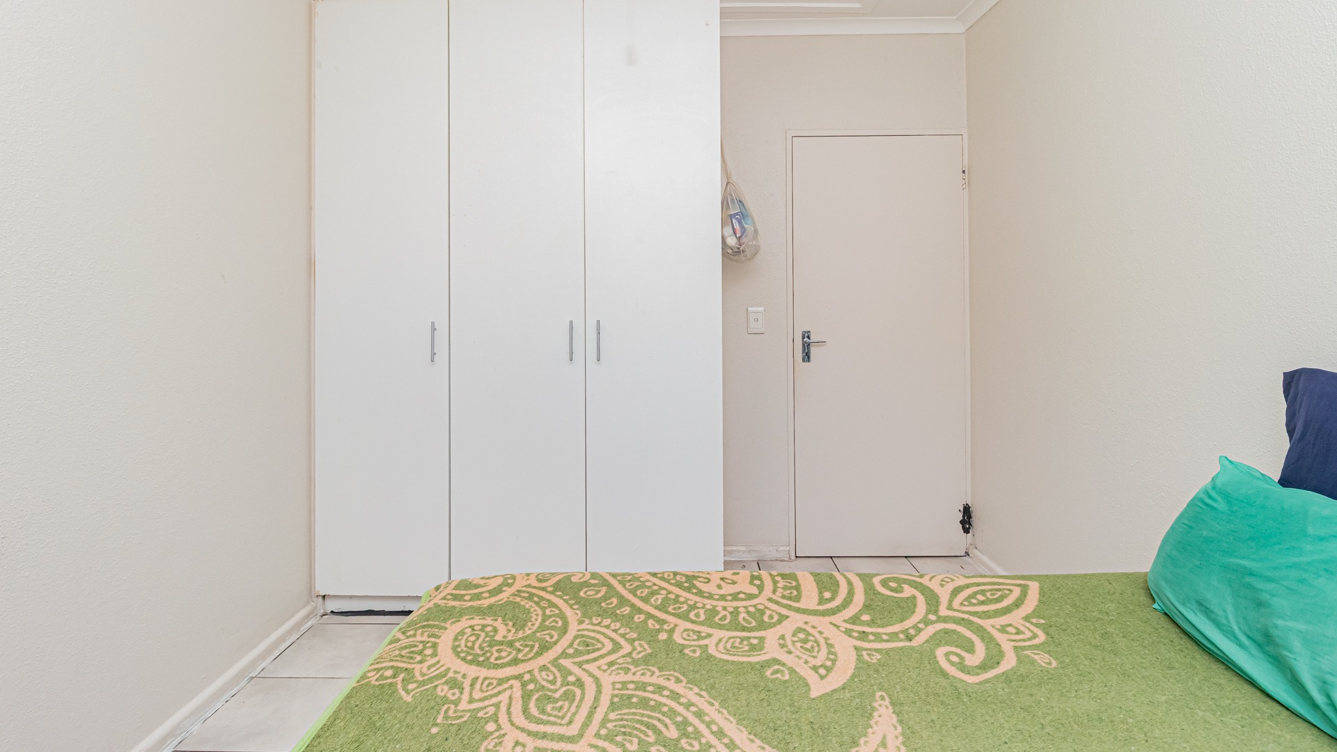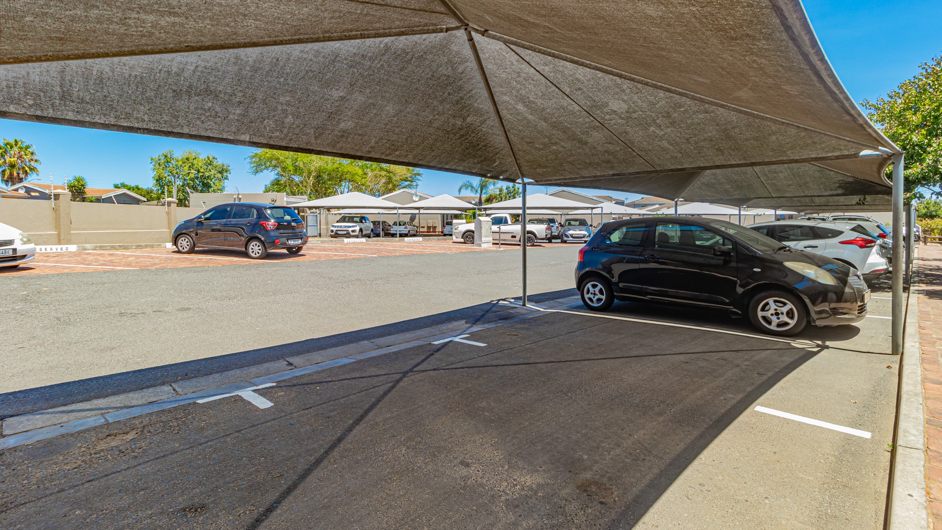 The comfortable bedroom includes a built-in wardrobe for convenient storage and a window fitted with security bars, allowing natural light while enhancing safety. The unit also comprises one well-appointed bathroom. Residents benefit from one dedicated parking space, with the complex offering numerous covered carports for additional vehicle protection and convenience.
