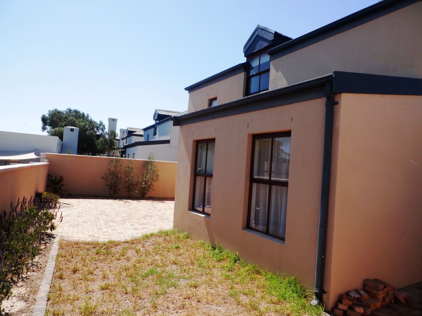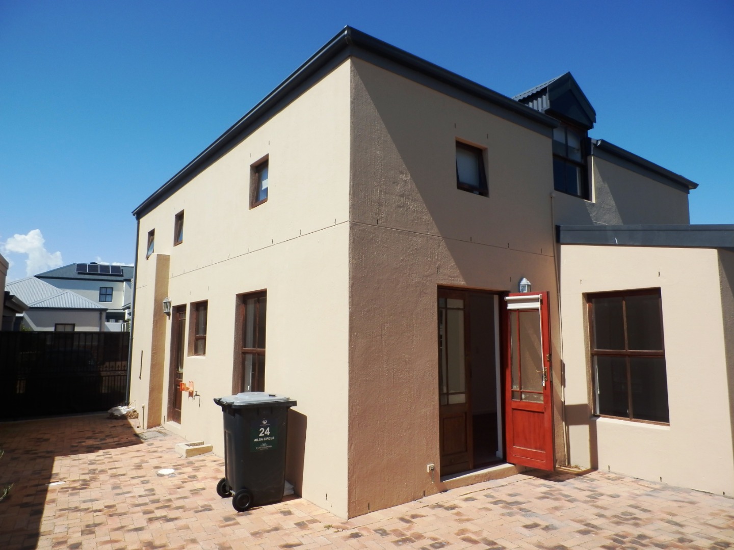 The dining room opens via double doors into a paved courtyard. The family/TV room leads into an entertainment/braai room,