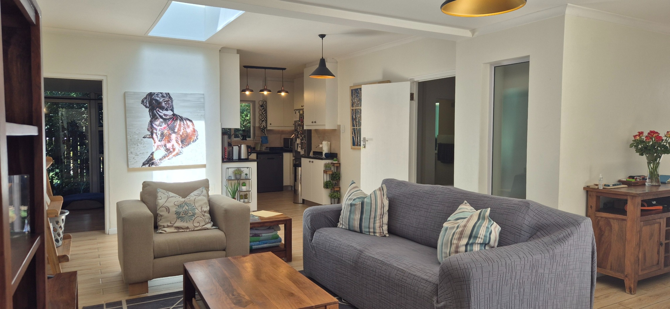 The kitchen is open plan with a fitted dishwasher.