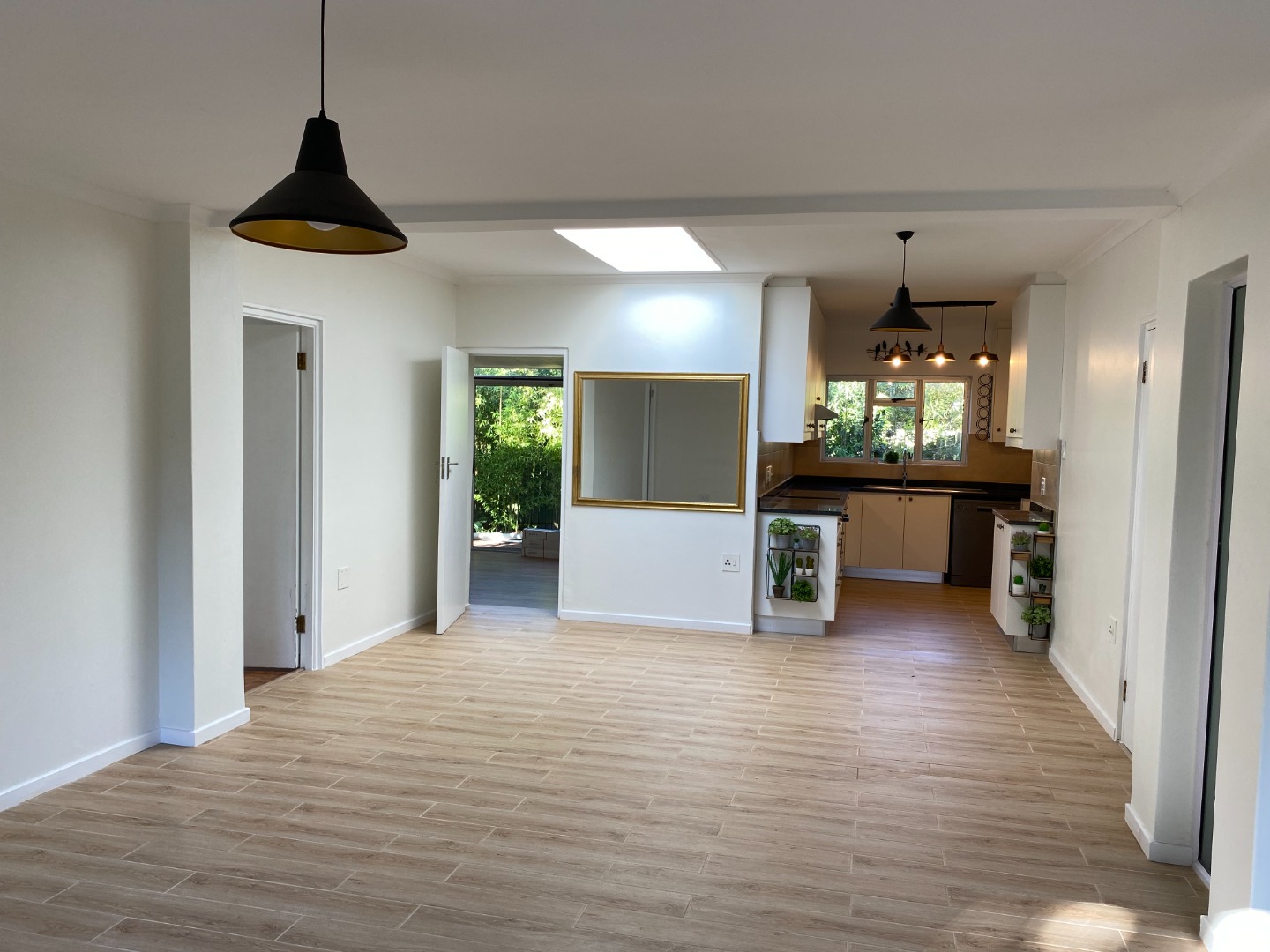 The access is via remote automated driveway gates to a long driveway. An automated irrigation system feeds the lush garden which opens to a small enclosed pool. This family home is light and bright with strategically placed skylights and brings forth an air of space that runs throughout the home.