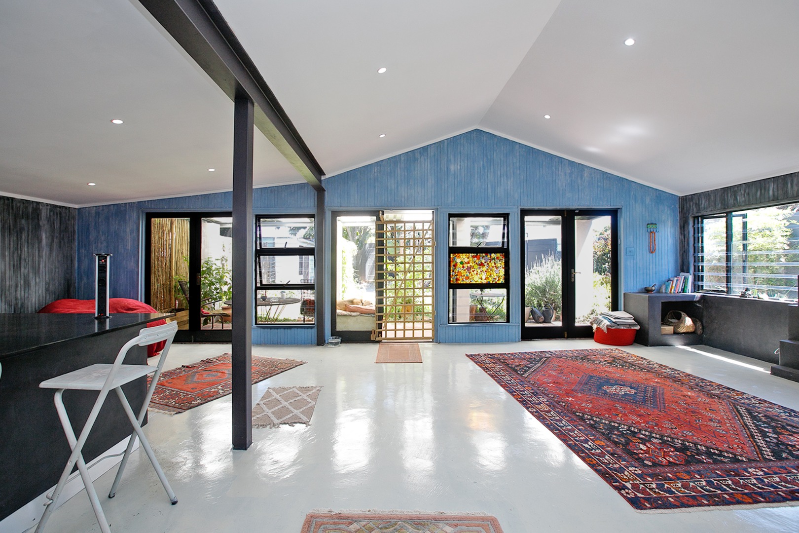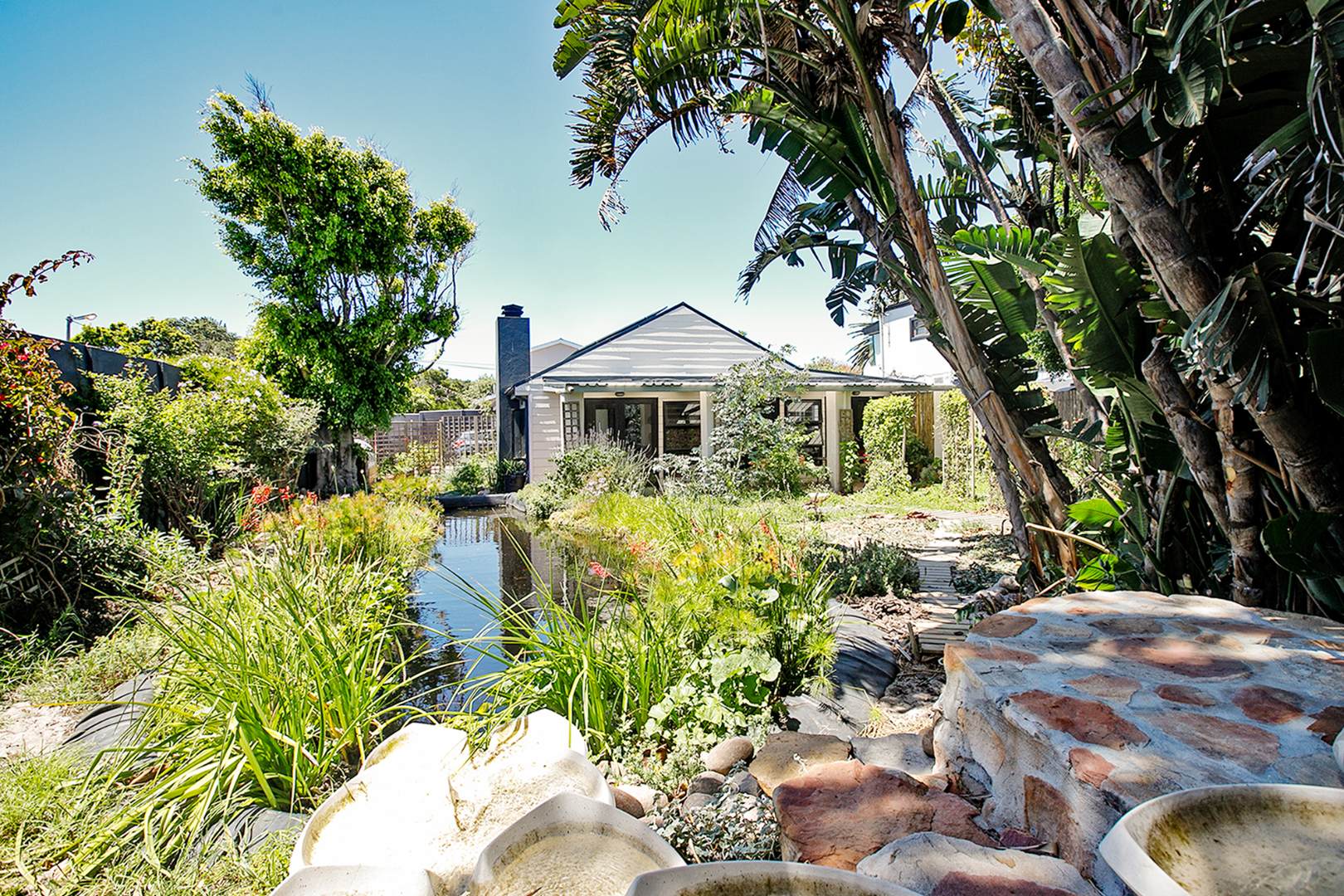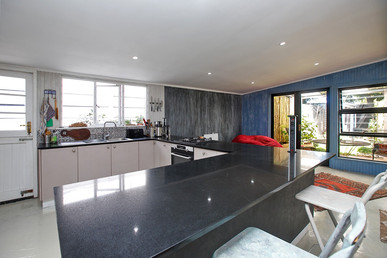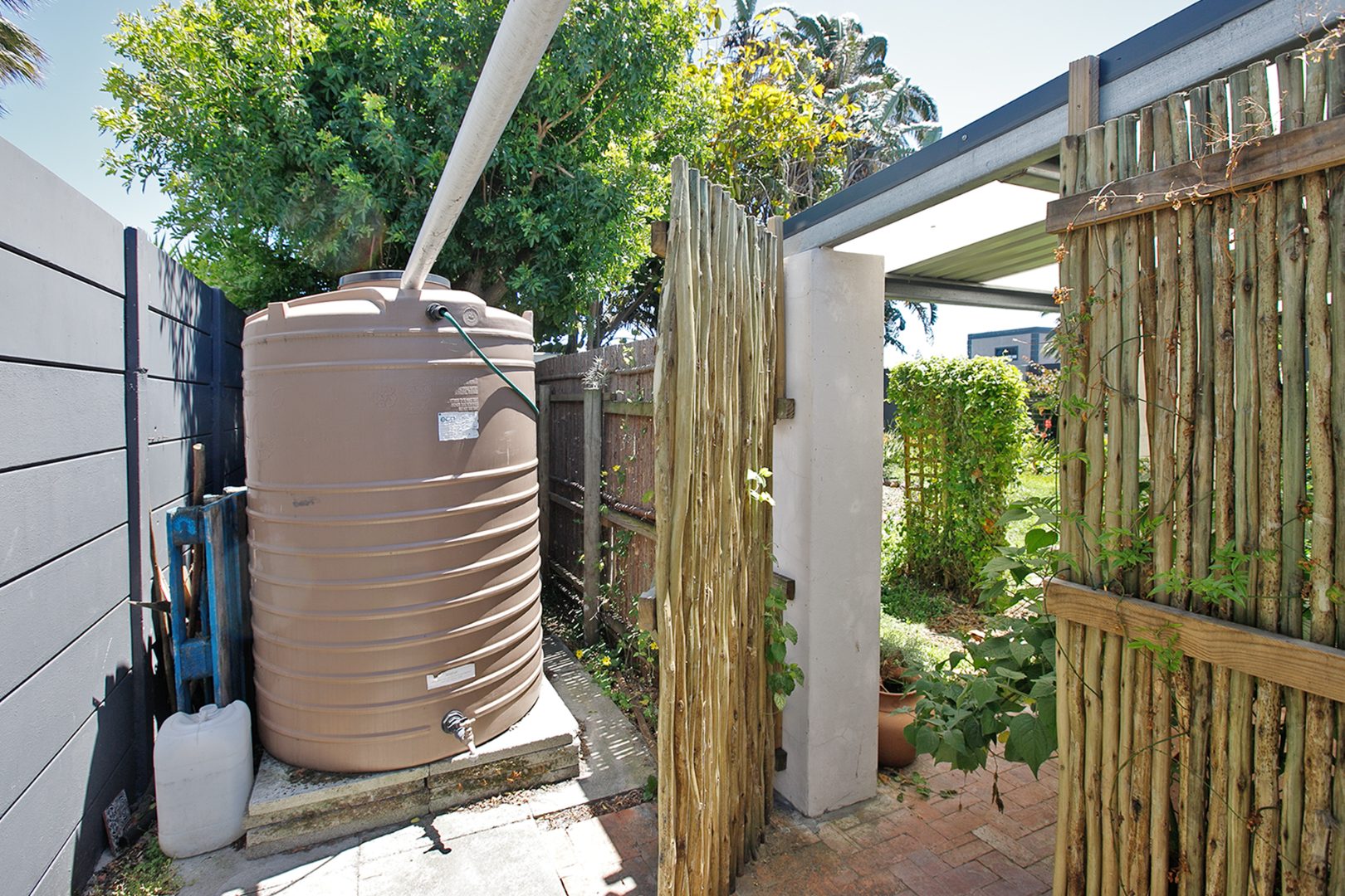 Additional eco-friendly features include solar power, skylights, two rain-harvest tanks, and a borehole (requiring a filter), along with a brand-new roof for added peace of mind.
