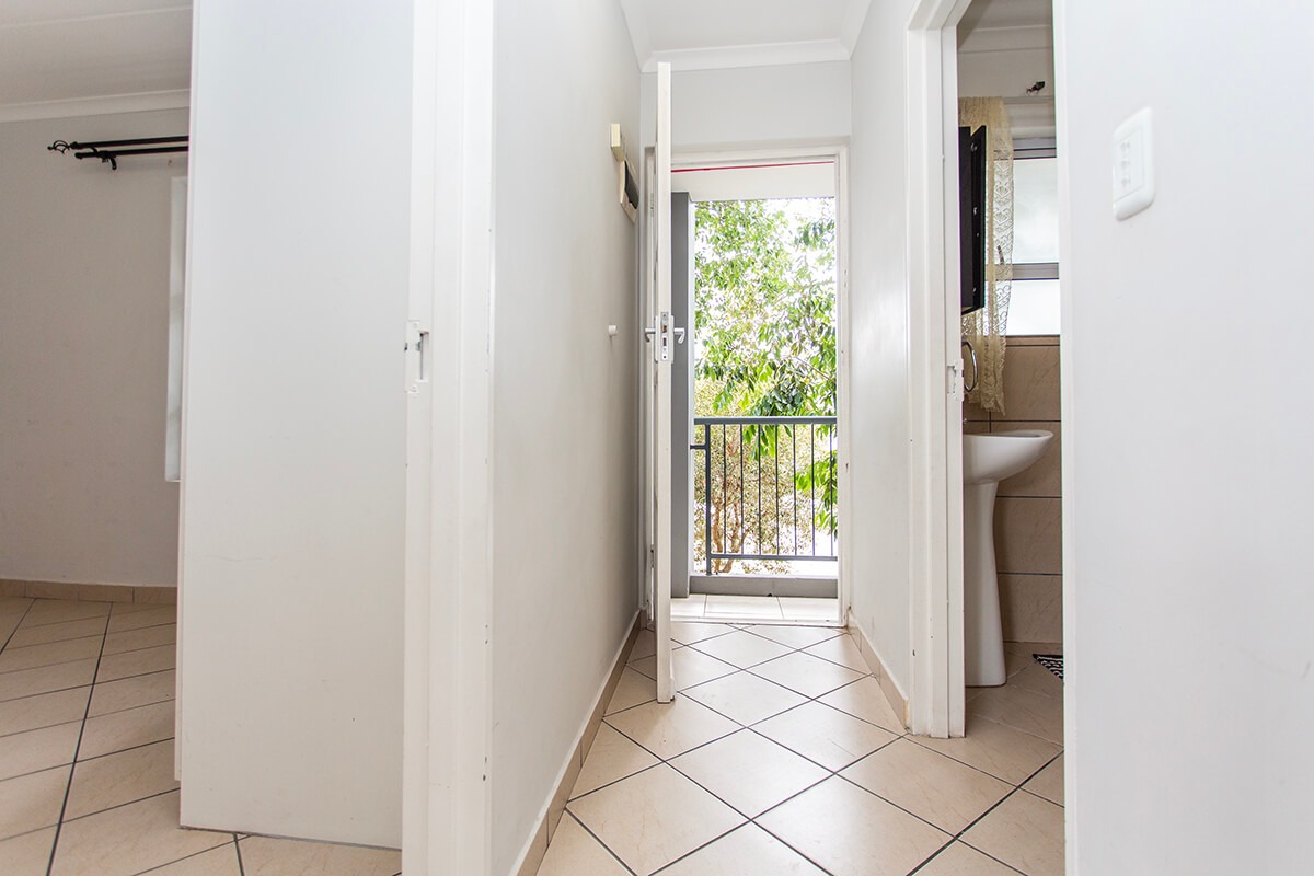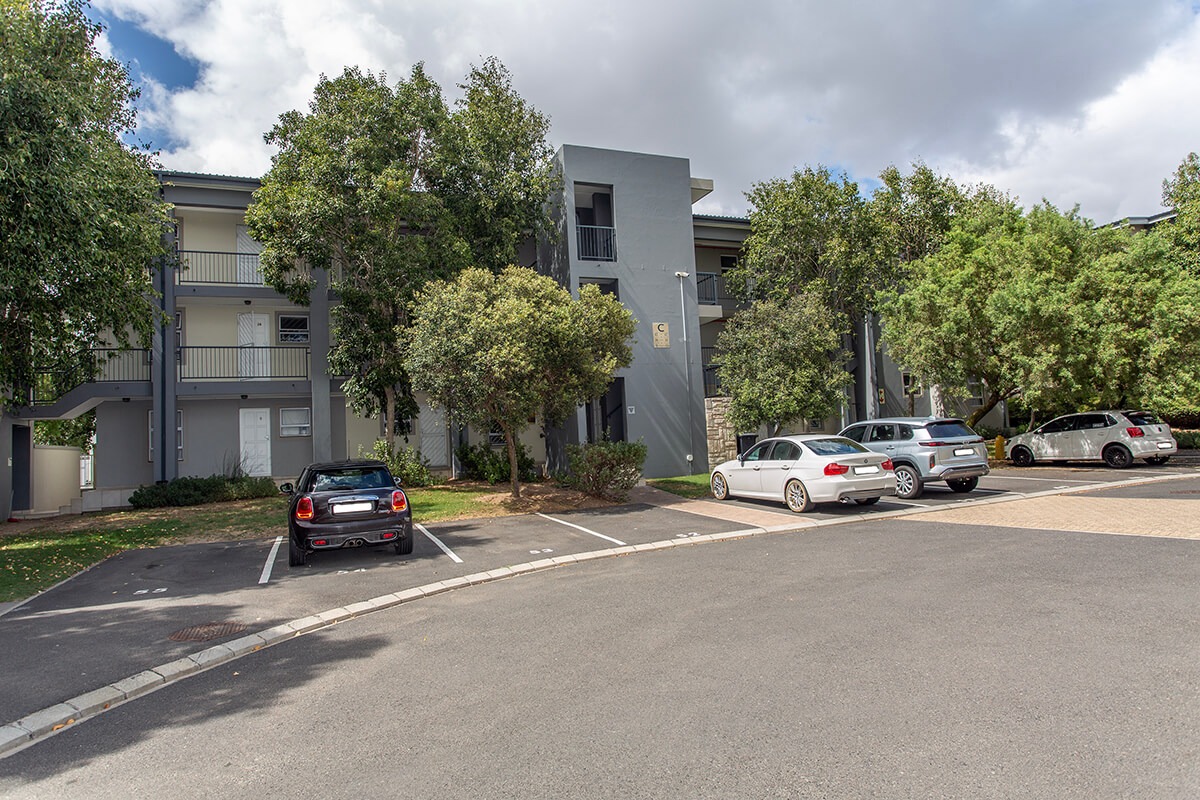 Access to an outdoor balcony from the living area extends the living space, offering natural light ideal for relaxation. The unit includes one well-appointed bathroom and benefits from a dedicated parking bay. The overall design emphasizes a clean, well-maintained aesthetic, making it suitable for individuals or small families seeking a contemporary and low-maintenance lifestyle.