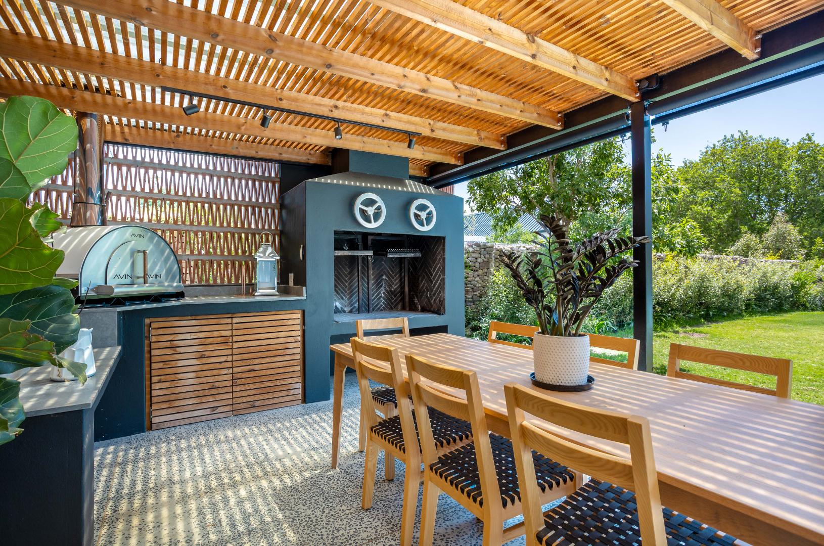 The allure extends outdoors to a magnificent private swimming pool, complemented by a spacious patio, dedicated covered entertainment area with fitted pizza oven and barbeque, perfect for al fresco entertaining or tranquil relaxation. For the active connoisseur, a private gym and communal tennis court await. Practical amenities include staff quarters, a dedicated laundry room, ample storage, two garages, and six additional parking bays, all set against a backdrop of scenic mountain views.