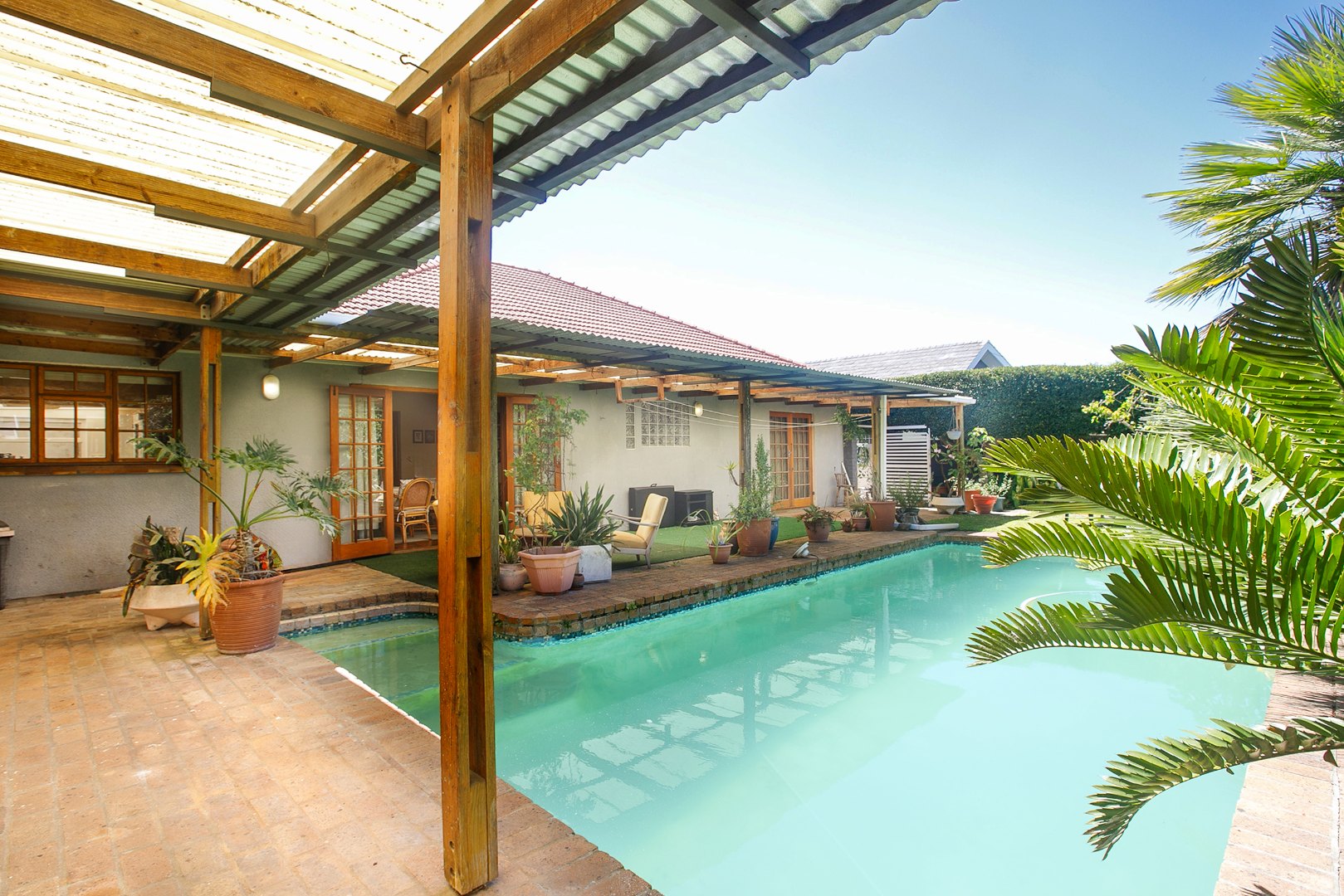 This Heathfield home offers comfortable family living with spacious interiors, a swimming pool, and useful additional features. The property has an established garden with mature trees and lawn areas, creating a pleasant setting from the moment you arrive. A paved driveway leads to the garage, which provides tandem parking for two vehicles.
