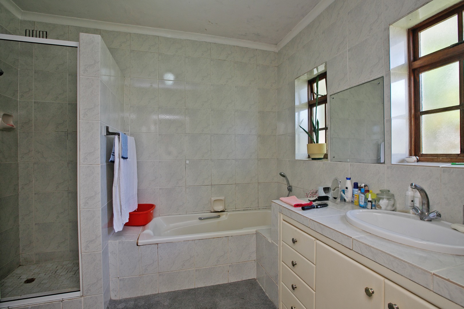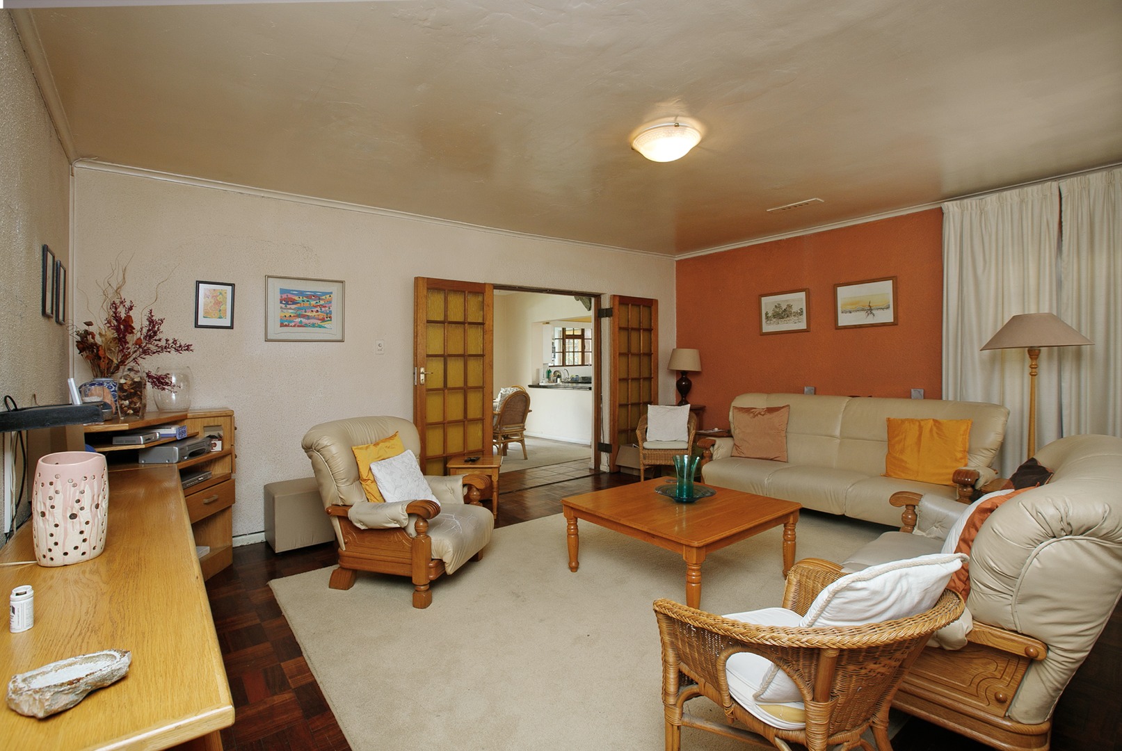 The home includes three bedrooms and two bathrooms. The main bedroom features built-in cupboards and an en-suite bathroom, providing added privacy and convenience. The remaining bedrooms are suitable for family members, guests, or even a home office depending on your needs.