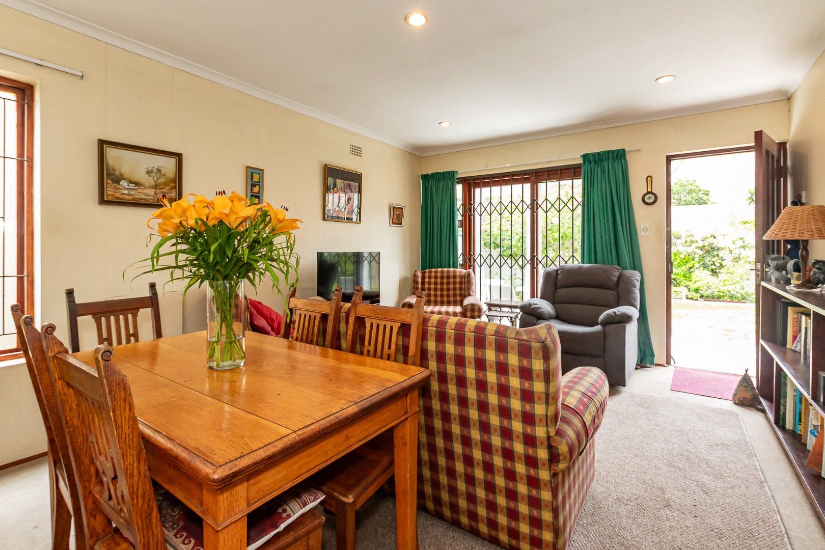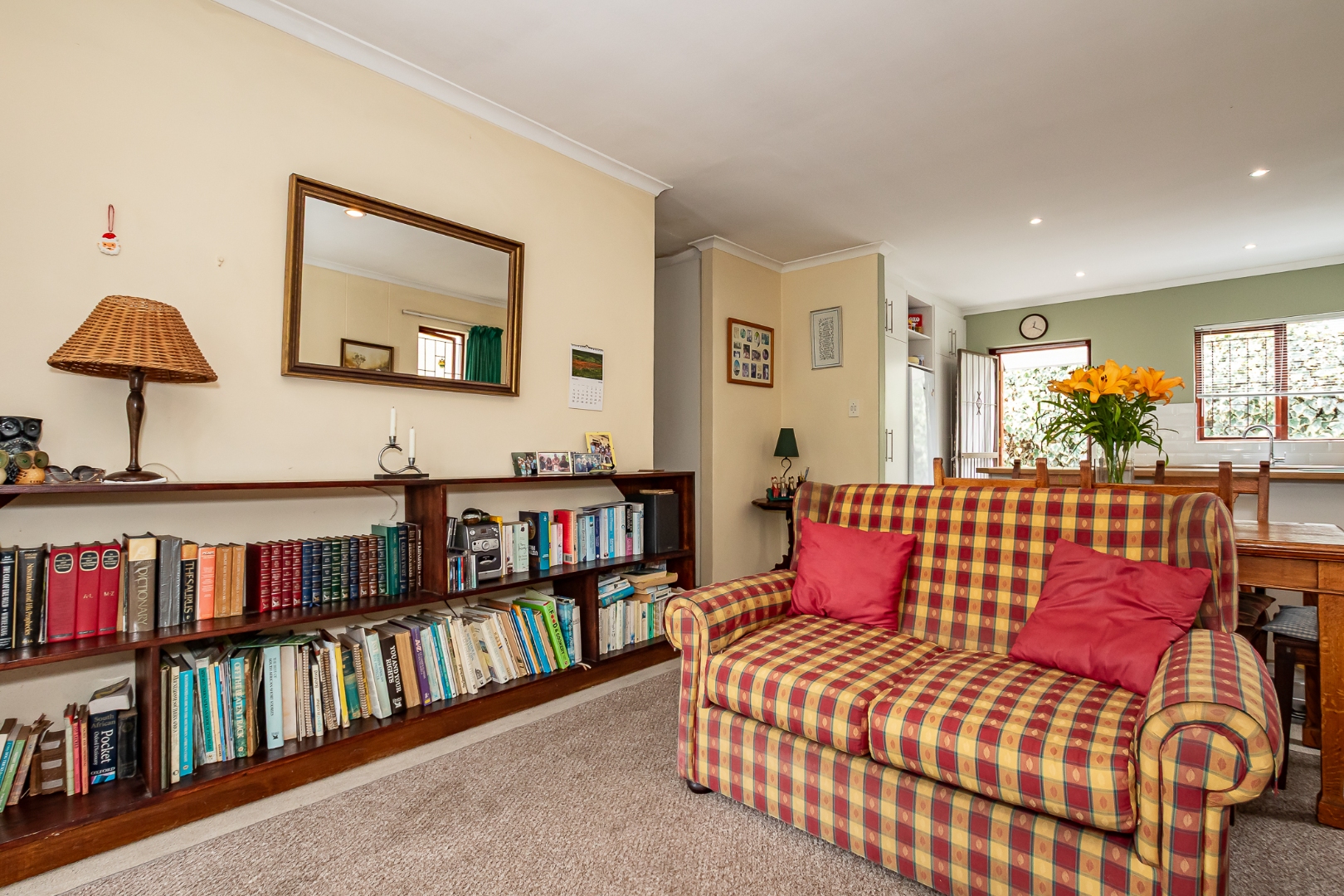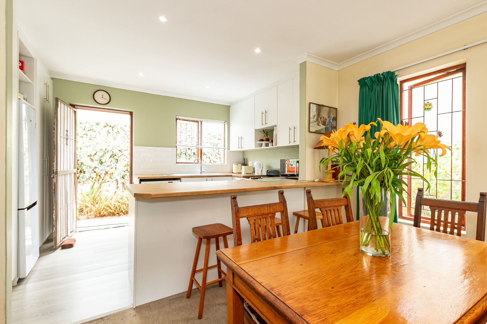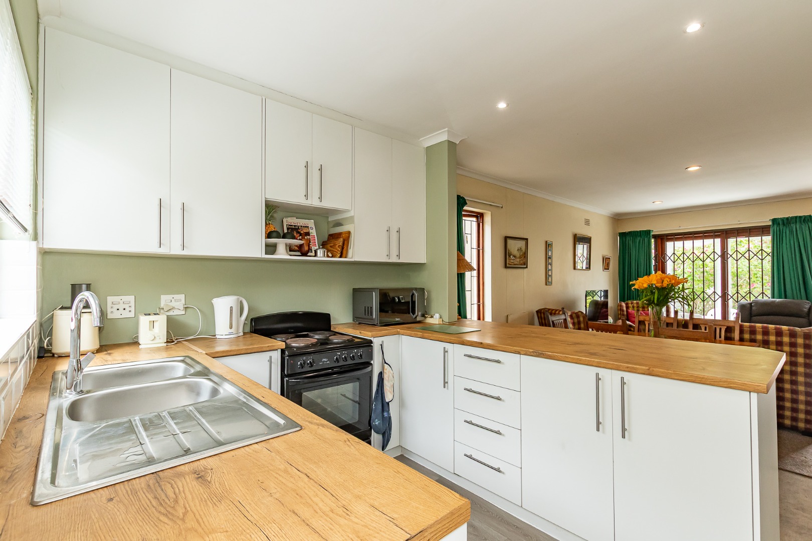 The property features three bedrooms, all with built-in cupboards and great natural light, along with two bathrooms. The updated kitchen includes a breakfast bar that overlooks a generous lounge, creating a welcoming hub for everyday living.