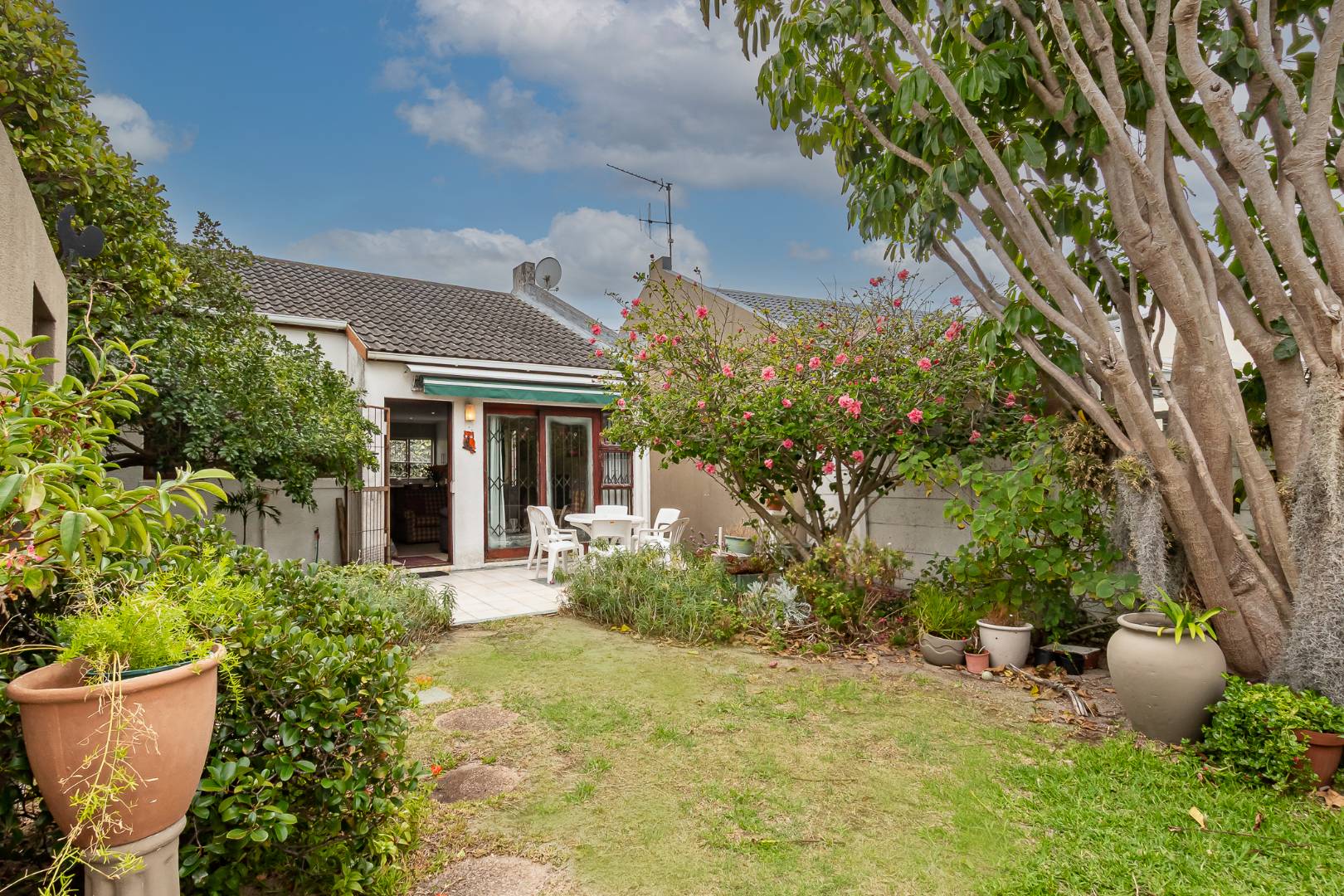 Step outside to a low-maintenance garden already in place, a single garage, and a front patio with a canopy that provides the perfect shaded spot to relax.