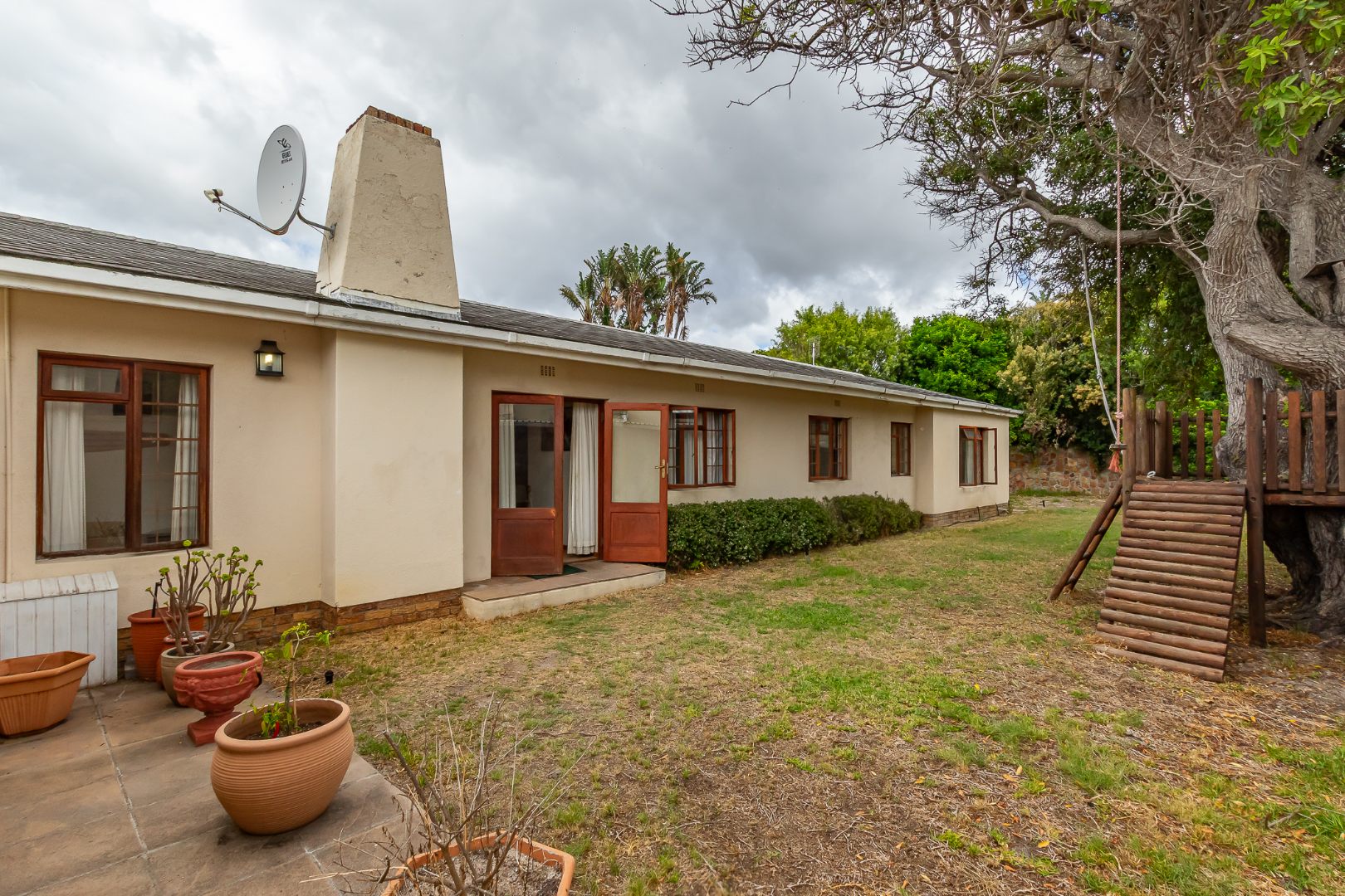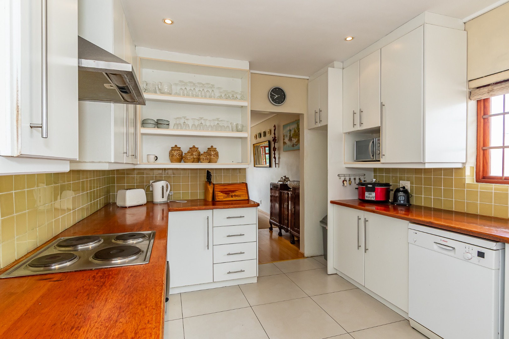 A light-filled kitchen with a washing nook leads outside, and the large dining room and TV lounge create comfortable living spaces.