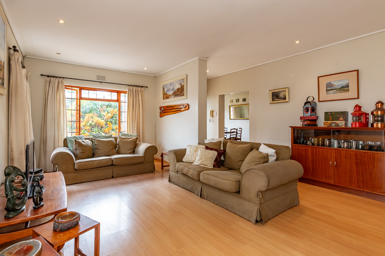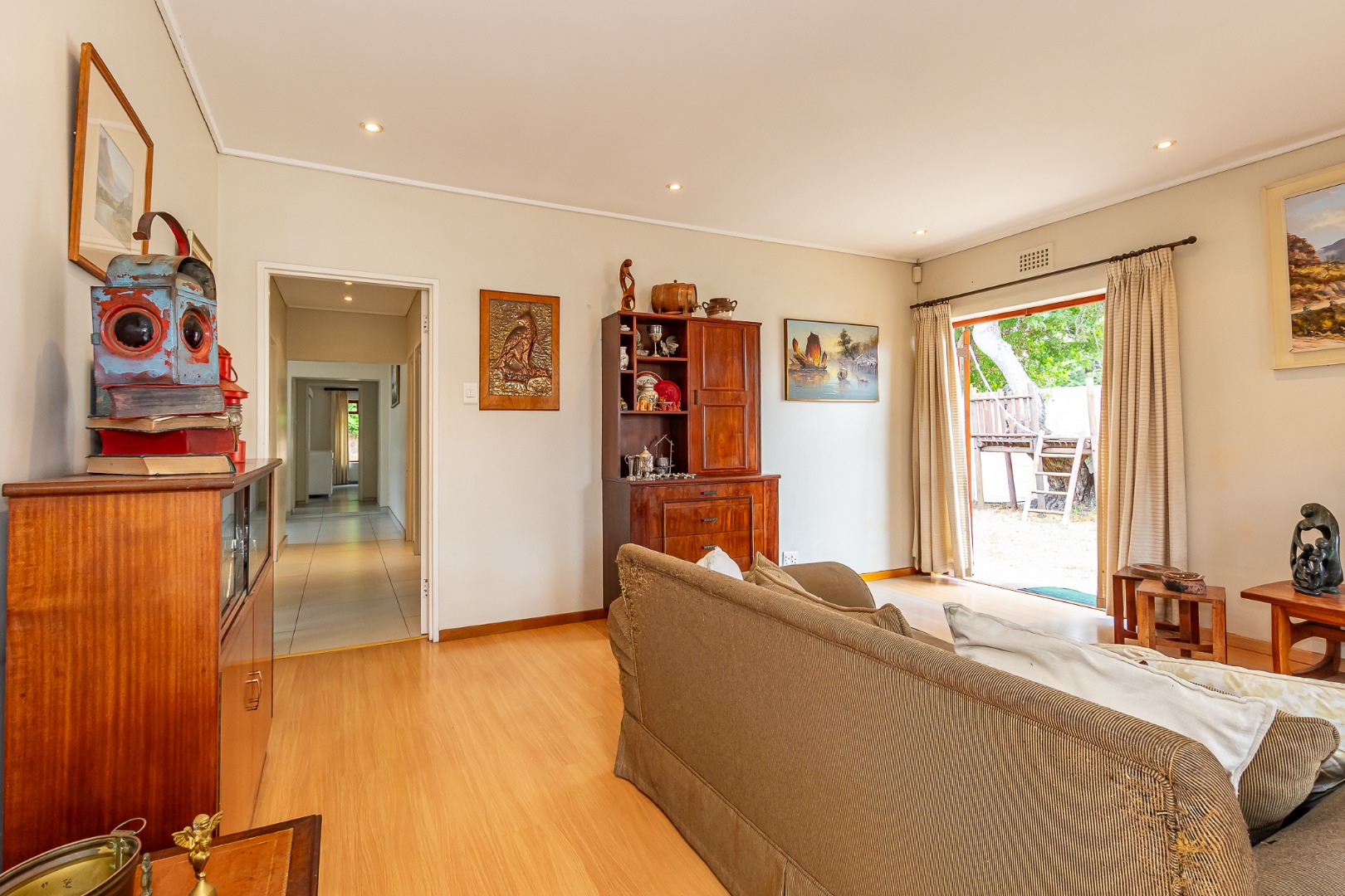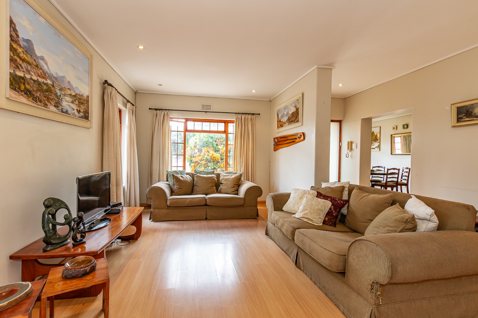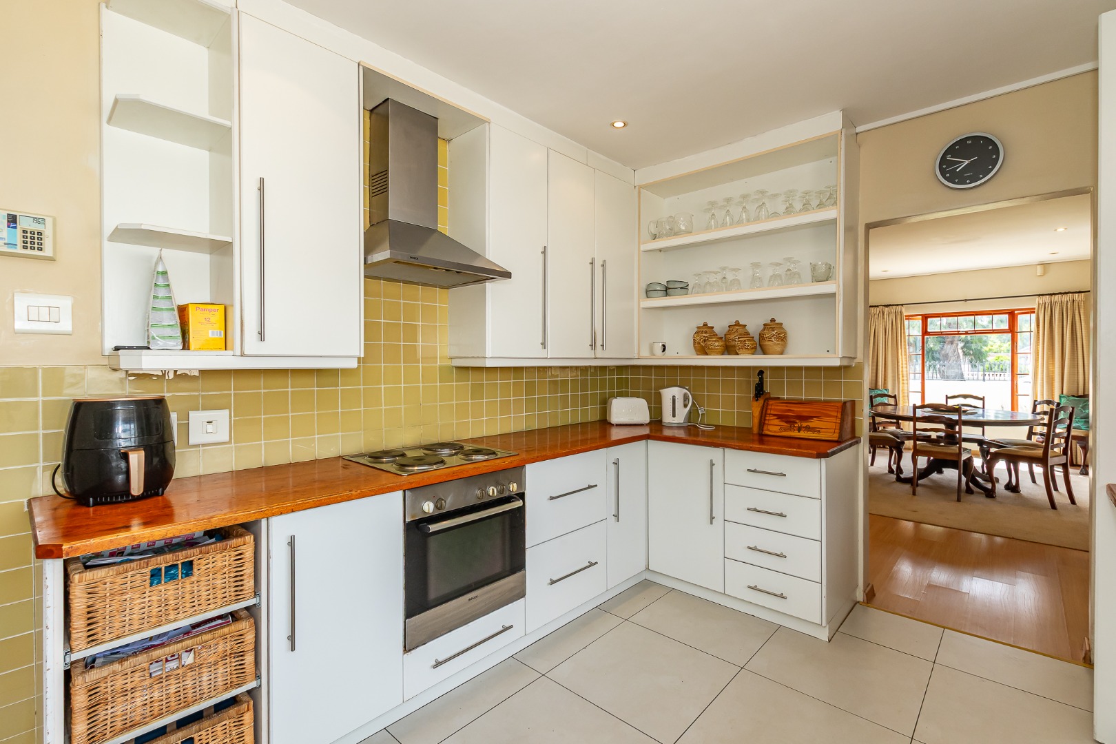 A light-filled kitchen with a washing nook leads outside, and the large dining room and TV lounge create comfortable living spaces.