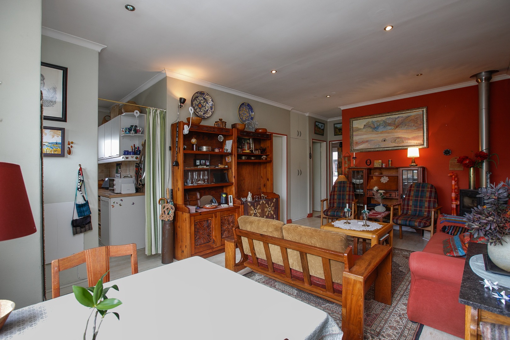 Inside, you'll find a cozy and inviting atmosphere. The open-plan lounge and dining area is perfect for relaxing, complete with a functional fireplace for those cooler evenings and recessed lighting for a warm glow. The kitchen, though traditional, is ready for your culinary adventures. With three comfy bedrooms and two bathrooms, there's plenty of space for everyone to feel at home in this property.