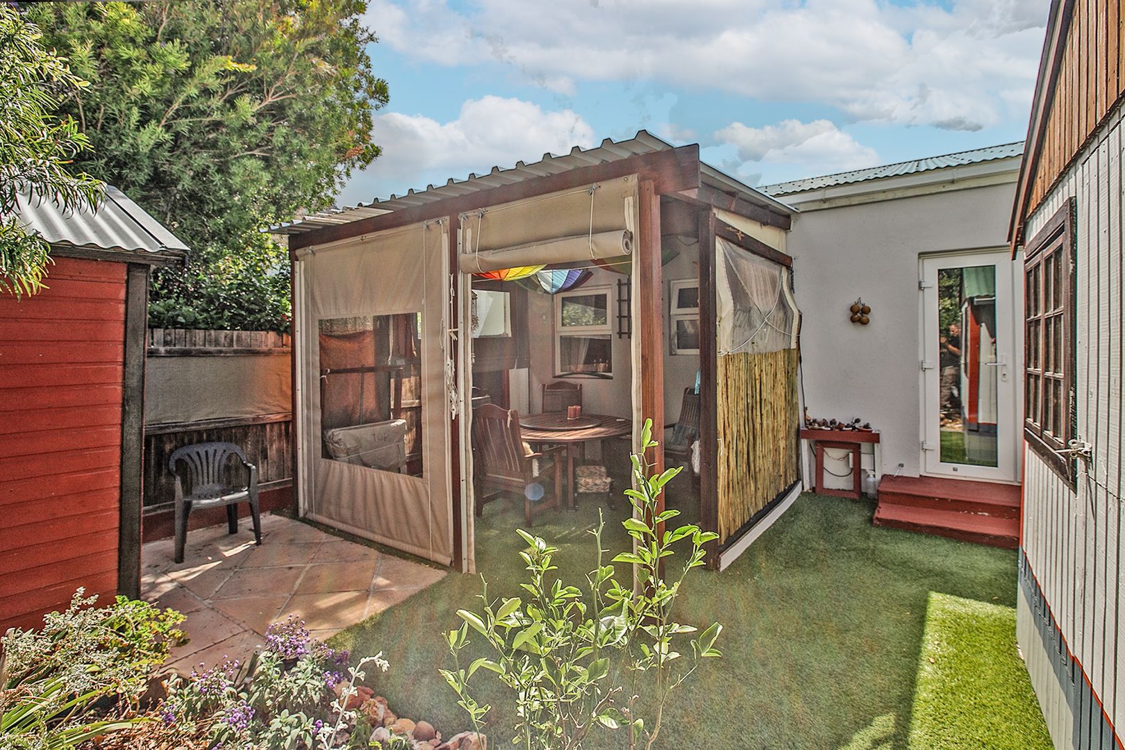 The outdoor spaces here are truly special. Imagine enjoying your morning coffee on the private, paved patio, surrounded by a beautiful potted plant garden and under a handy shade canopy. There's also a practical carport and a driveway for your vehicles, ensuring easy parking. Plus, your furry friends are welcome here, making it a true family home. You'll also find two Wendy houses and a water tank, adding to the convenience.