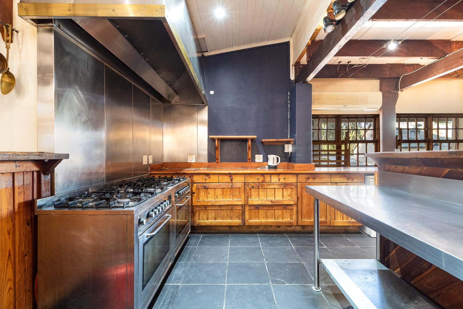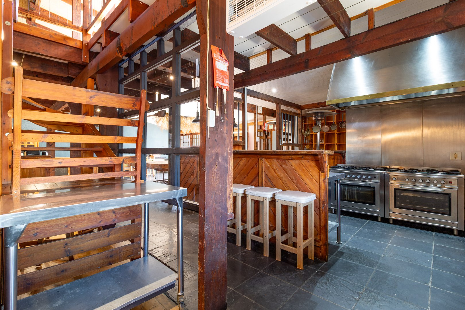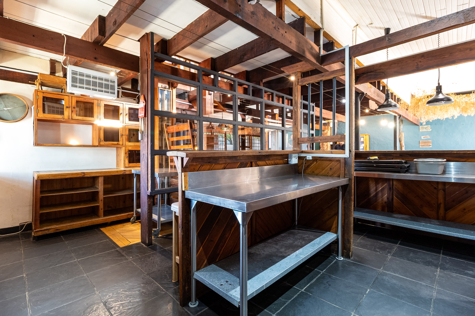 - Fully equipped commercial kitchen