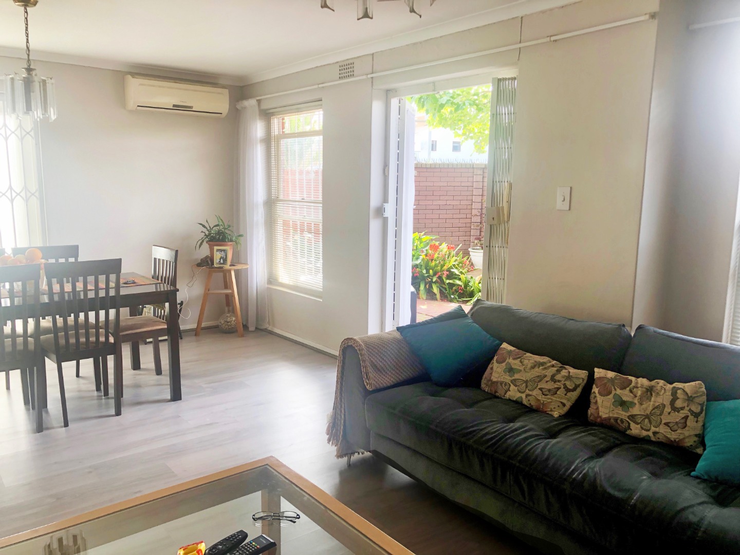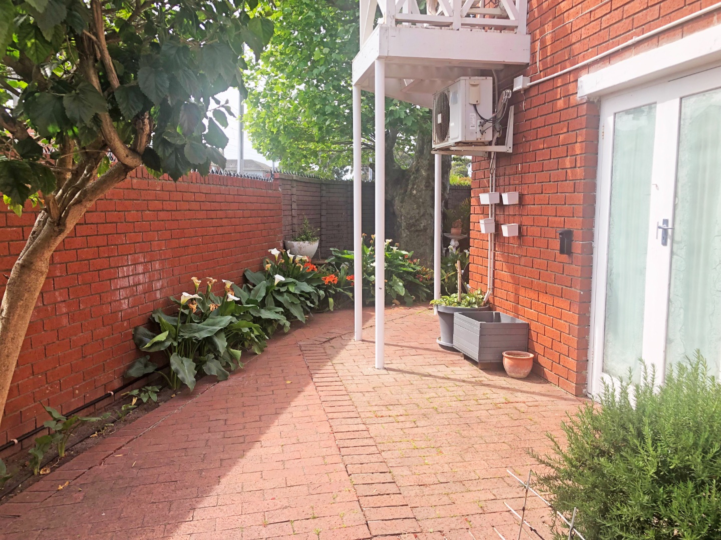 This is a rare opportunity to enjoy the security of a complex with the garden space of a "real house." At ground level are a courtyard, patio stoep-area roofed by the balcony, and open-plan downstairs lounge and dining living spaces, with kitchen and guest cloaks. Both the lounge and the dining areas have french doors that open to the garden. Then, accessible from the kitchen are a single garage and an ample adjoining carport.