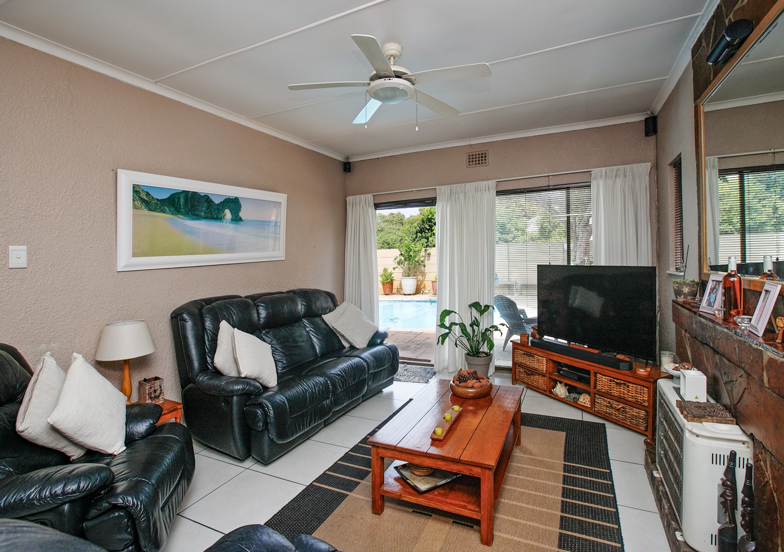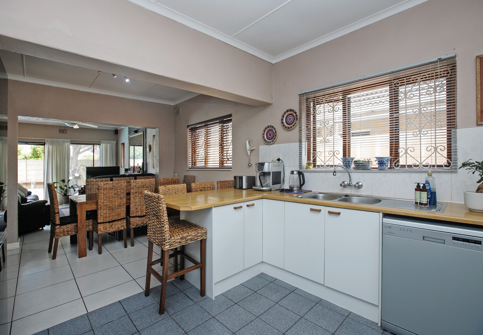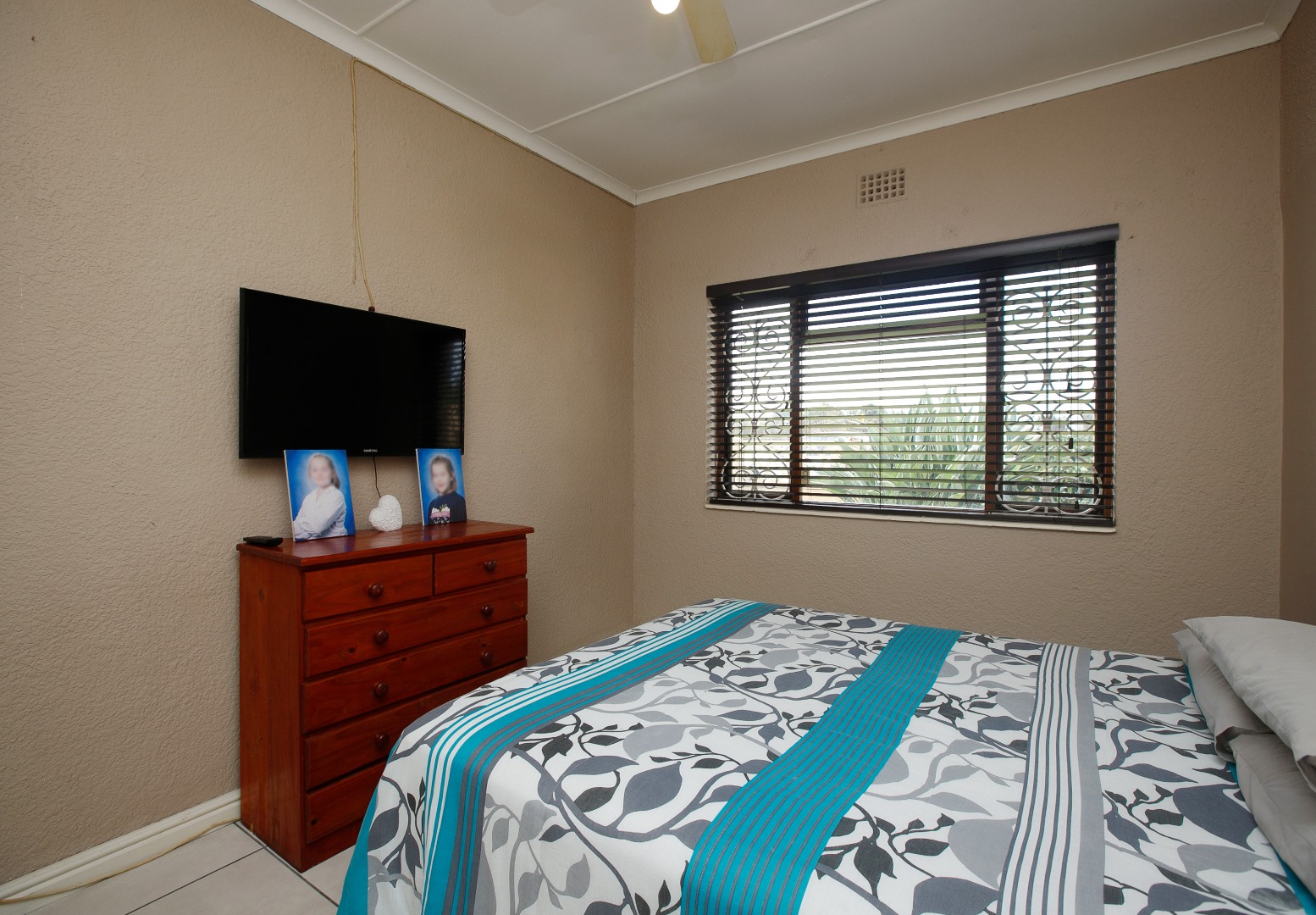 The home is tiled throughout and features three spacious bedrooms filled with natural light.
