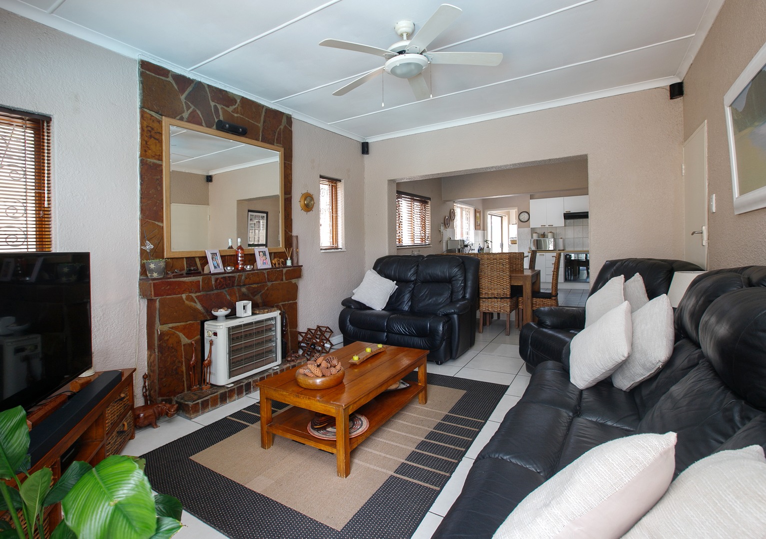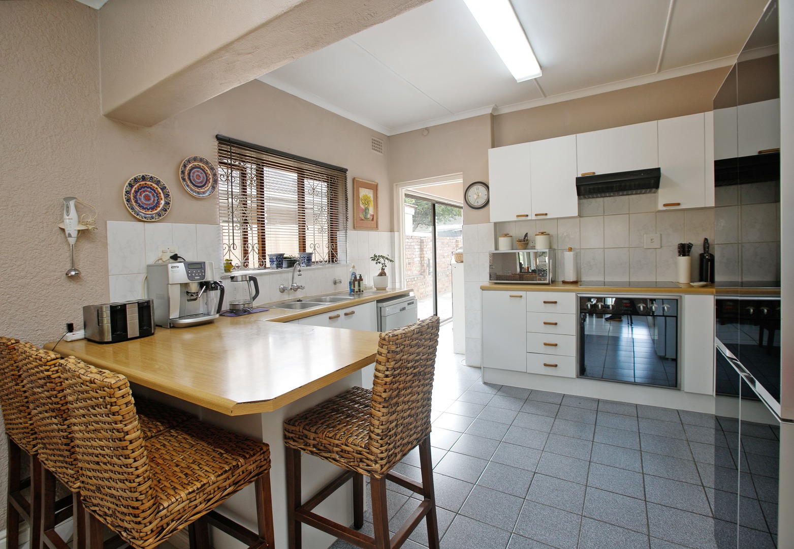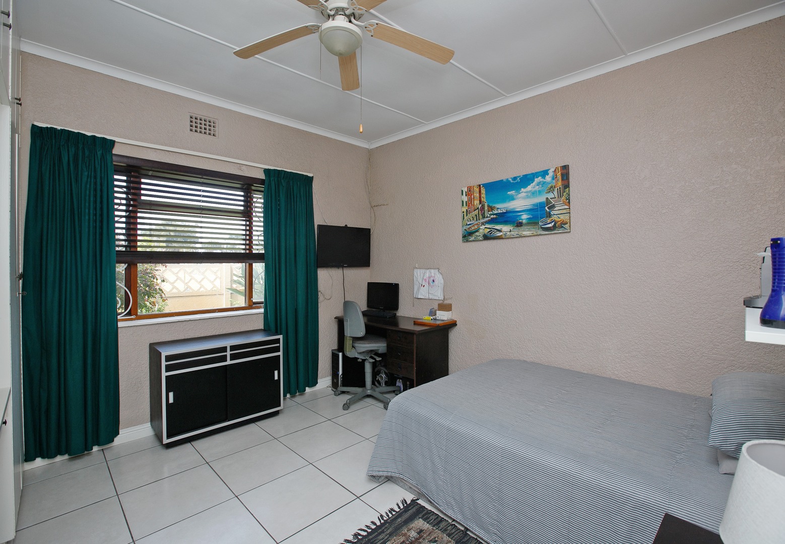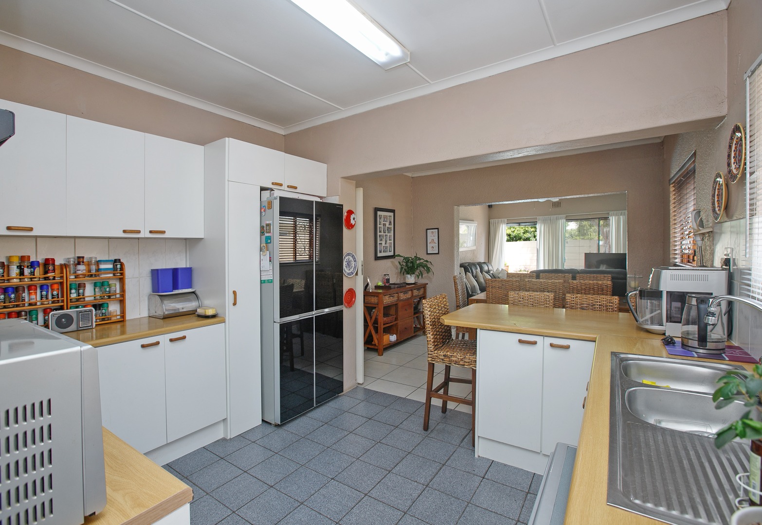 The home is tiled throughout and features three spacious bedrooms filled with natural light.