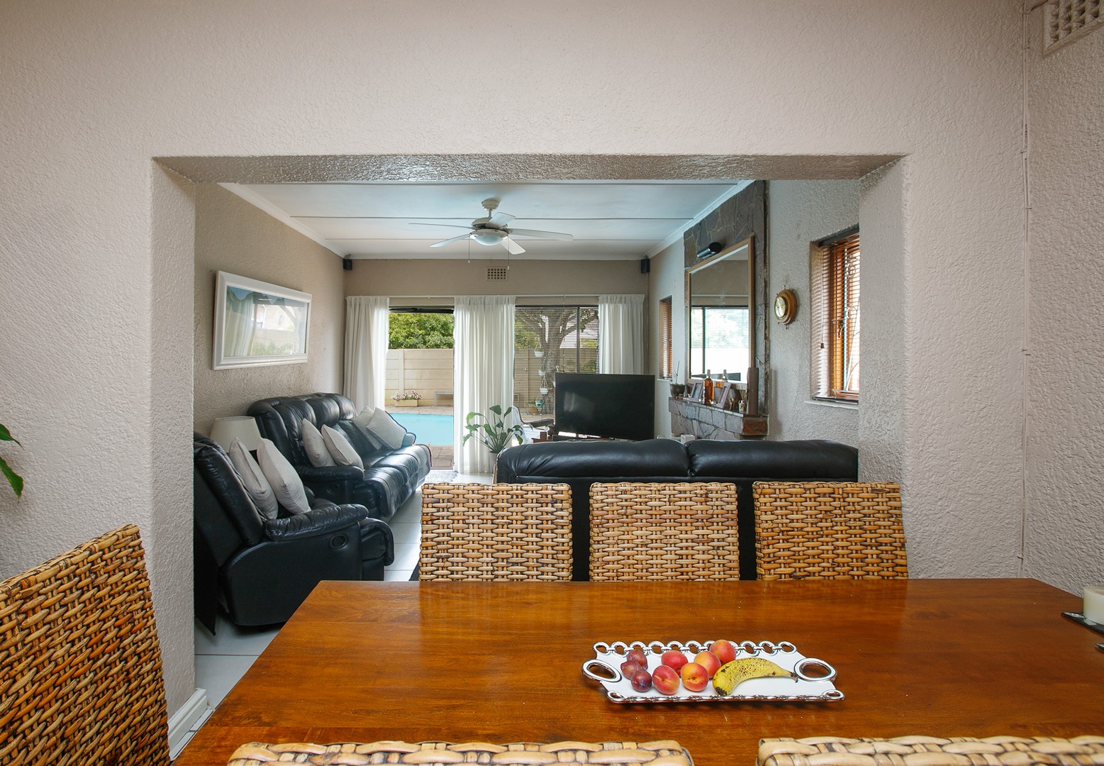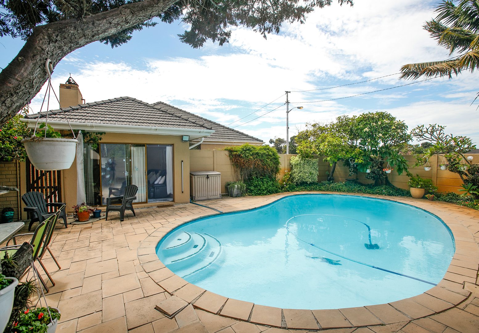 Outdoors, the property truly shines with a beautifully maintained, private garden, a large swimming pool, and an entertainment area with an outdoor braai — perfect for hosting family and friends.