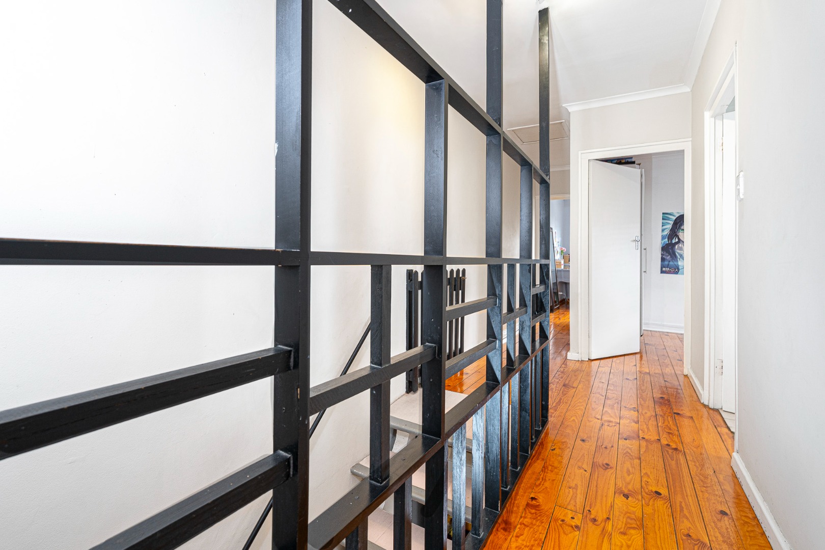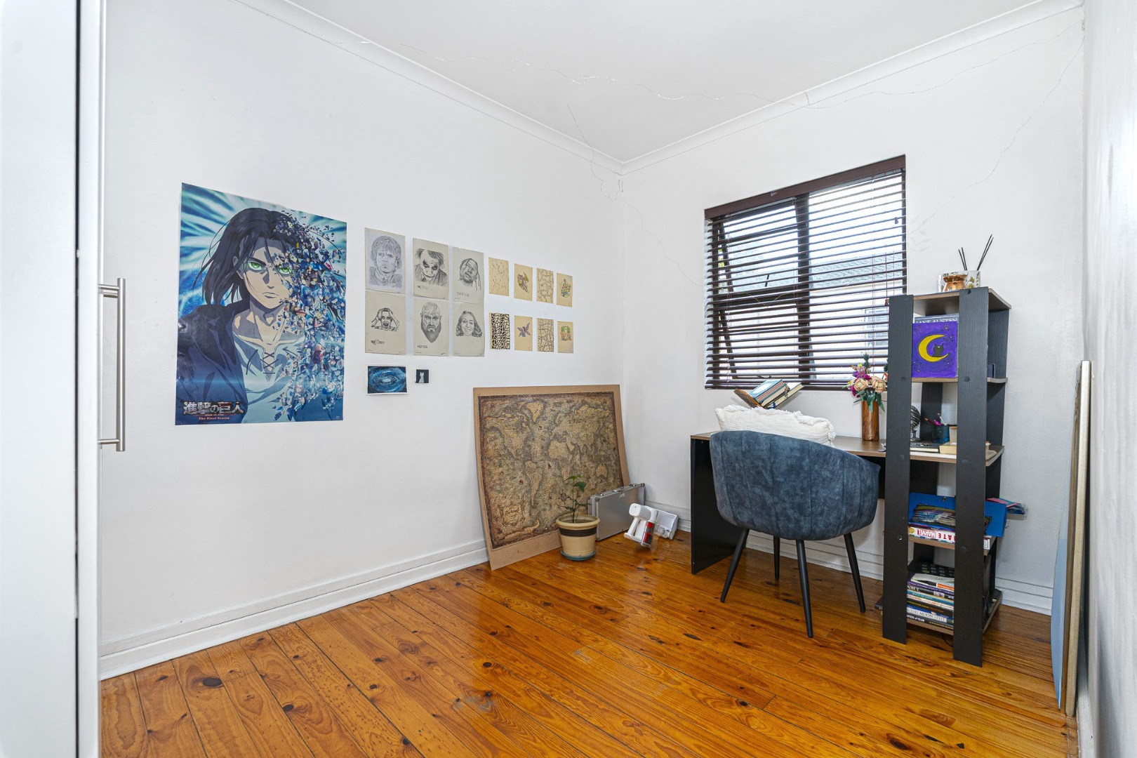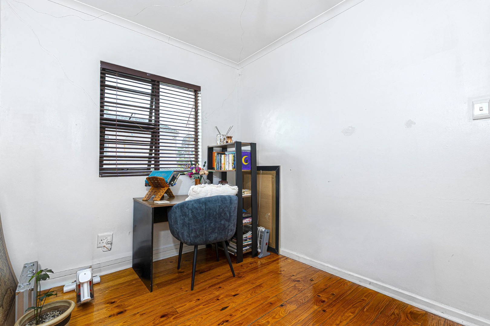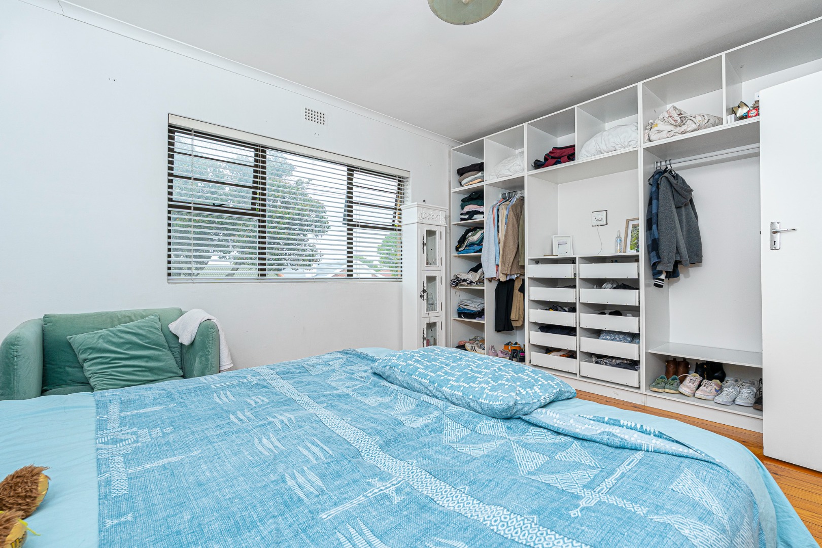 3 double size bedrooms, all fitted with built in cupboards, blinds, wooden floors and beautiful high ceilings and lovely view of the mountain. The main bedroom is en suite fitted with a shower and the spacious family bathroom offers a corner bath and a separate shower.
