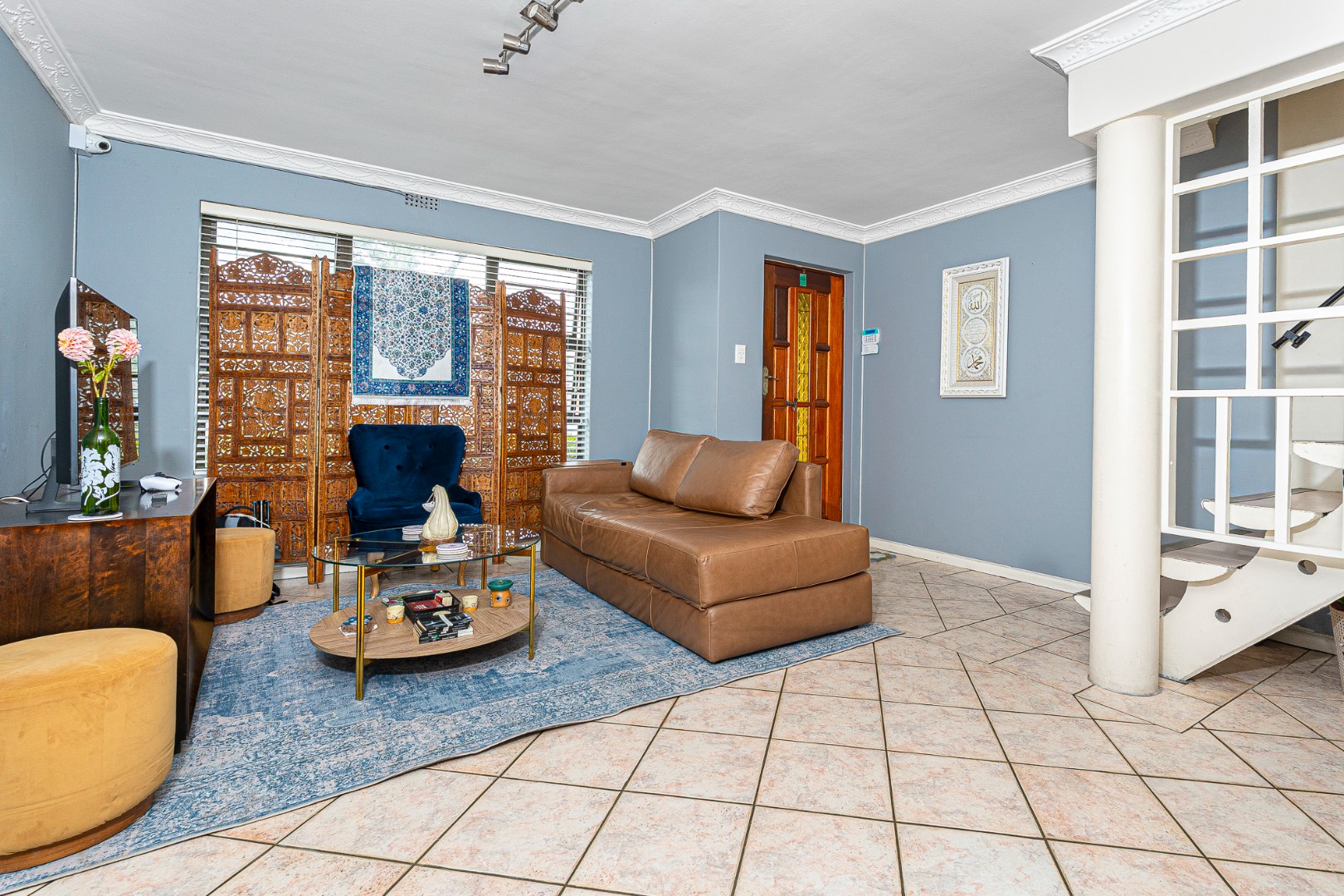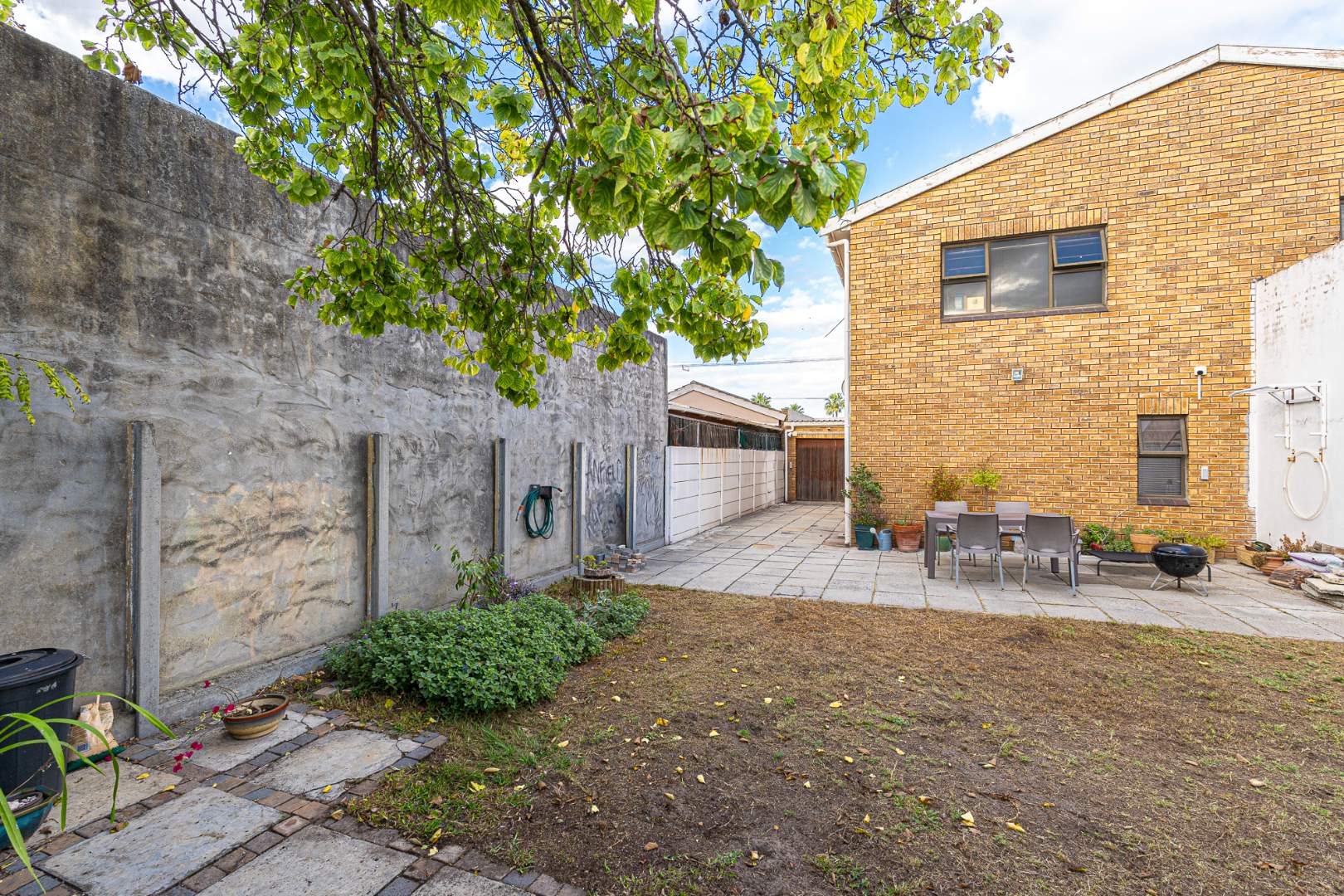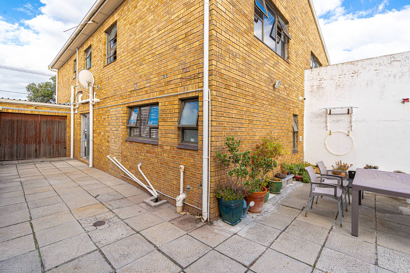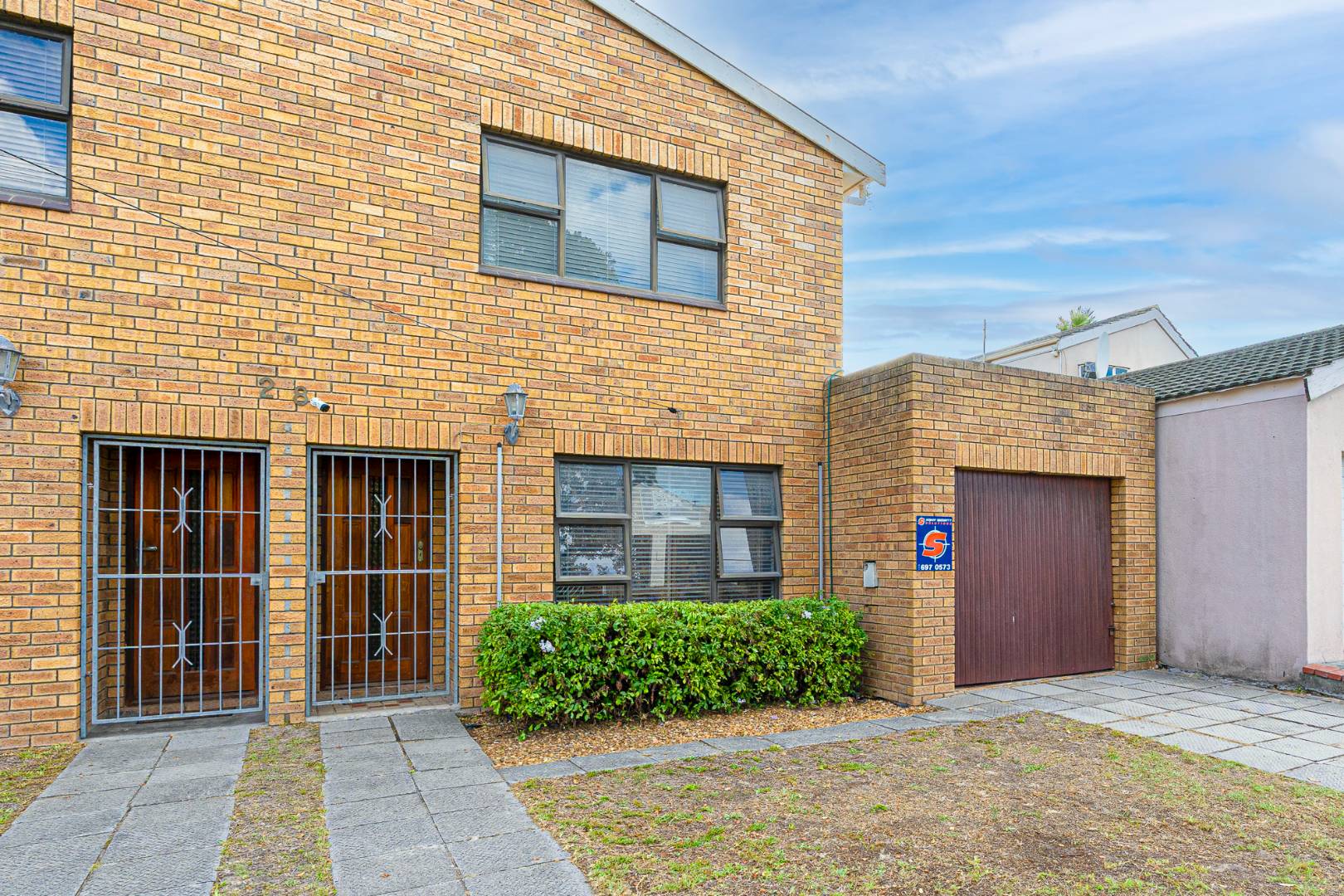 Outside areas in front are neat with aluminum windows all around. There is a single garage with additional secure parking.
