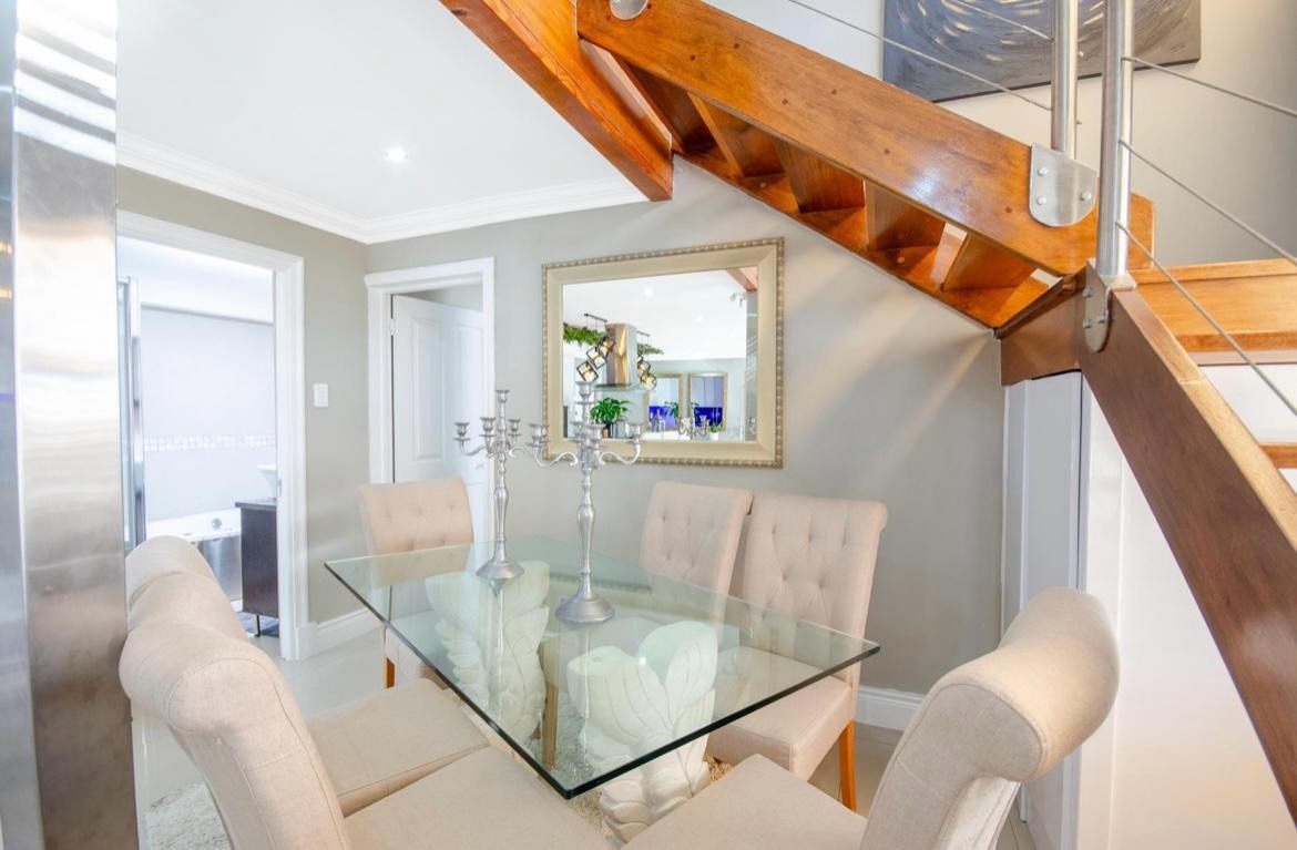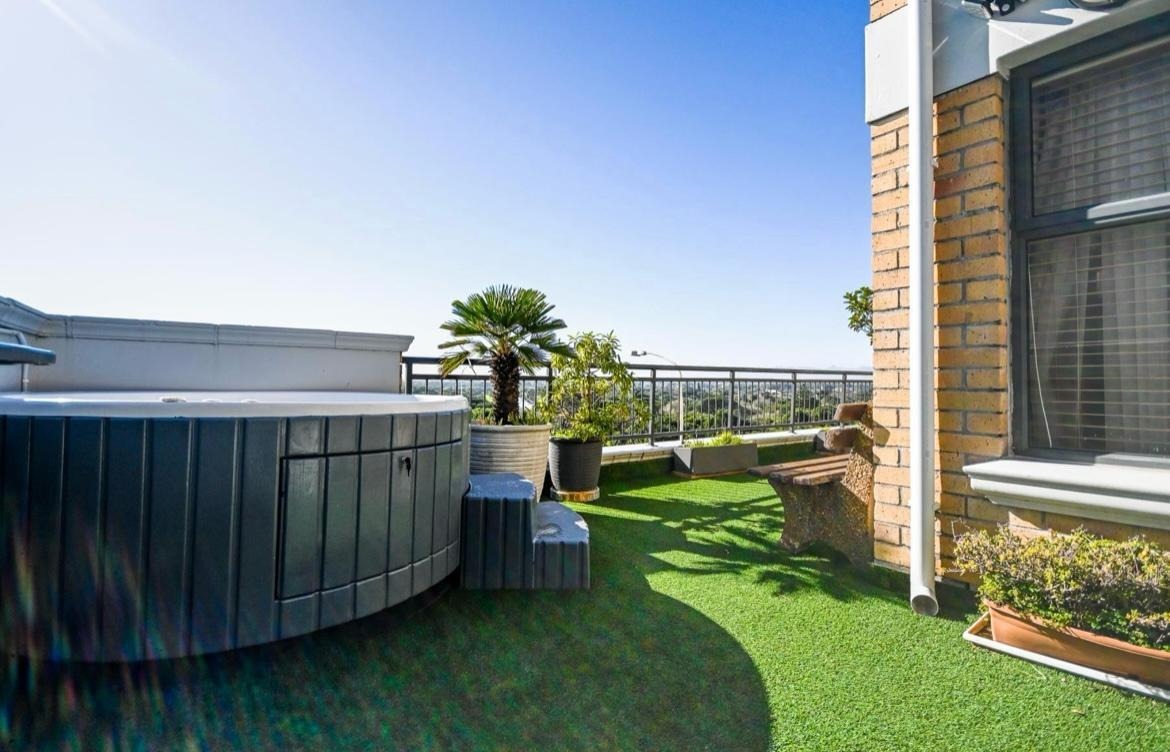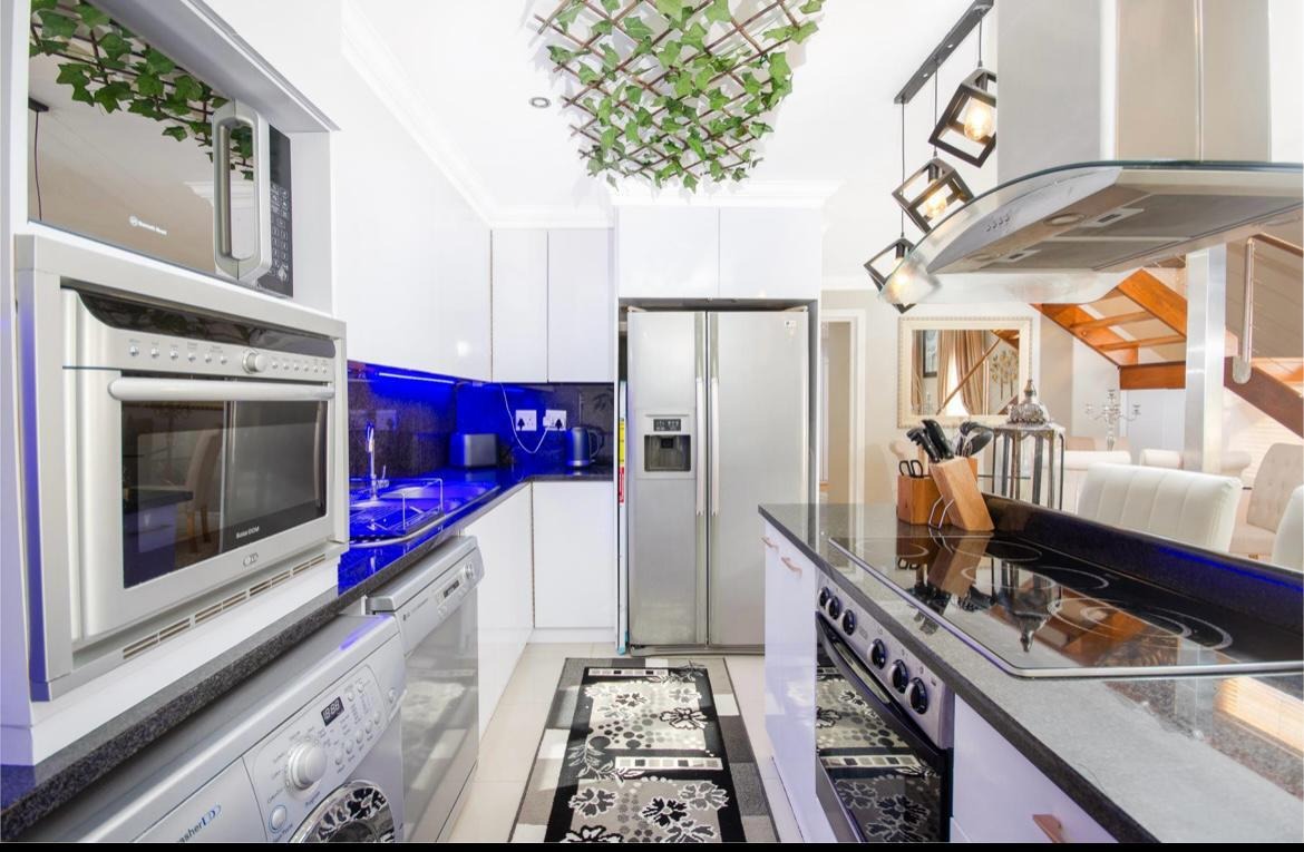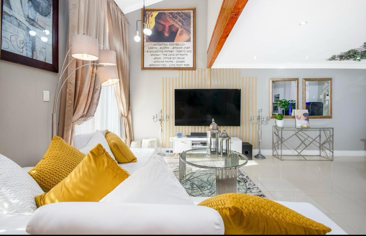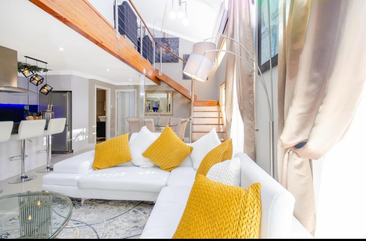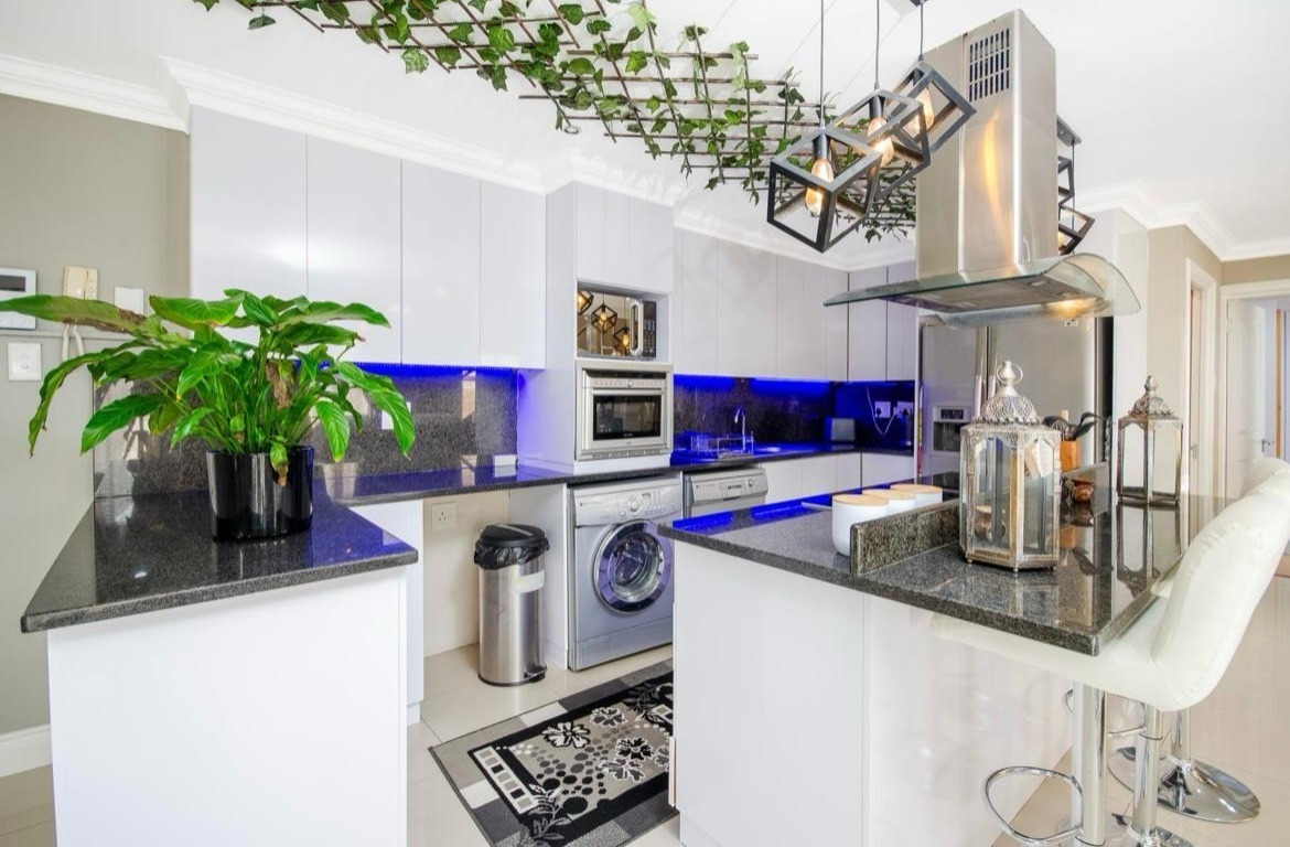 Discover an exquisite urban sanctuary in the heart of Rondebosch, Cape Town, where contemporary design meets unparalleled comfort. This meticulously crafted residence, spanning 146 square metres, offers a sophisticated lifestyle for the discerning homeowner. The property immediately captivates with its modern aesthetic and thoughtful layout, promising an elevated living experience. Step inside to a world of seamless open-plan living, where the lounge, dining area, and kitchen converge in a harmonious flow. High ceilings, adorned with an exposed wooden beam, enhance the sense of space, while large windows invite abundant natural light. The state-of-the-art kitchen is a culinary dream, featuring sleek white cabinetry, dark granite countertops, integrated stainless steel appliances including an oven, microwave, and a large refrigerator, complemented by unique blue LED under-cabinet lighting. A stylish contemporary staircase serves as a striking architectural feature, connecting the levels with elegance. This luxurious abode boasts three generously proportioned bedrooms, each designed for ultimate relaxation. With four bathrooms, including three opulent ensuites, privacy and convenience are paramount. Every detail has been considered to provide a serene retreat, ensuring comfort and style throughout. Embrace the vibrant Cape Town lifestyle with an expansive outdoor balcony, a true highlight of this residence. Adorned with low-maintenance artificial turf and ample space for outdoor seating, it offers breathtaking panoramic views of the surrounding landscape. Imagine unwinding in your private jacuzzi, soaking in the vistas after a long day. For peace of mind, the property benefits from 24-hour security and an intercom system. Nestled in the desirable suburb of Rondebosch, this home provides convenient access to the best of Cape Town. It is a furnished offering, ready for immediate occupancy, presenting a rare opportunity for sophisticated urban living. This property truly embodies modern luxury, combining elegant interiors with exceptional outdoor amenities in a prime location.