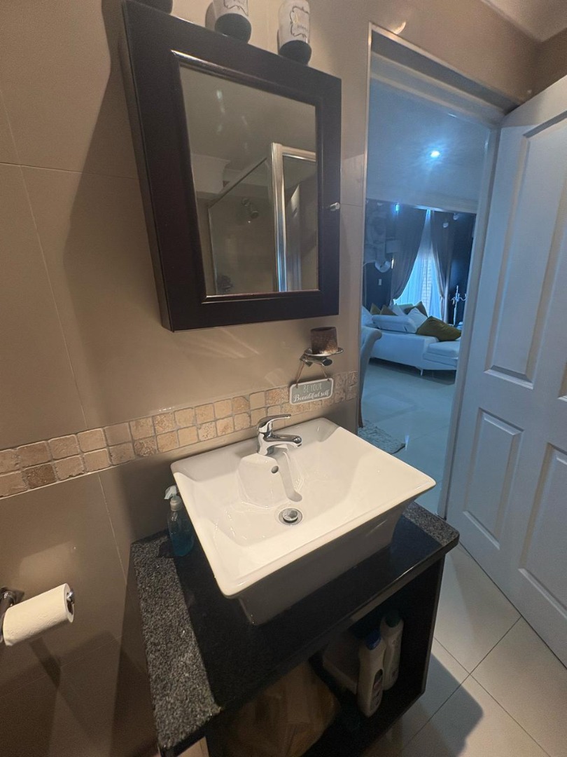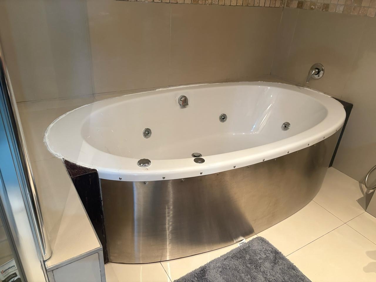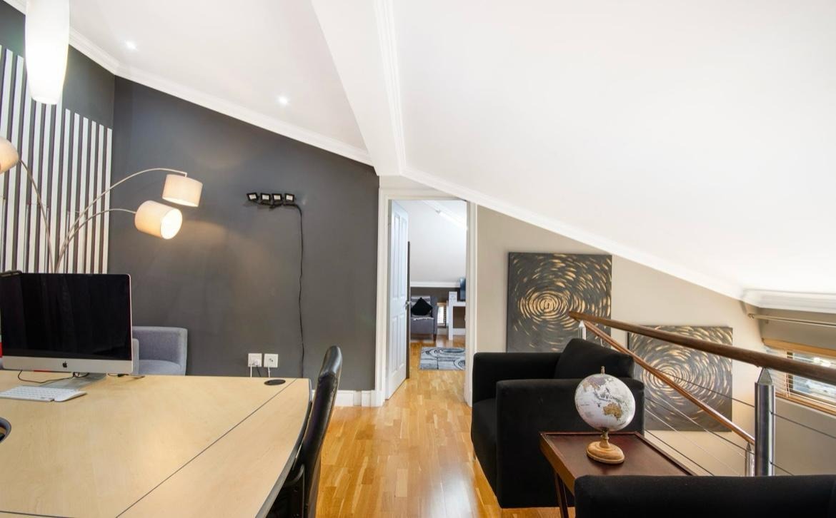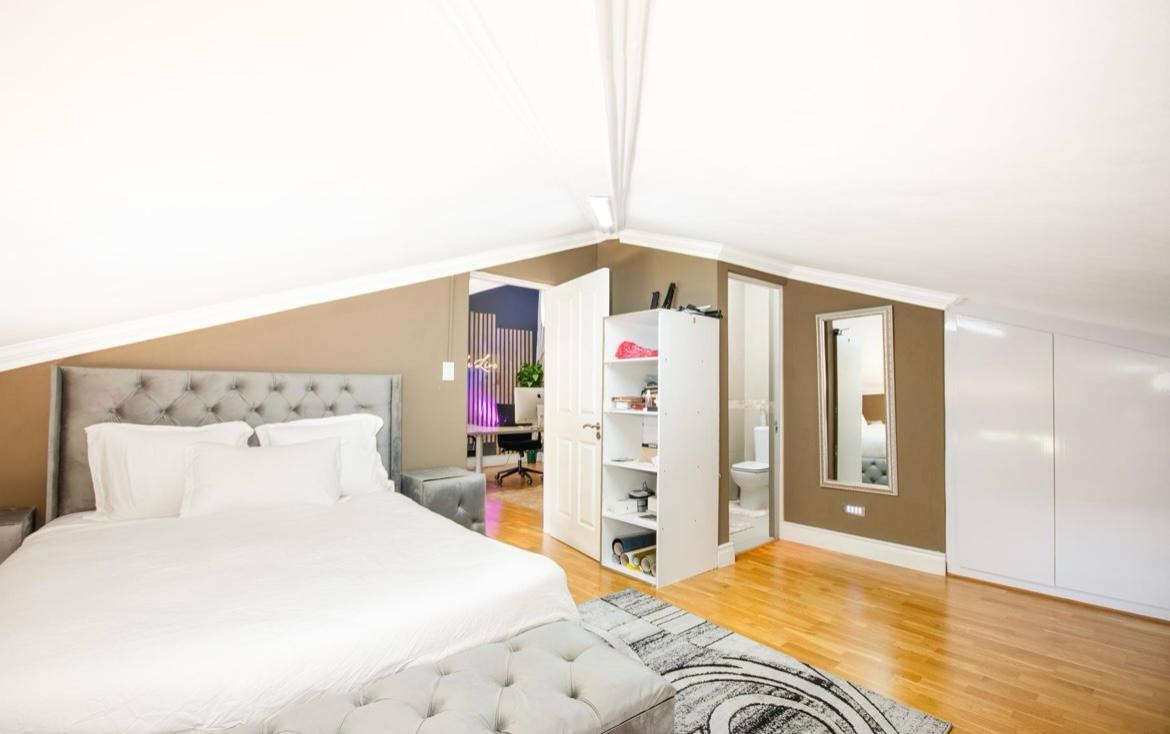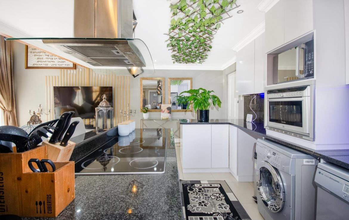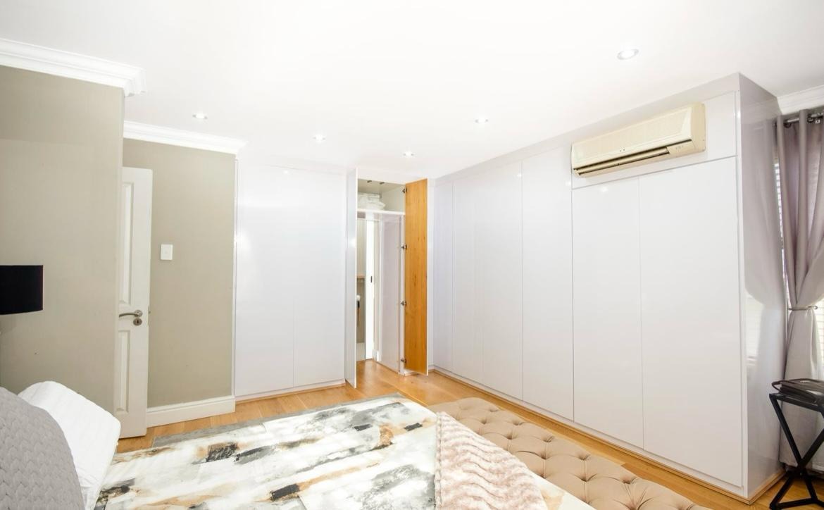 Discover an exquisite urban sanctuary in the heart of Rondebosch, Cape Town, where contemporary design meets unparalleled comfort. This meticulously crafted residence, spanning 146 square metres, offers a sophisticated lifestyle for the discerning homeowner. The property immediately captivates with its modern aesthetic and thoughtful layout, promising an elevated living experience. Step inside to a world of seamless open-plan living, where the lounge, dining area, and kitchen converge in a harmonious flow. High ceilings, adorned with an exposed wooden beam, enhance the sense of space, while large windows invite abundant natural light. The state-of-the-art kitchen is a culinary dream, featuring sleek white cabinetry, dark granite countertops, integrated stainless steel appliances including an oven, microwave, and a large refrigerator, complemented by unique blue LED under-cabinet lighting. A stylish contemporary staircase serves as a striking architectural feature, connecting the levels with elegance. This luxurious abode boasts three generously proportioned bedrooms, each designed for ultimate relaxation. With four bathrooms, including three opulent ensuites, privacy and convenience are paramount. Every detail has been considered to provide a serene retreat, ensuring comfort and style throughout. Embrace the vibrant Cape Town lifestyle with an expansive outdoor balcony, a true highlight of this residence. Adorned with low-maintenance artificial turf and ample space for outdoor seating, it offers breathtaking panoramic views of the surrounding landscape. Imagine unwinding in your private jacuzzi, soaking in the vistas after a long day. For peace of mind, the property benefits from 24-hour security and an intercom system. Nestled in the desirable suburb of Rondebosch, this home provides convenient access to the best of Cape Town. It is a furnished offering, ready for immediate occupancy, presenting a rare opportunity for sophisticated urban living. This property truly embodies modern luxury, combining elegant interiors with exceptional outdoor amenities in a prime location.