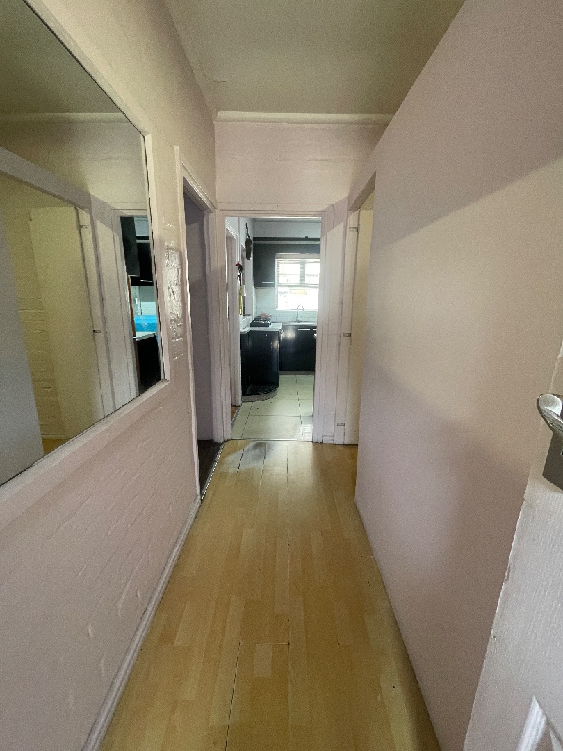 The property features a fitted kitchen with ample storage and a neatly tiled bathroom. Both bedrooms are generously sized, with laminate flooring in one bedroom and tiled flooring in the other. The living spaces are practical and easy to maintain.