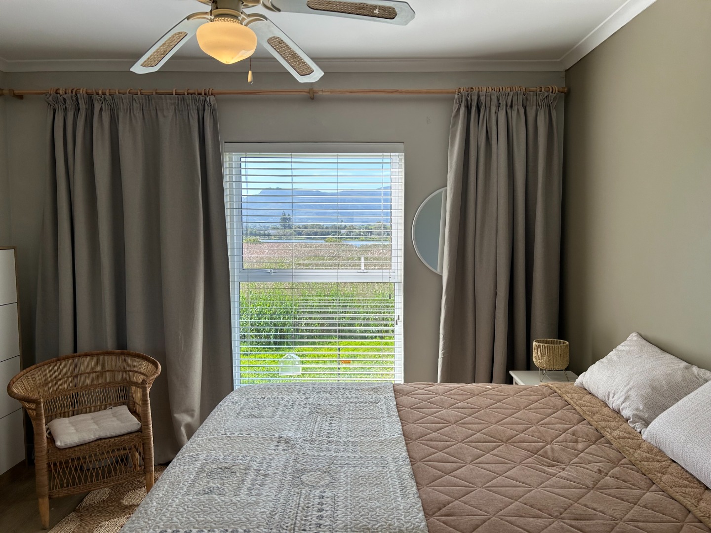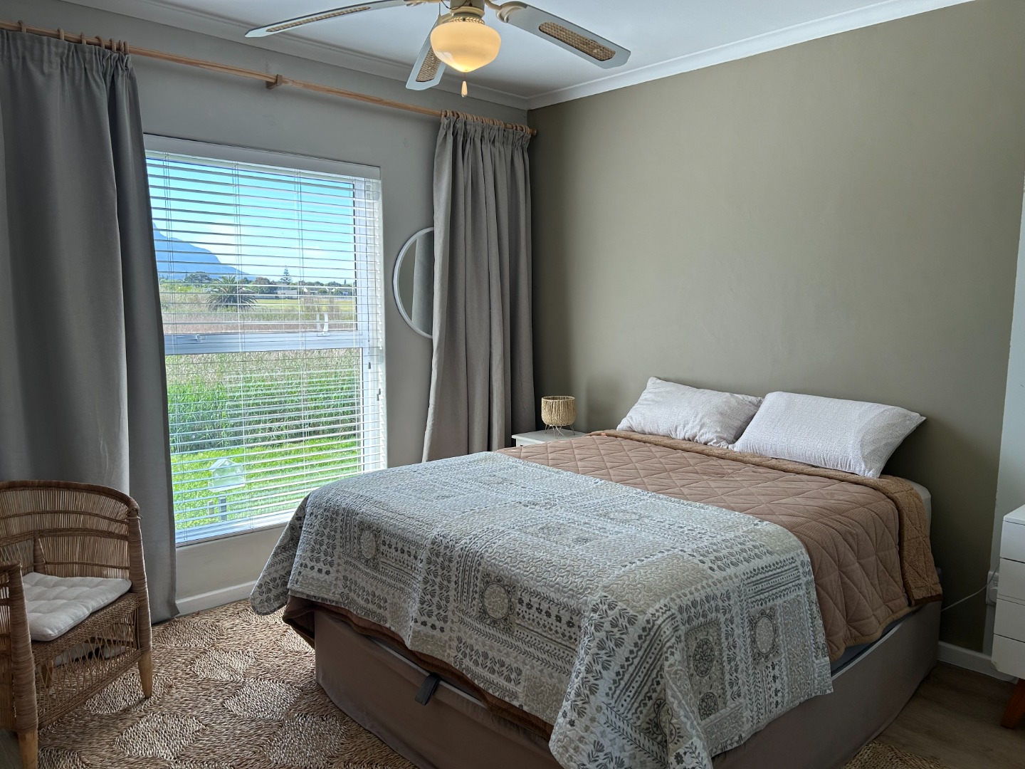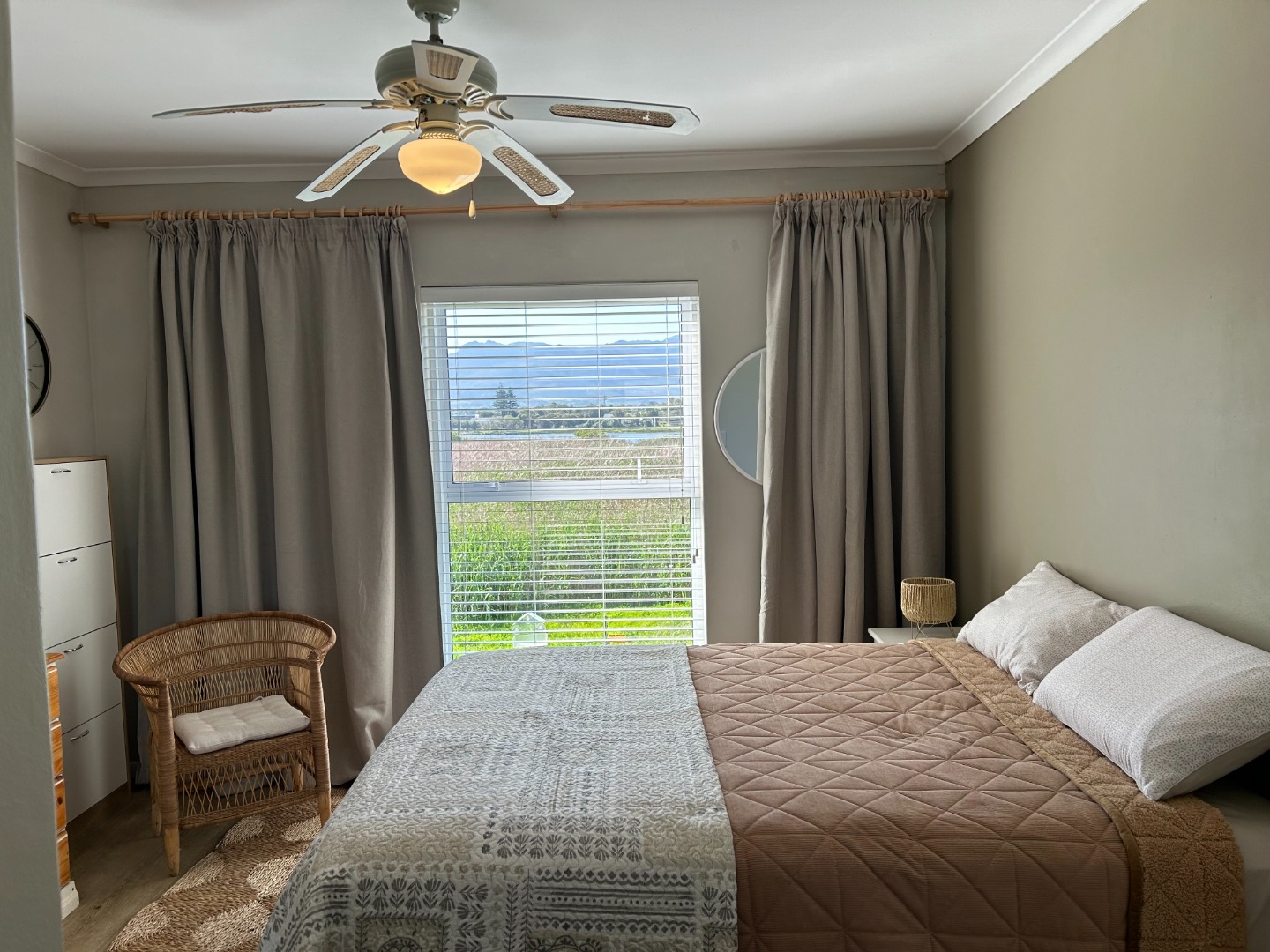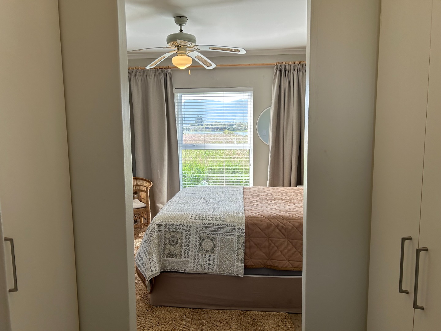 This distinguished residence, nestled within a secure, gated complex in Tokai, Cape Town, presents an inviting exterior with a white security gate and modern entrance. The interior immediately impresses with a bright, open-plan living area, featuring expansive windows and glass double doors that capture breathtaking panoramic views of mountains and natural landscapes. Modern vinyl flooring and a ceiling fans enhance comfort, with direct balcony access. The functional kitchen is meticulously appointed with light wood-look countertops, white cabinetry, and modern stainless steel appliances, including an integrated oven, stovetop, and double sink, plumbed for washing machine and dishwasher.