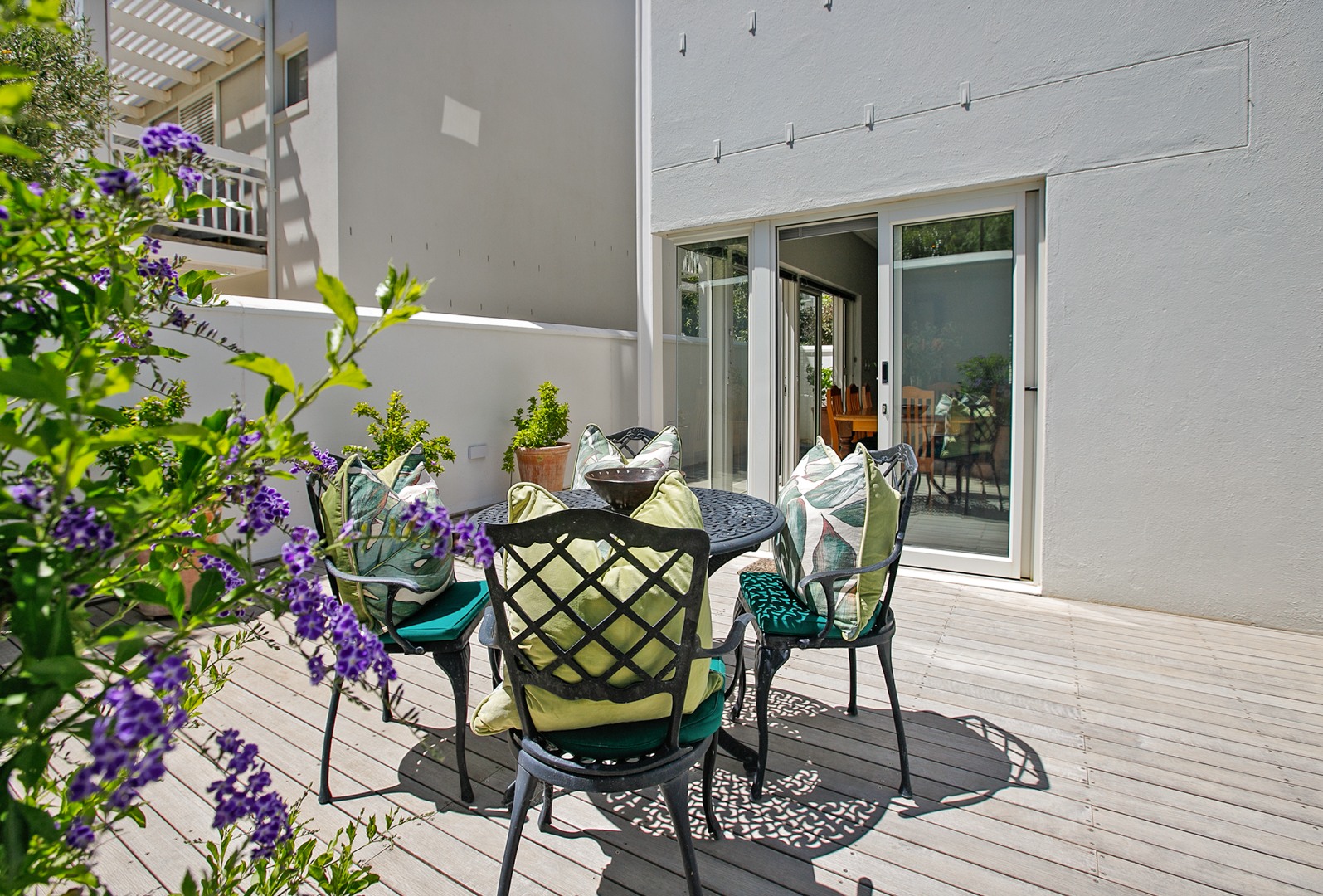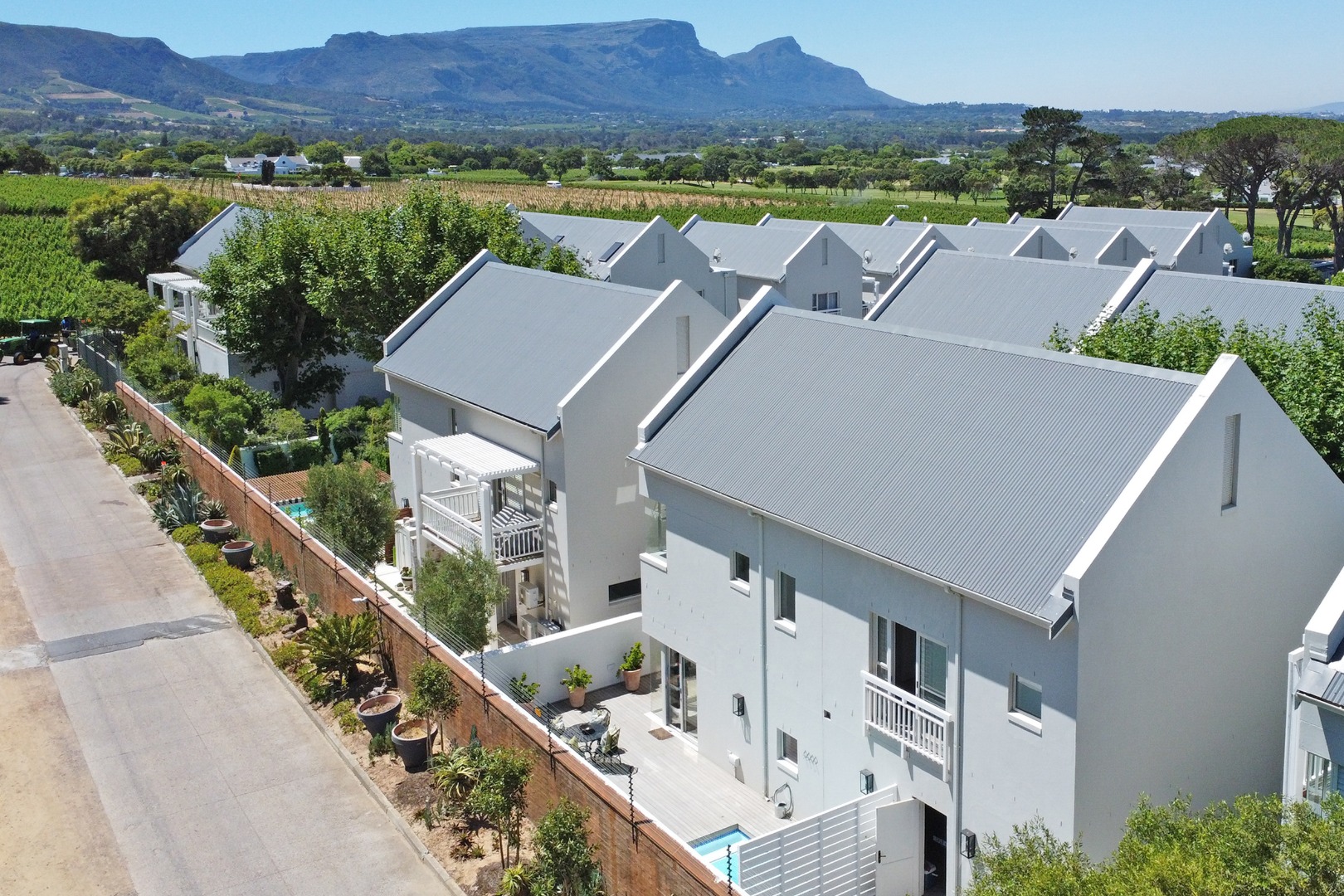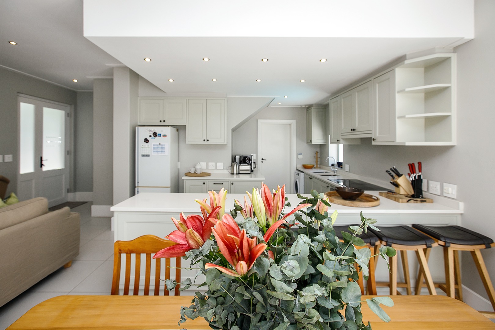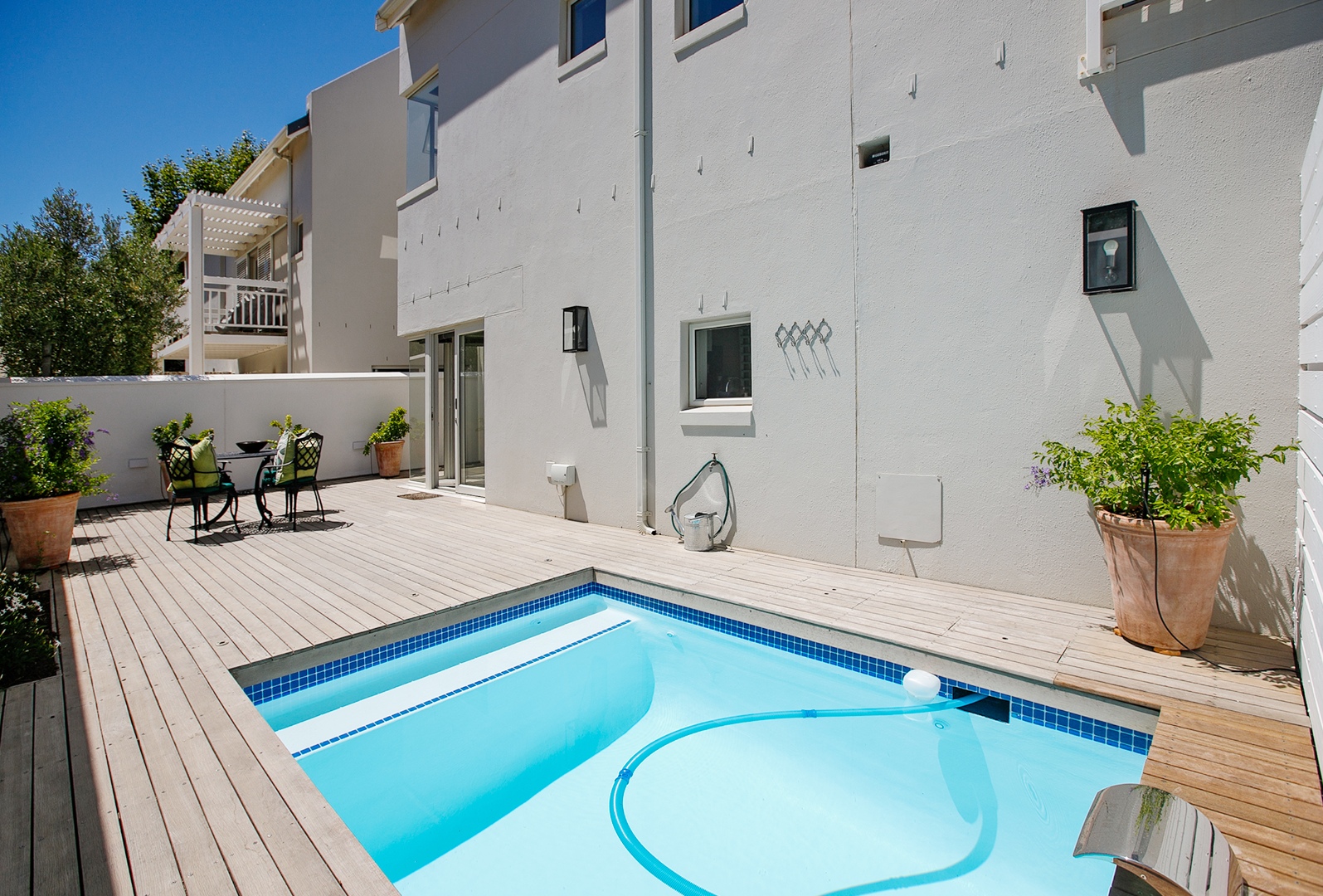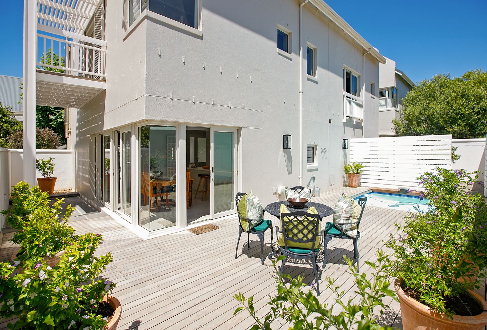 This beautifully designed residence presents the perfect opportunity for sophisticated living within a highly sought-after security estate in Tokai, adjacent to Steenberg Golf Estate. The property's modern, multi-story exterior, characterised by clean lines and light-toned finishes, is complemented by attractive landscaping, creating an inviting kerb appeal.