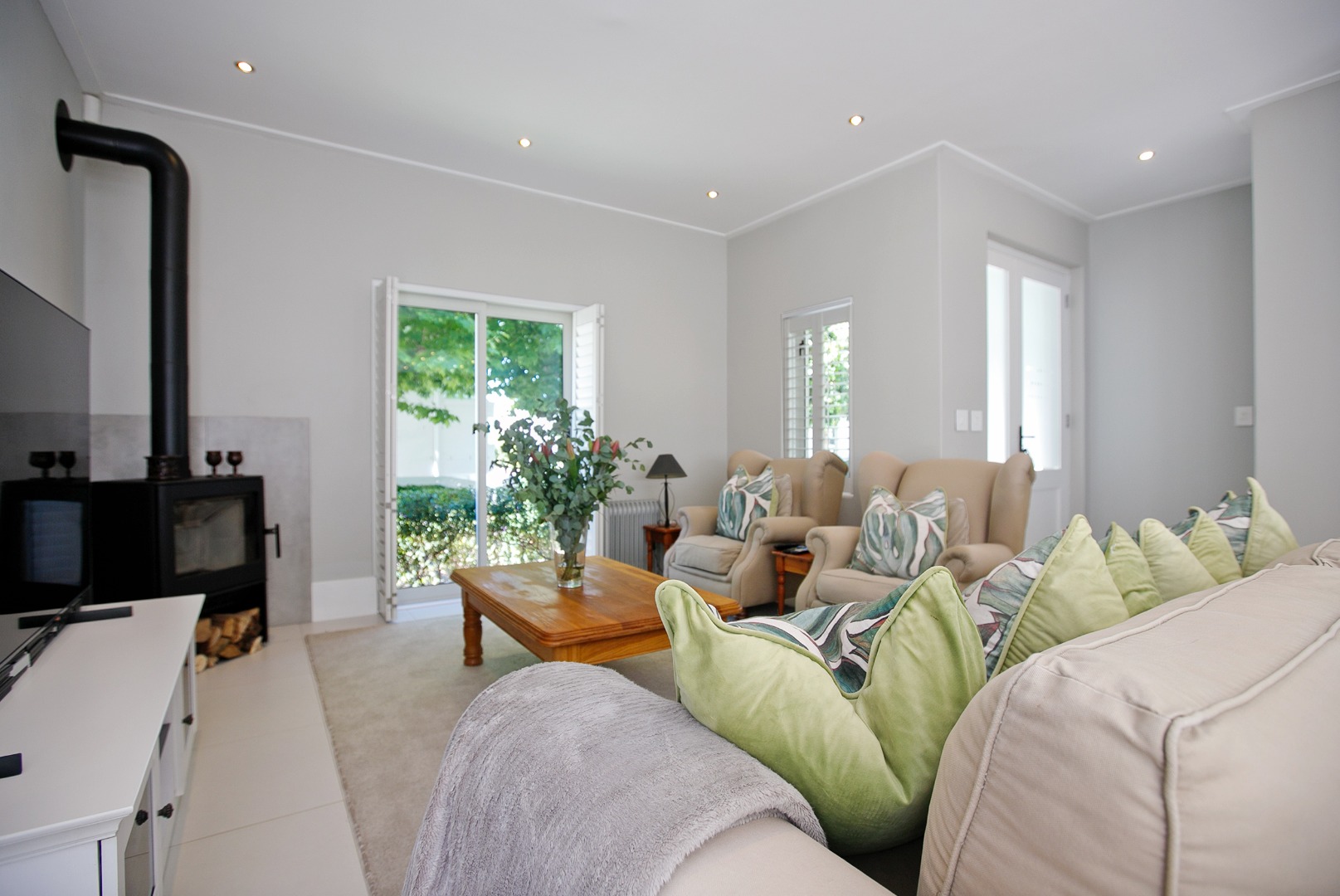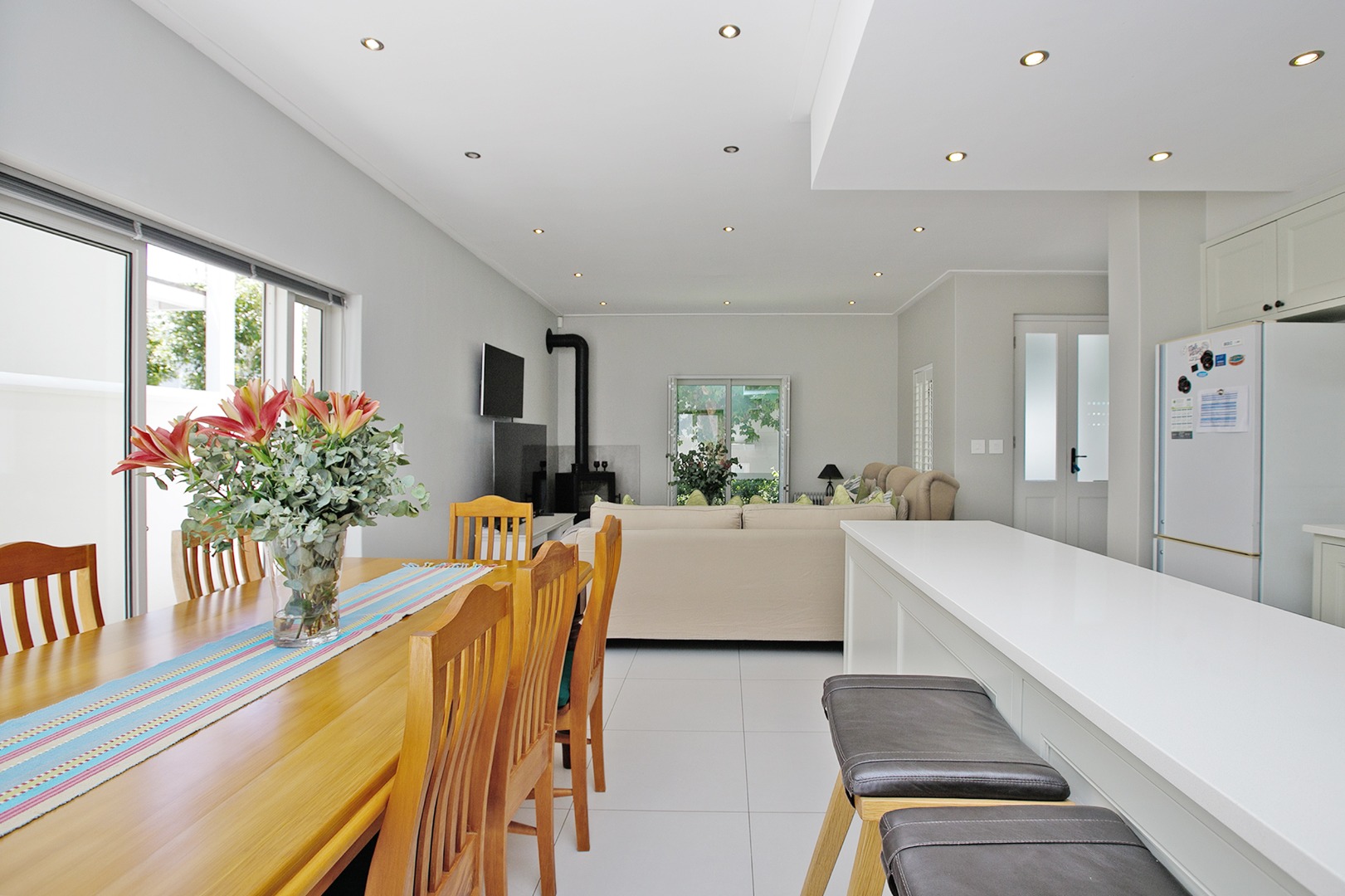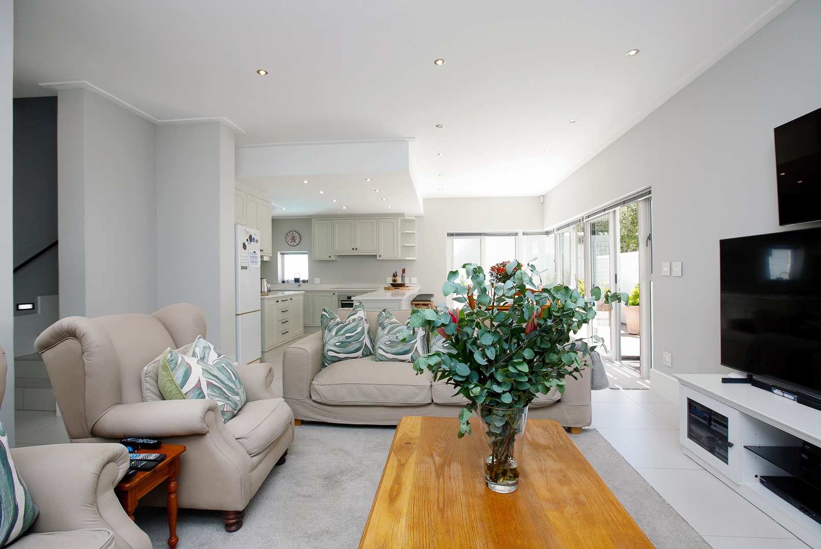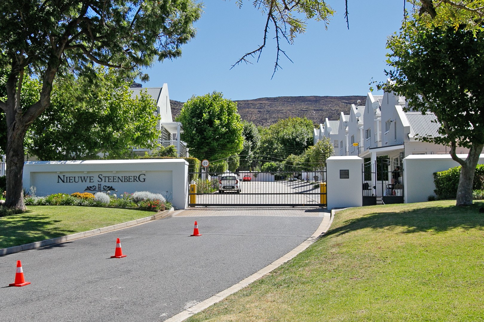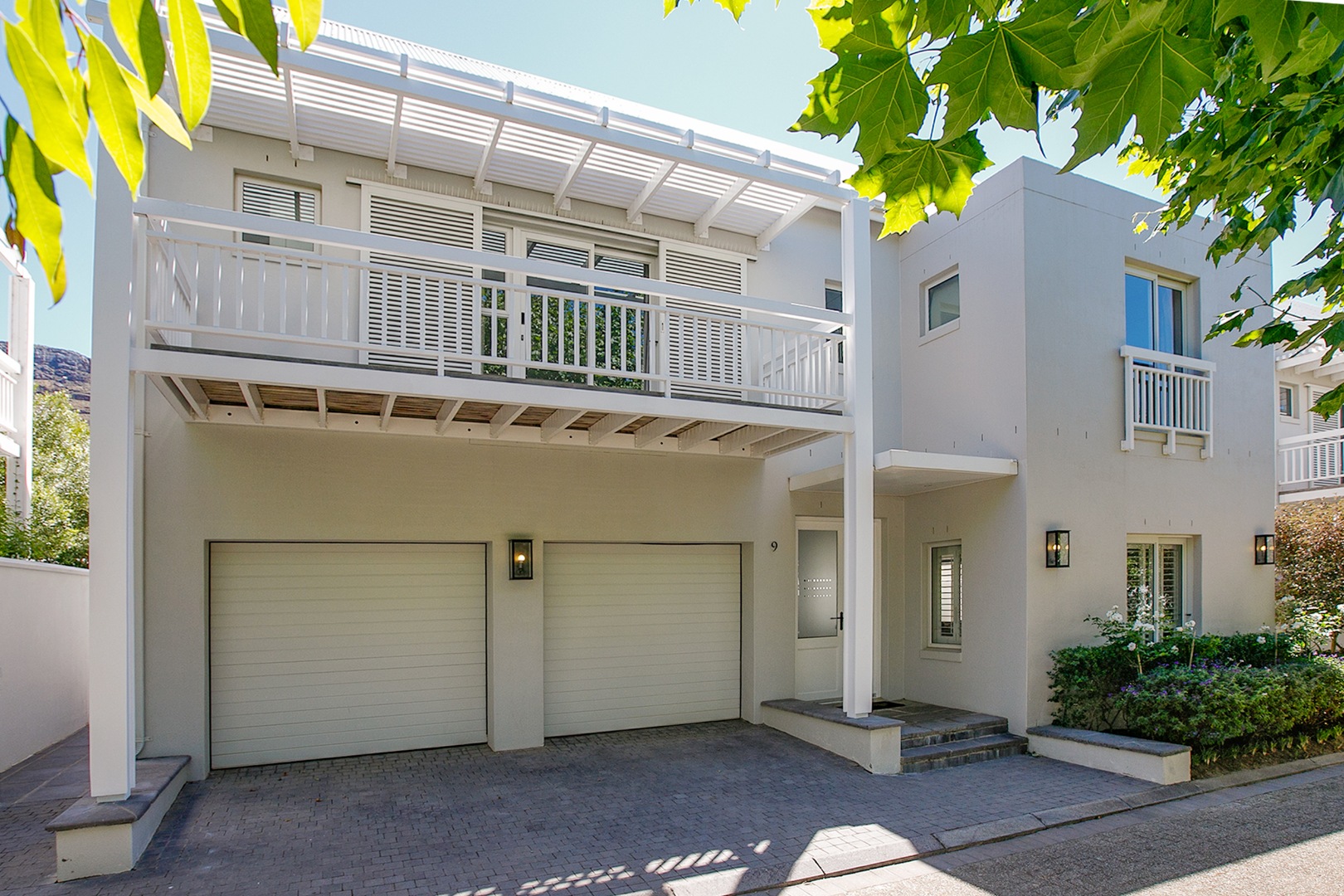 This beautifully designed residence presents the perfect opportunity for sophisticated living within a highly sought-after security estate in Tokai, adjacent to Steenberg Golf Estate. The property's modern, multi-story exterior, characterised by clean lines and light-toned finishes, is complemented by attractive landscaping, creating an inviting kerb appeal.