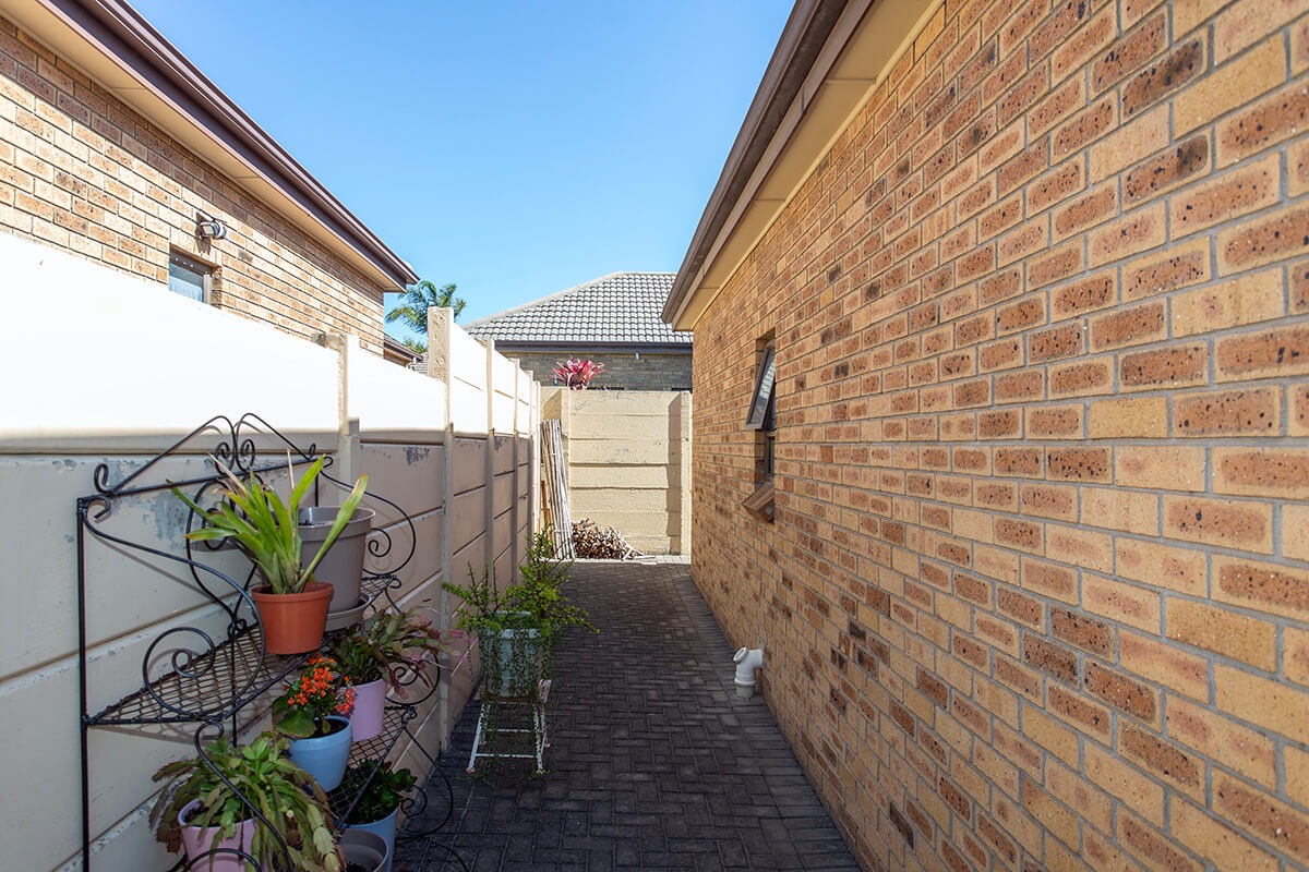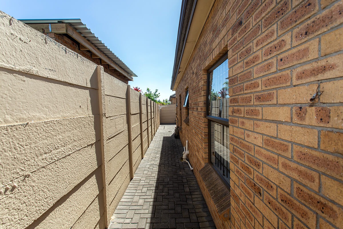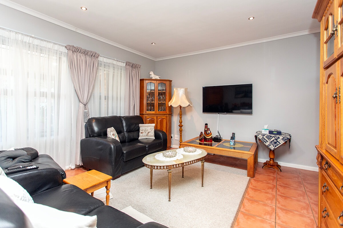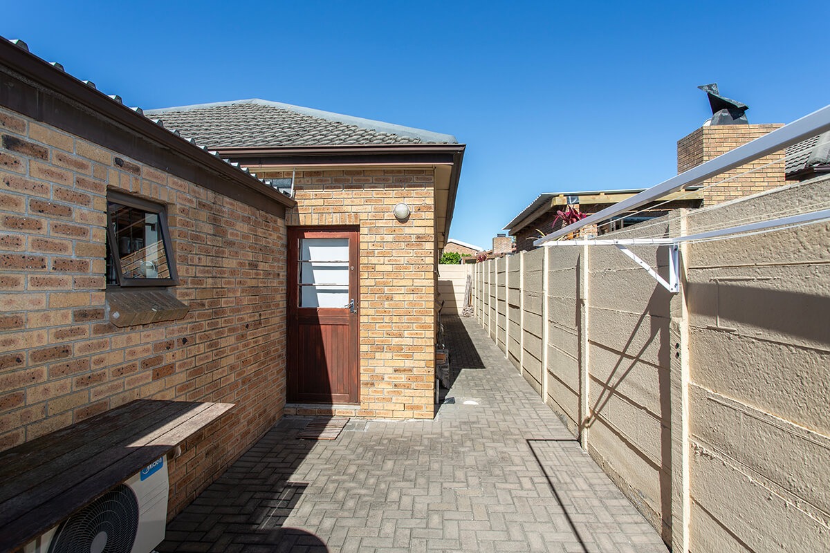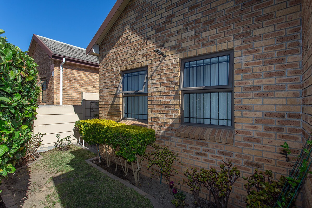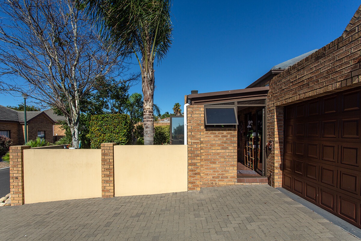 This charming 3-bedroom, 2-bathroom residence is nestled within the secure "Wuthering Heights" complex in Sonstraal Heights. The property boasts excellent kerb appeal with its durable brick exterior, paved double driveway, and a well-maintained facade, complemented by established landscaping and a security gate from the enclosed braai room into the house.