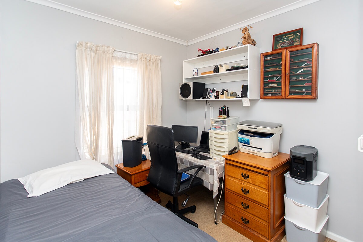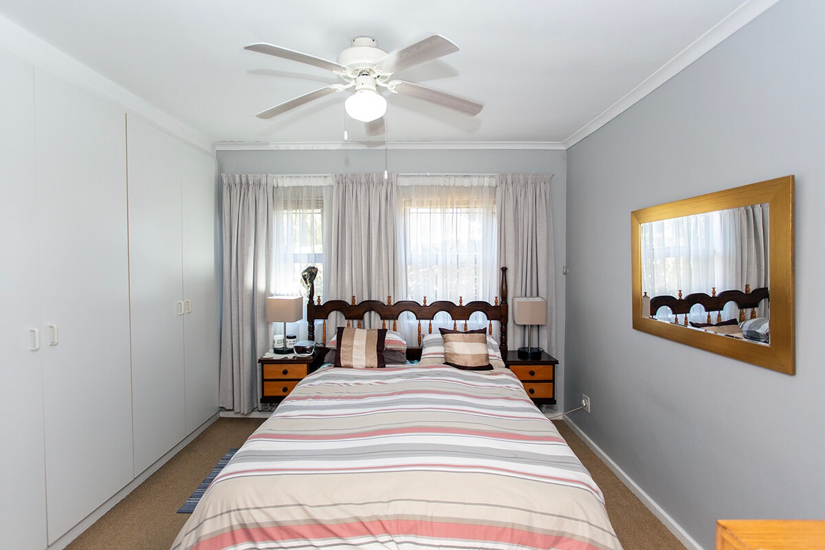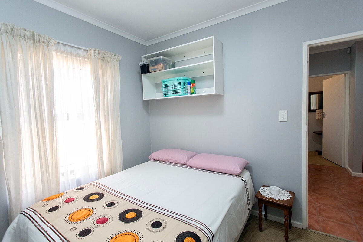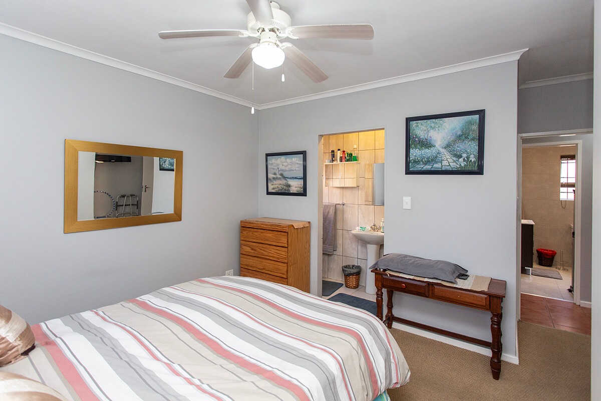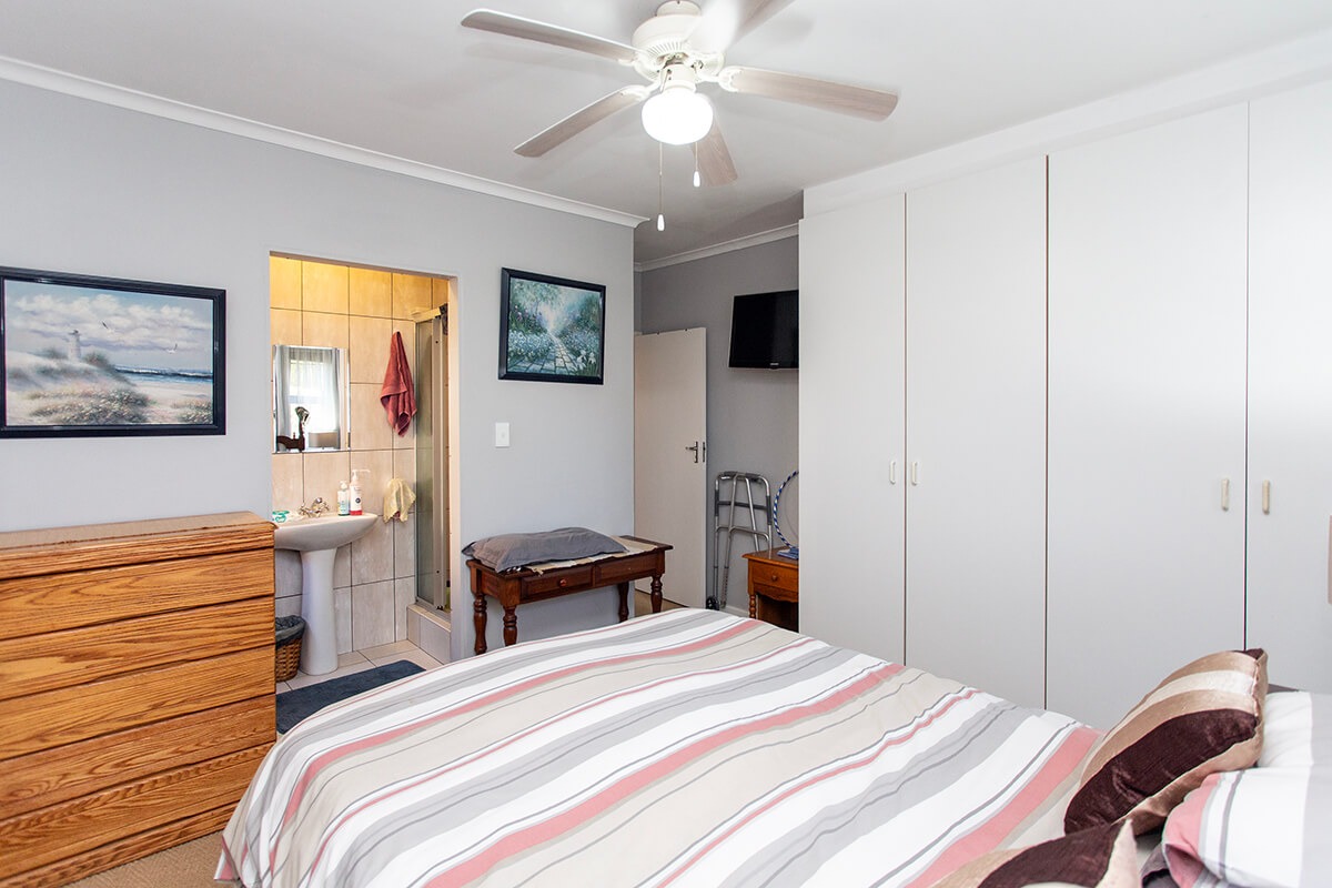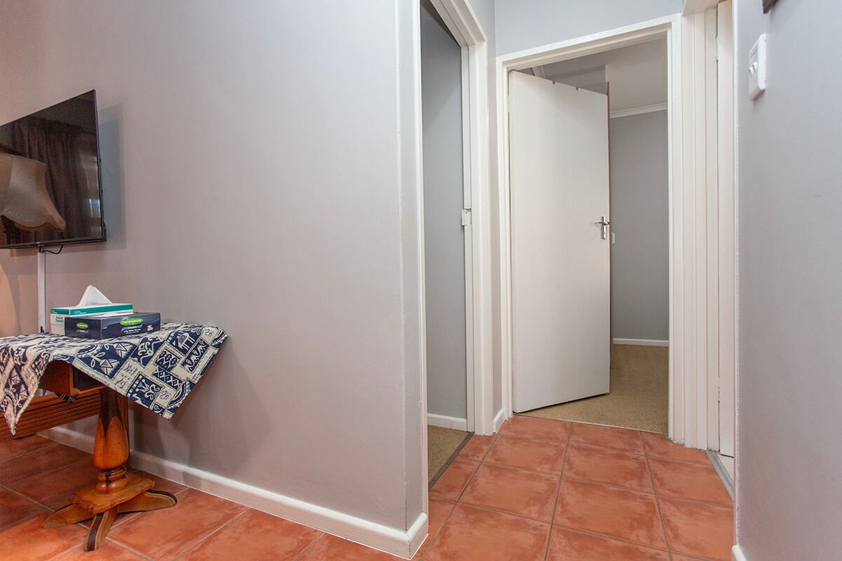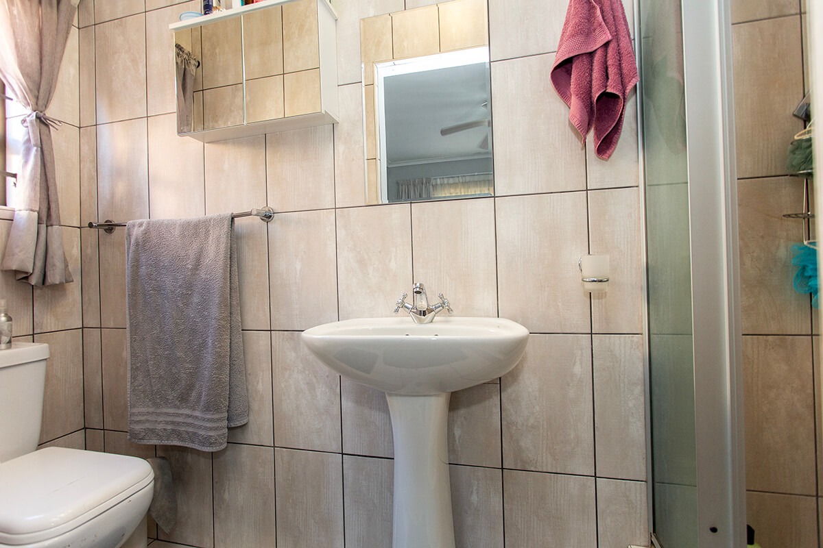 This charming 3-bedroom, 2-bathroom residence is nestled within the secure "Wuthering Heights" complex in Sonstraal Heights. The property boasts excellent kerb appeal with its durable brick exterior, paved double driveway, and a well-maintained facade, complemented by established landscaping and a security gate from the enclosed braai room into the house.
